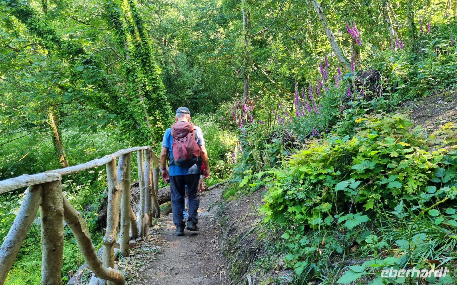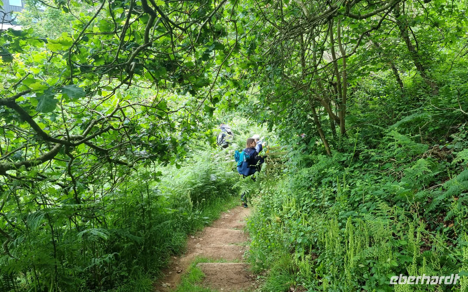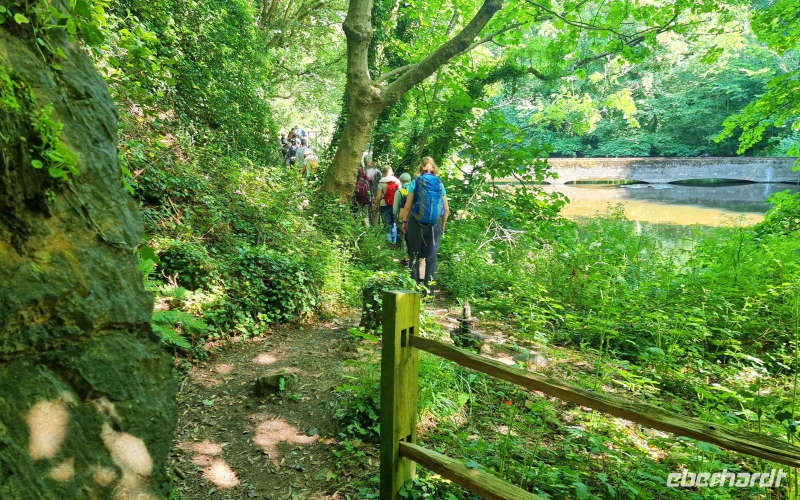Von der Südküste Jerseys führen insgesamt 5 Täler ins Inselinnere. Eines davon erkundeten wir bei unserer zweiten Wanderung: das Tal der Wassermühlen (Waterworks Valley). Wir starten unsere Wanderung am Coronation Park, einer gepflegten Parkanlage an der St. Aubin's Bay, die vom Drogerie-Unternehmer Jesse Boot und seiner Frau gestiftet wurde. Sie ließ auch die berühmte Glaskirche von Jersey (St. Matthew’s Church) mit Glaskunst des Franzosen Rene Lalique ausstatten, welche einmalig auf der Welt ist. Da die Glaskirche am Montag Vormittag geschlossen ist, schauten wir uns diese nach unserer Wanderung an.
