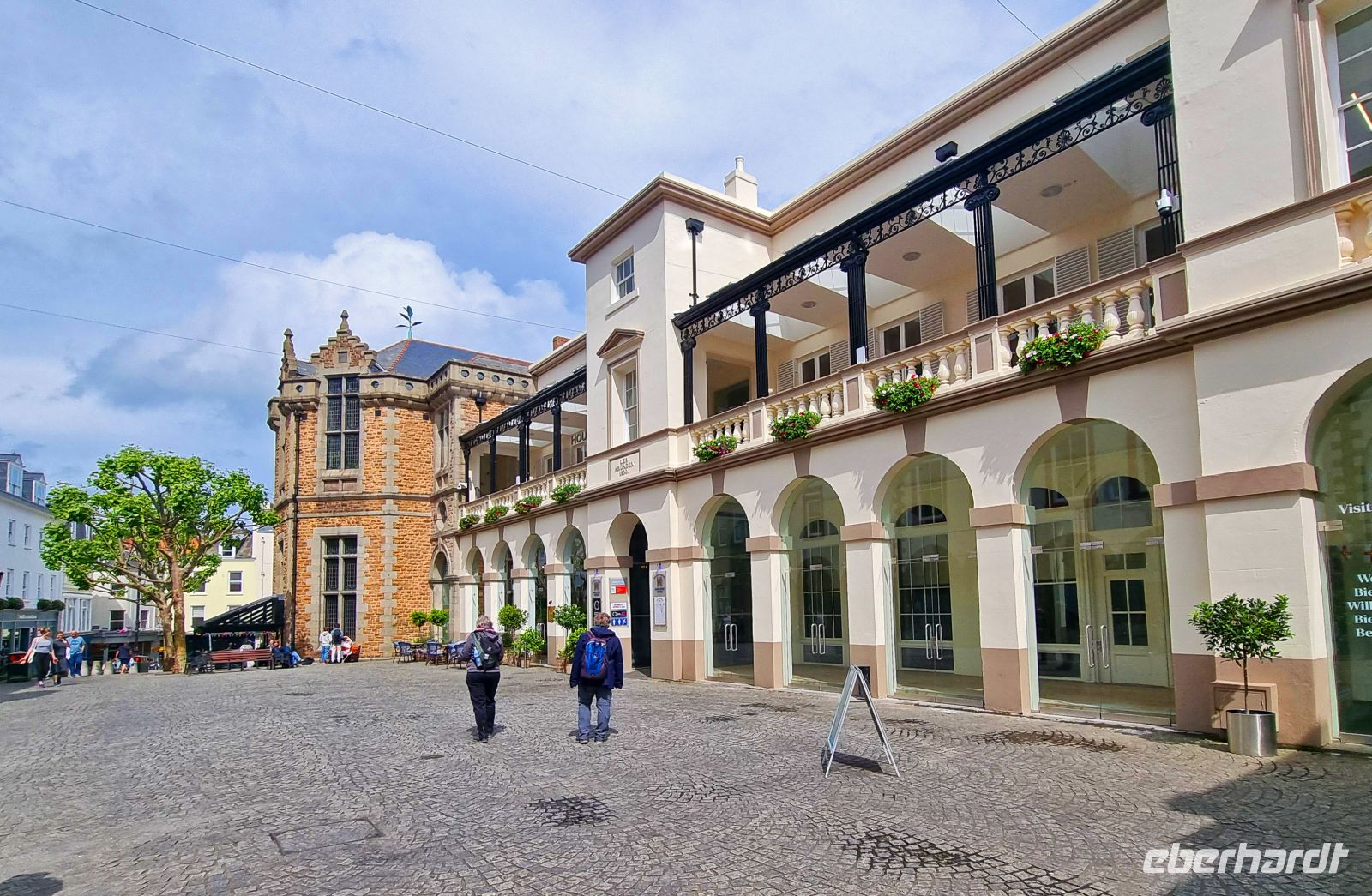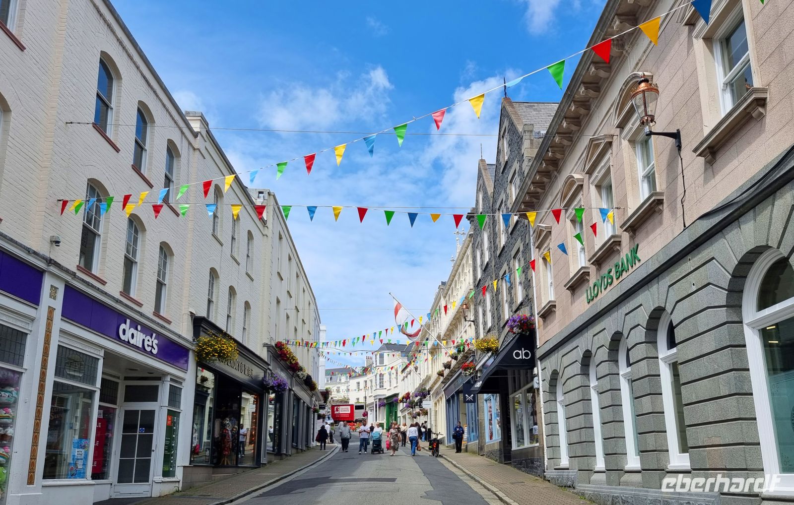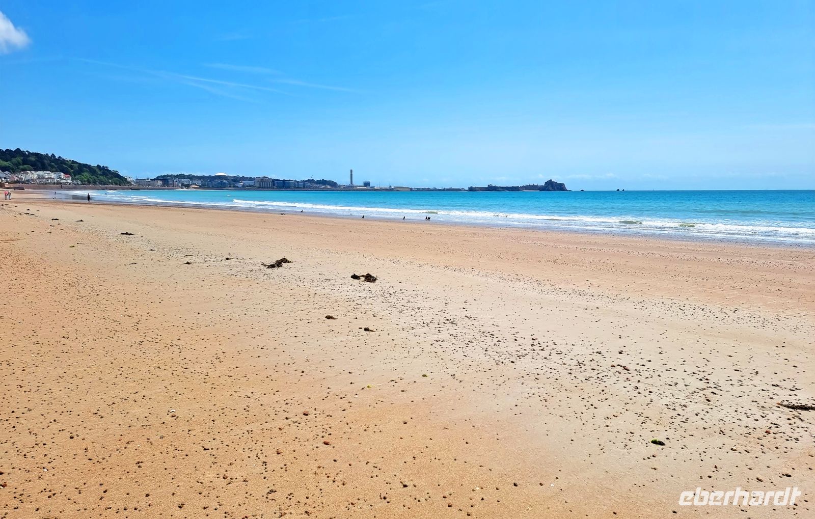 Zum Abendessen ließen wir uns mit einer umfangreichen Auswahl an Vorspeisen, warmen Gerichten und Desserts vom Buffet im Hotelrestaurant verwöhnen. Wer wollte konnte am Abend noch einen Stadtspaziergang durch St. Helier mit mir unternehmen. Vorbei am Meeresschwimmbecken und durch die hübsche Roseville Street ging es in die Haupteinkaufsstraßen der Inselhauptstadt und bis zum Royal Square. Geldautomaten zum Bargeld abheben und mehrere kleine Supermärkte für den Getränkeeinkauf lagen dabei ebenfalls auf dem Weg. So waren wir versorgt, um in unsere Wanderwoche zu starten.