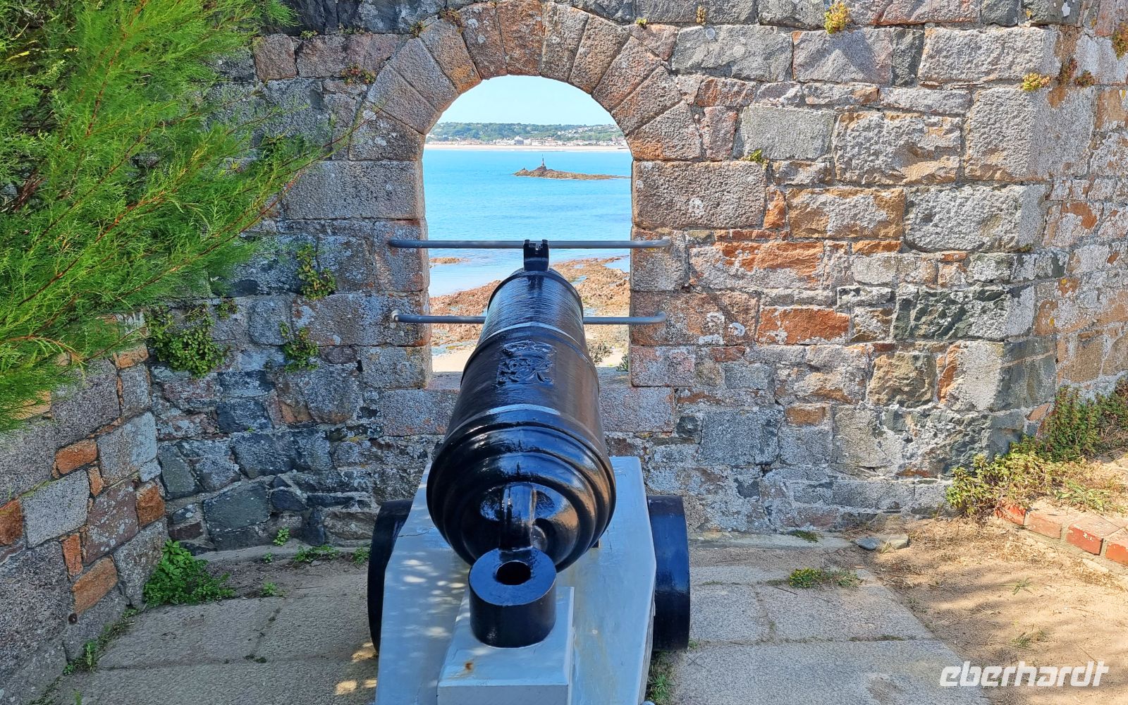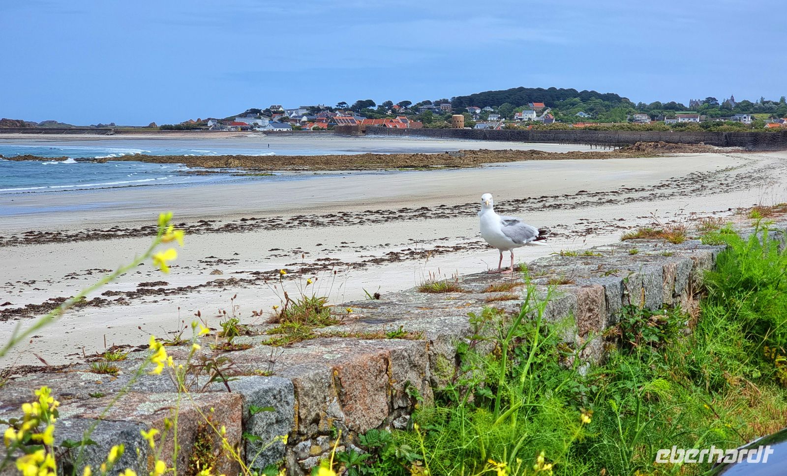 Unsere Rundfahrt führte uns dann an die Westküste von Guernsey, an der die schönsten Strände der Insel liegen. Einen Fotostopp machten wir an der Vazon Bay, dem besten Surferstrand von Guernsey, im Hintergrund lag das alte Fort Hommet. Auch auf Guernsey wurden in der deutschen Besatzungszeit viele Bunker- und Geschützanlagen gebaut, eigentlich noch mehr als auf Jersey, den Guernsey liegt strategisch günstig noch näher am Ärmelkanal.