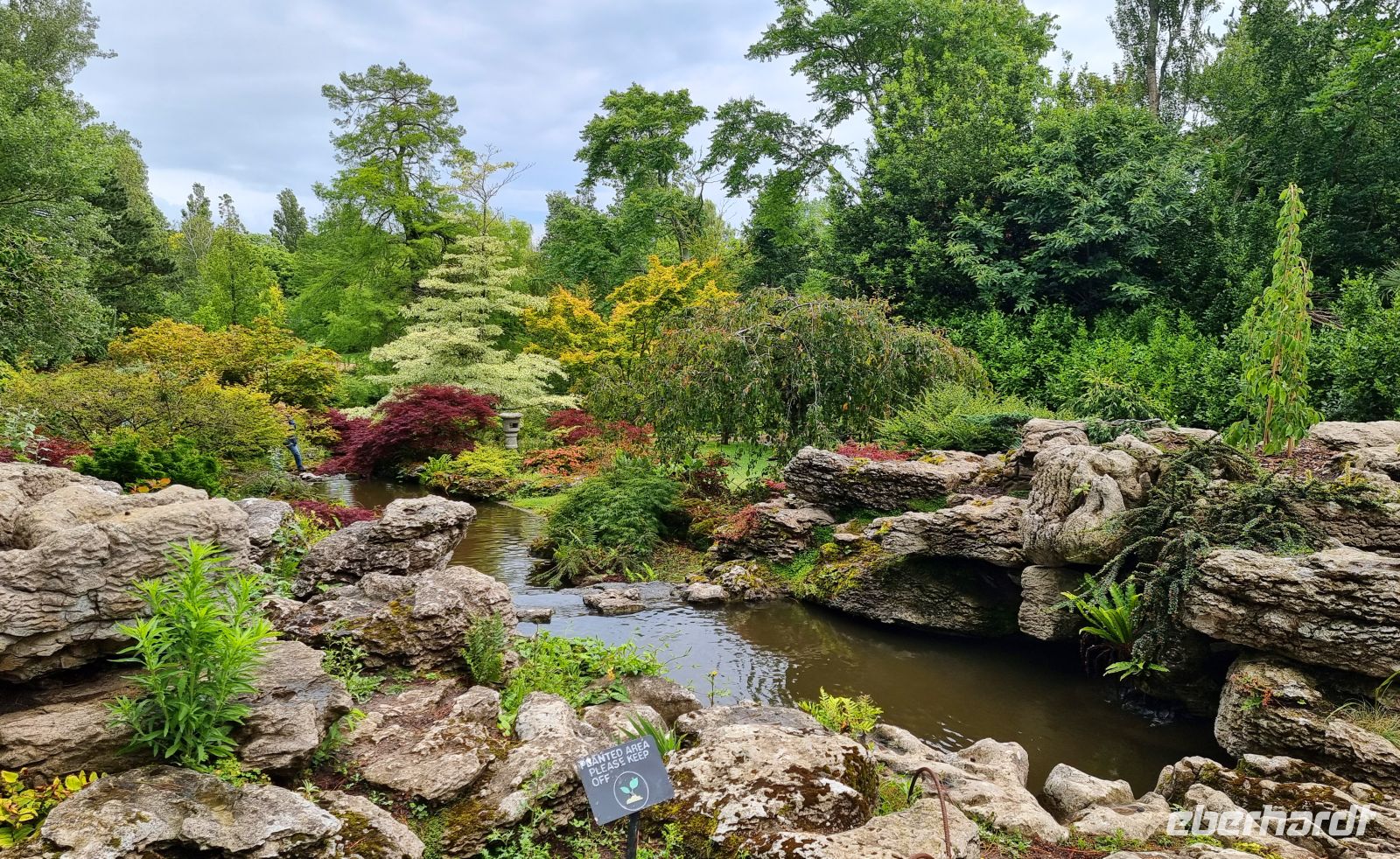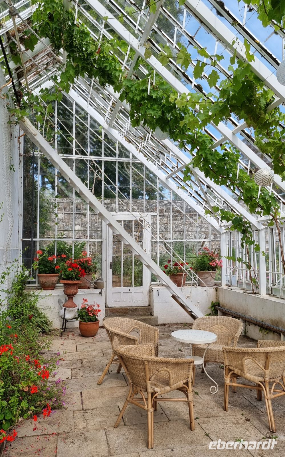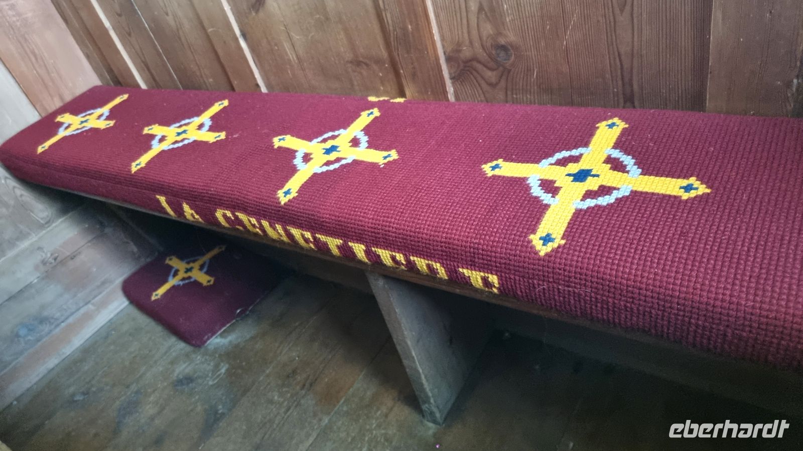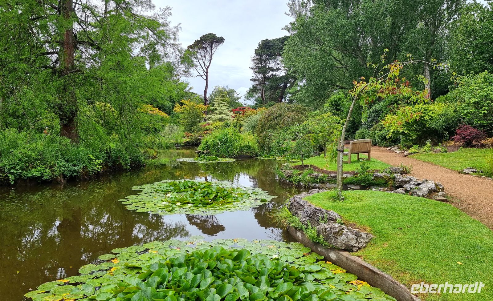 Dann stand der Besuch der wunderschönen Gärten des Seigneurs von Sark auf dem Programm. Wir wanderten entlang der schattigen Allee vorbei am Gemeindehaus, an der Arztpraxis und der Schule zur Seigneurie. Der Lehnsherr – heute der Seigneur Christopher Beaumont – wohnt hier mit seiner Familie in einem historischen Herrenhaus. Seine weitläufigen Gartenanlagen rund um das Haus hat er für die Öffentlichkeit zugänglich gemacht, ein Eintrittsgeld muss man aber schon bezahlen. Wir hatten Freizeit, um durch die Gärten oder zum kleinen Teich hinunter zu schlendern und Fotos von den herrlichen Blüten zu machen. Auch ein Café, einen kleinen Souvenirladen und Toiletten gibt es hier. Nach dem Gartenbummel ging es zu Fuß zurück zum Dorf und wir schauten uns auf dem Weg noch die kleine St. Peter Church an. Eine Besonderheit sind hier die gestickten Sitzkissen für jede der 40 Lehnsfamilien der Insel und die Wandteppiche, die die Geschichte der Insel zeigen.