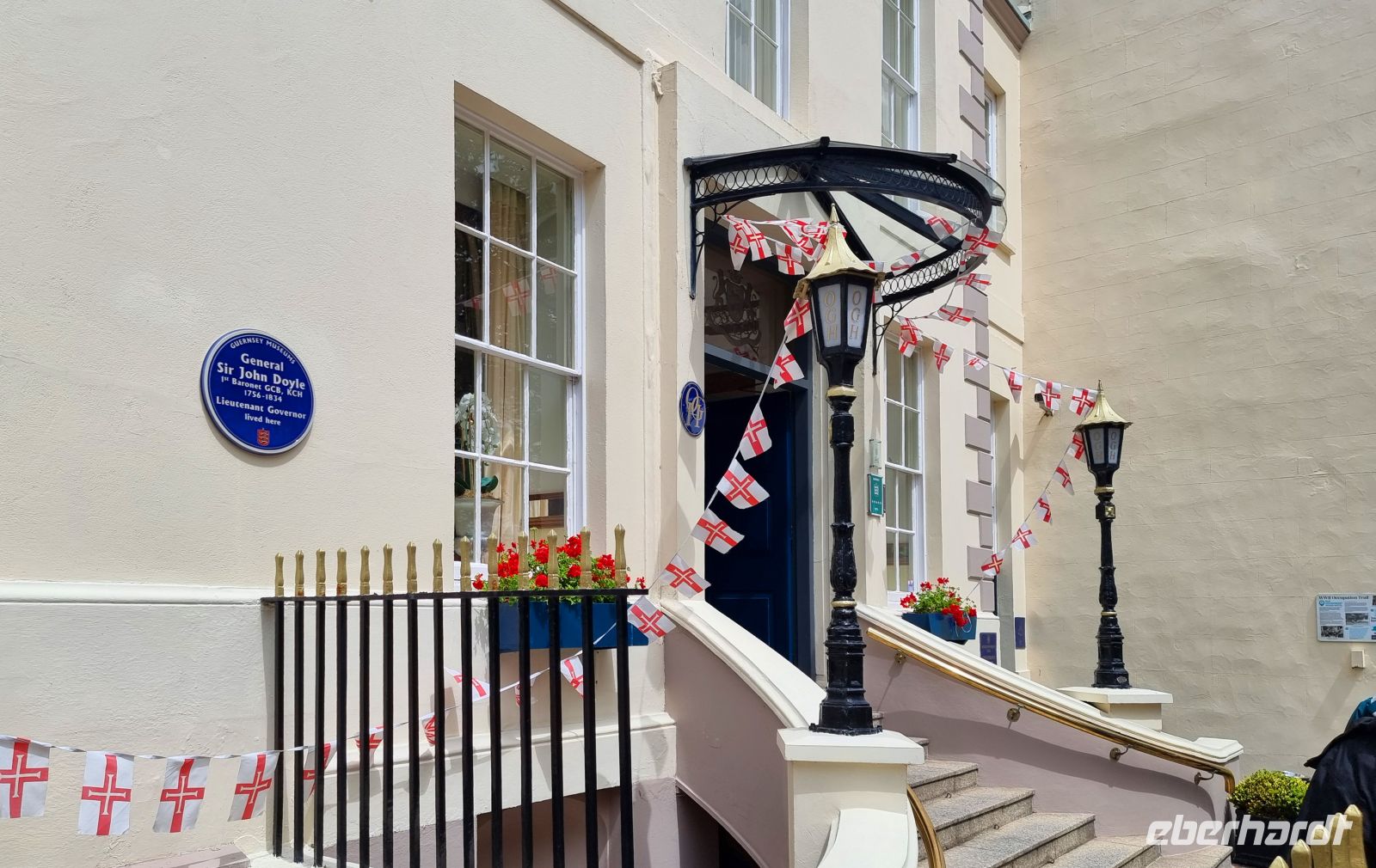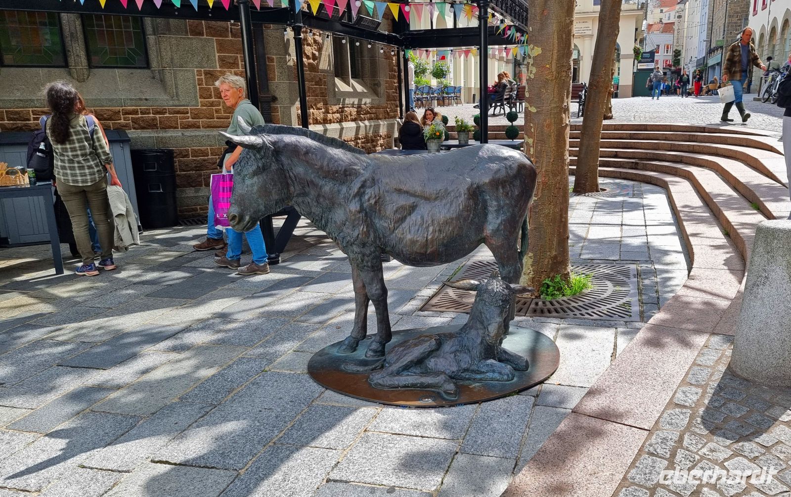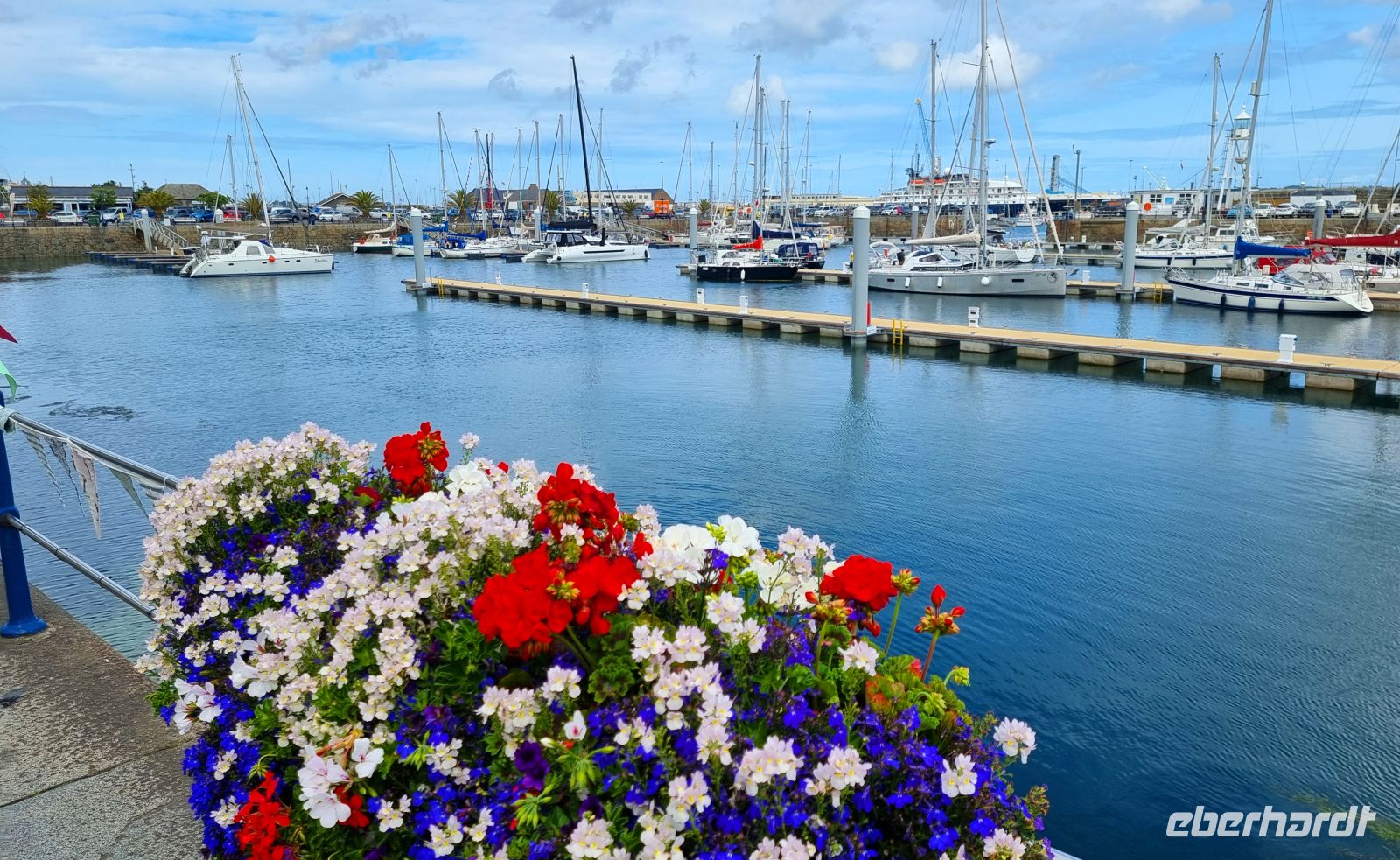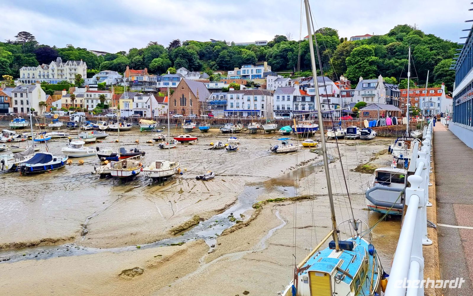 Schließlich brachte uns Michael mit dem Bus wieder zurück in die Inselhauptstadt St. Peter Port und wir verabschiedeten uns von ihm. Nun ging es zu Fuß weiter mit Gaby und einem Spaziergang durch Candie Garden. Diese herrliche Parkanlage mit Denkmälern von Queen Victoria und Victor Hugo wurden von der Familie Priaulx der Öffentlichkeit zugänglich gemacht. Blumenbeete, Palmen, ein Teich und exotische Pflanzen machen den Garten zu einem schönen Kleinod oberhalb der Innenstadt. Dann liefen wir hinunter ins Stadtzentrum von St. Peter Port und wer wollte, konnte ein wenig auf eigene Faust bummeln. Ein Großteil schloss sich Gaby an und wir legten erstmal eine Mittagspause in einem Restaurant in der Stadt ein. Danach führte uns Gaby noch an der Hafenpromenade entlang und zu einem weiteren Aussichtspunkt auf dem Tower Hill, wo wir einen weiten Blick über den Hafen hatten. Auch die Stadtkirche sahen wir uns an, bevor es zu Fuß zurück zum Hafen ging. Um 17 Uhr startete unsere Fähre von St. Peter Port zurück nach Jersey. Die Überfahrt war sehr ruhig und entspannt. Den letzten Abend ließen wir beim Buffet im Hotel und einem Absacker in der Hotelbar ausklingen.