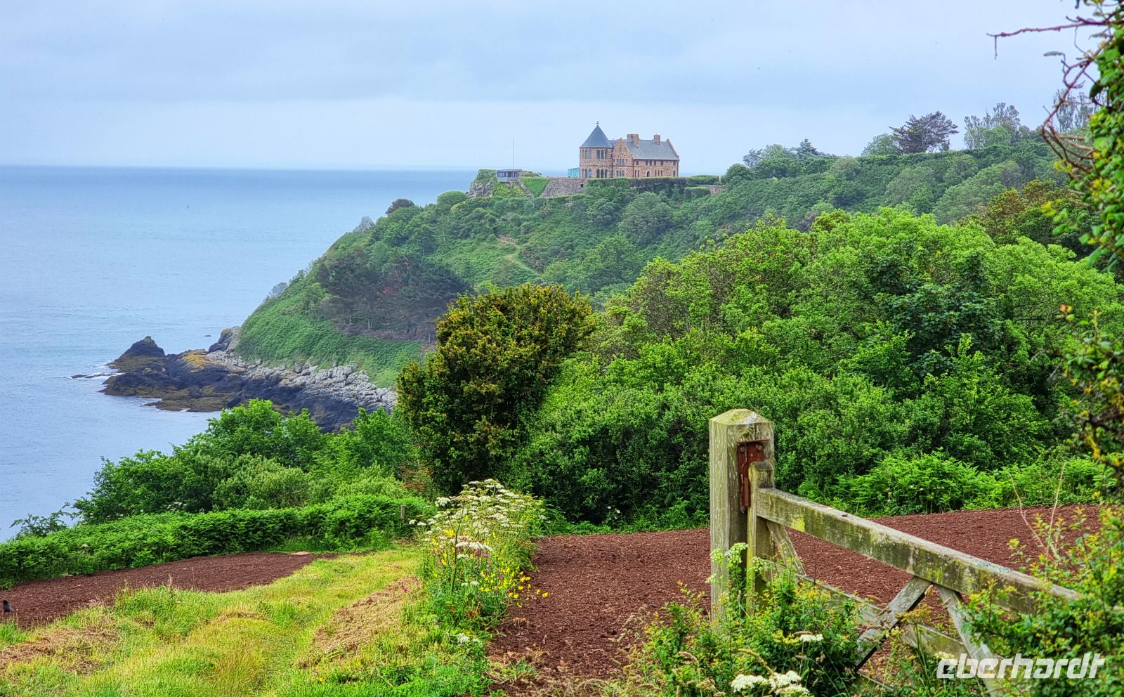 Wie gewohnt lag nach der Pause an der Bouley Bay nun wieder ein Anstieg über viele Stufen hinauf zum Küstenpfad vor uns. Wir ließen uns aber Zeit und alle schafften den Aufstieg ganz gemütlich. Unser Ziel war die Rozel Bay und das kleine Örtchen Rozel, welches wir nach etwa 2 Stunden schließlich erreichten. Hier erwartete uns erfolgreiche Wanderer im historischen Chateau la Chaire noch eine Überraschung, die an dieser Stelle nicht verraten wird. Mit einem Fotostopp am Mont Orgueil Castle in Gorey an der Ostküste ging es mit unserem Bus schließlich zurück zum Hotel. Eine warme Dusche tat nun besonders gut, wir hatten die schwierigste Wanderung geschafft!