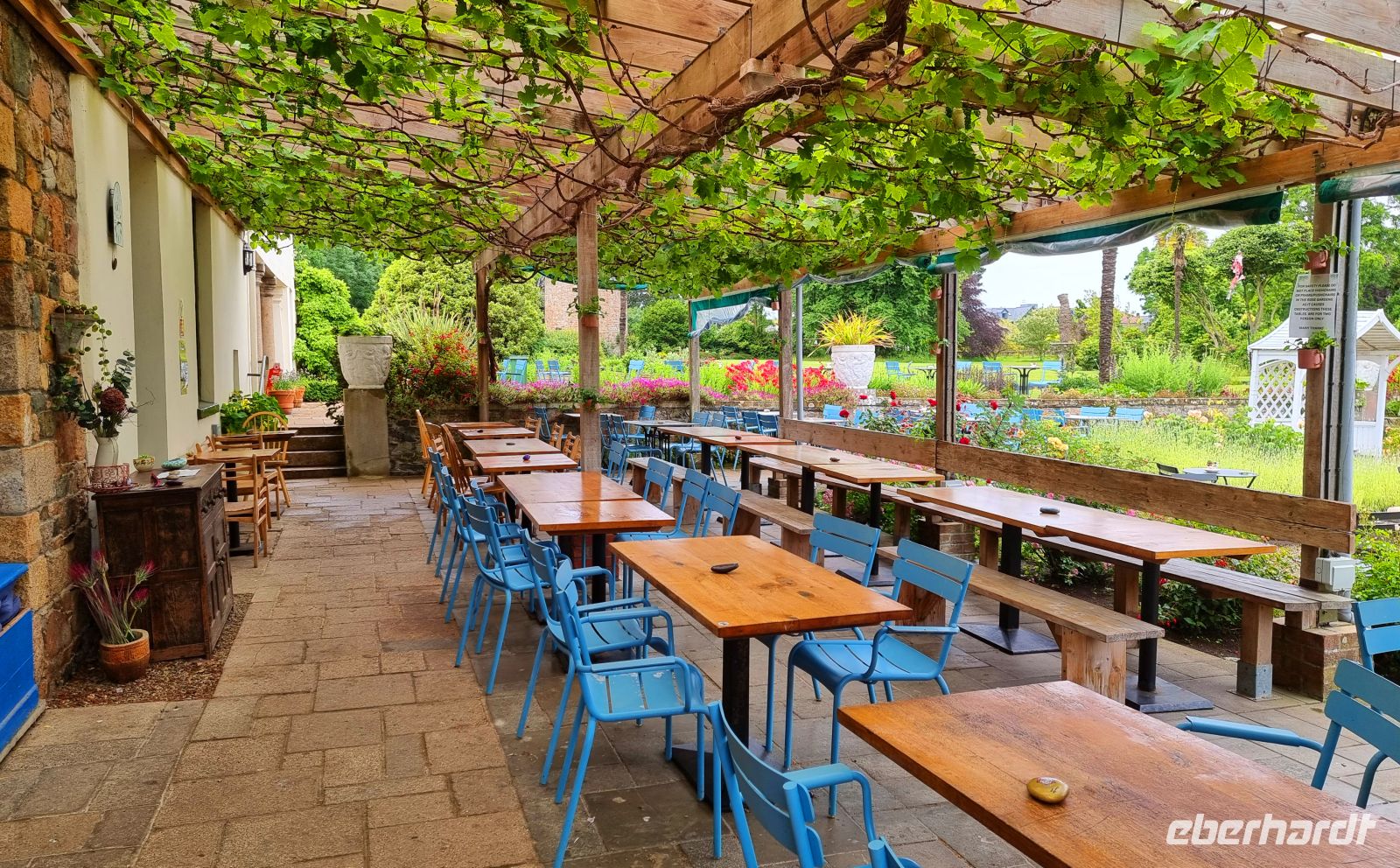Alle Gäste, die nach Düsseldorf zurückflogen, wurden schon früh am Morgen am Hotel abgeholt und zum Flughafen von Jersey gebracht, hier startete der Rückflug bereits am Samstag Morgen. Die Gäste, die über München zurückflogen hatten noch bis zum Nachmittag Zeit auf Jersey. Bis um 11 Uhr konnten wir unsere Sachen noch im Zimmer lassen, dann konnten die Koffer an der Rezeption untergestellt werden. So konnten wir noch einmal ganz gemütlich frühstücken und verabredeten uns zu einem letzten kleinen Ausflug zum Botanischen Garten Samares Manor. Zu Fuß ging es über den Strand der St. Clement's Bay in etwa 30 Minuten zum Anwesen Samares Manor. Hier hatten wir Freizeit, um die herrlichen Gartenanlagen mit dem Herrenhaus, den Ställen und dem Taubenhaus zu erkunden. Ob Rosengarten, Kräutergarten, Obstplantage oder japanischer Garten mit Ententeich – hier kamen Gartenfans noch einmal auf ihre Kosten. Dann ging es zu Fuß zurück zum Hotel, wo uns Eddie ein letztes Mal mit dem Bus abholte und uns zum Flughafen brachte. Der Check In für den Flug lief problemlos und unser Rückflug nach München startete nahezu pünktlich. In München verabschiedeten wir uns und flogen mit unseren Anschlussflügen zurück zu unseren gebuchten Ausgangsflughäfen.