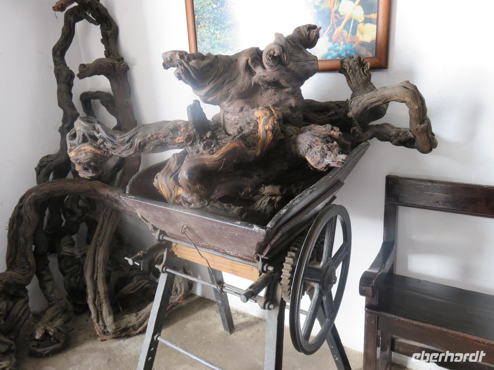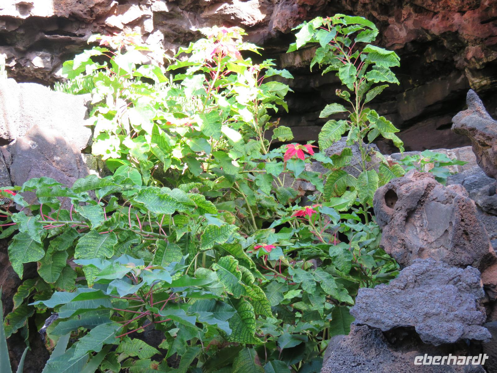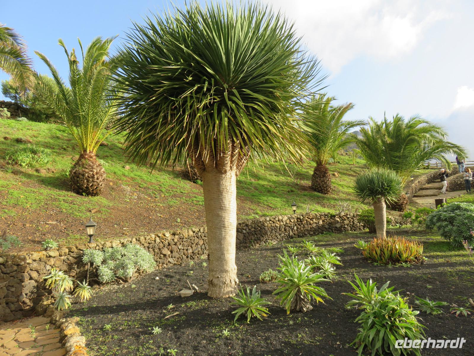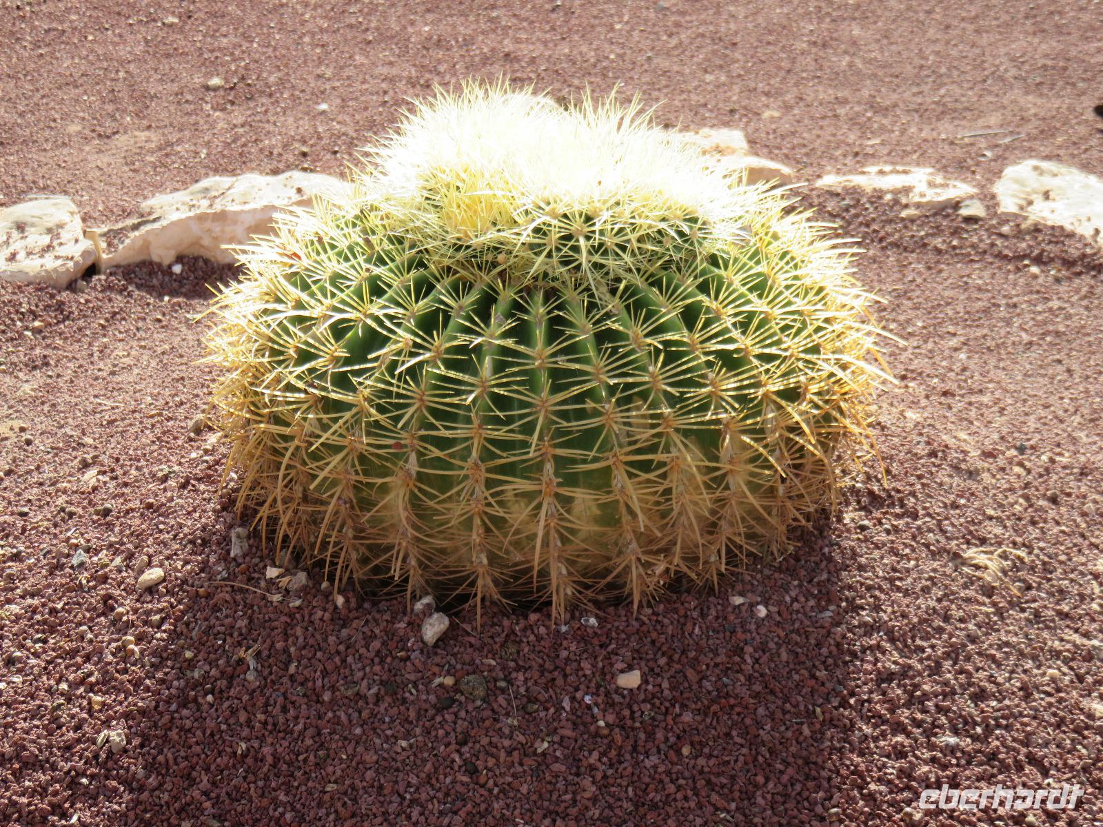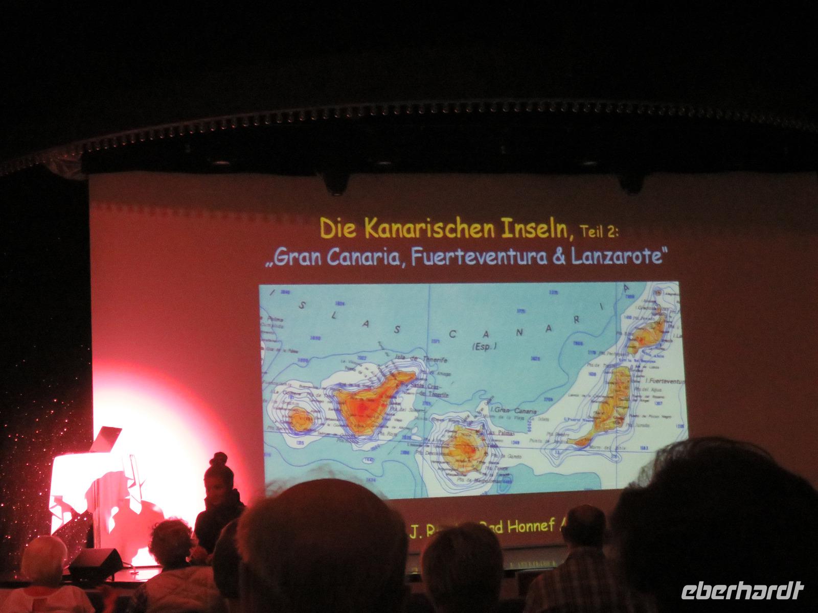 zeigte uns das typische der Insel: schwarzer, brauner, beiger und roter Vulkanboden, zerklüftete Krater, grüne Palmen, weiße Häuser und die einzigartigen Kunstwerke des Künstlers César Manrique. Zuerst fuhren wir in den Timanfaya-Nationalpark. Im Besucherzentrum bestaunten wir die Demonstrationen der Erdaktivitäten: in 20 Zentimetern Tiefe befindet sich bereits heiße Vulkanerde, in einem Erdloch wurden trockene Zweige zum Brennen gebracht und schließlich wurde mittels Wasser eine Dampffontäne, ein kleiner Geysire, erzeugt. Am Erdwärme-Grill konnten Kartoffeln gegart werden. Ganz langsam, fast zaghaft legten wir unsere Hände an der Seite zum Fühlen hin: Es war richtig heiß und nicht nur lau warm. Nach etwas Freizeit fuhren wir mit dem Bus durch das beeindruckende Lavafeld, vorbei an weiteren Vulkanen, an unterschiedlichen Formationen erkalteter Lava ... ein Spiel der Farben und Formen. Dabei lauschten wir einem Vortrag. Darin eingebettet der Bericht des Ortspfarrers vom letzten Ausbruch der Vulkane vor 300 Jahren. Es scheint als sei es eine leblose Fläche. In der Nacht soll sich viel Kleingetier diese bizarre Landschaft erobern. Das können wir nicht überprüfen. Aber die Moose und Flechten, hier und da die entstehende Krautschicht und kleine Sträucher sind zu sehen. Da es in den letzten beiden Wochen geregnet hat, tragen die sonst kahlen Vulkanflanken einen grünen Flaum. Selbst Eva betonte, dass die im Moment fast grüne Insel untypisch ist. Obwohl ich zum vierten Mal hier weilen durfte, war es auch für mich ein völlig neuer Anblick. Am Rand des Nationalparks beobachteten wir die Kamelreiter, die hoch zu Kamel diese Welt aus Asche und Stein erkundeten. Am Atlantik beobachteten wir, wie sich die Brandung an den schwarzen Felsen bricht, wie sich im Lavagestein Grotten gebildet haben und sich hier in Los Hervideros, am Hexenkessel, eine zerklüftete Küste präsentiert. Nach dem Mittagessen in Yaiza, einem schmucken Dorf mit weißen Häusern und vielen Gärten, fuhren wir schließlich in das Weinanbaugebiet von La Geria. Hier werden die Trauben im traditionellen Trockenanbau gezüchtet: eine sicher mühsame Art und Weise auf dem fruchtbaren vulkanischen Boden. Uns zeigt sich ein faszinierendes Landschaftsbild. Nach einem kleine Schluck des typischen Muskateller bringt uns unser Fahrer vorbei am Bauerndenkmal zum Mirador de la Haria. Wir genießen den Blick ins Tal der Tausend Palmen und bis zum Meer. Abschließender Höhepunkt ist die Besichtigung eines der Meisterwerke von César Manrique: Die Höhlen Jameos del Aqua mit dem unterirdischen See, in dem winzige weiße Albinokrebse leben, die sonst nur in Meerestiefen von 3.000 Metern vorkommen. Natürlich erfreuen wir uns auch an den Pflanzen am blauweißen Pool und am Konzertsaal. Leider müssen wir nun am späten Nachmittag langsam an die Rückfahrt zum Schiffe denken. Wir hatten alles bei bestem Wetter und sommerlichen Temperaturen betrachtet. Weitere Kunstwerke von César Manrique, immer mit Bedacht und voller Rücksicht auf die Natur gestaltet, wie das Mirador del Rio an einer fast 500 Meter hohen Steilküste, der Jardín de Cactus oder sein Wohnhaus warten bei einem erneuten Aufenthalt auf Lanzarote auf unseren Besuch.