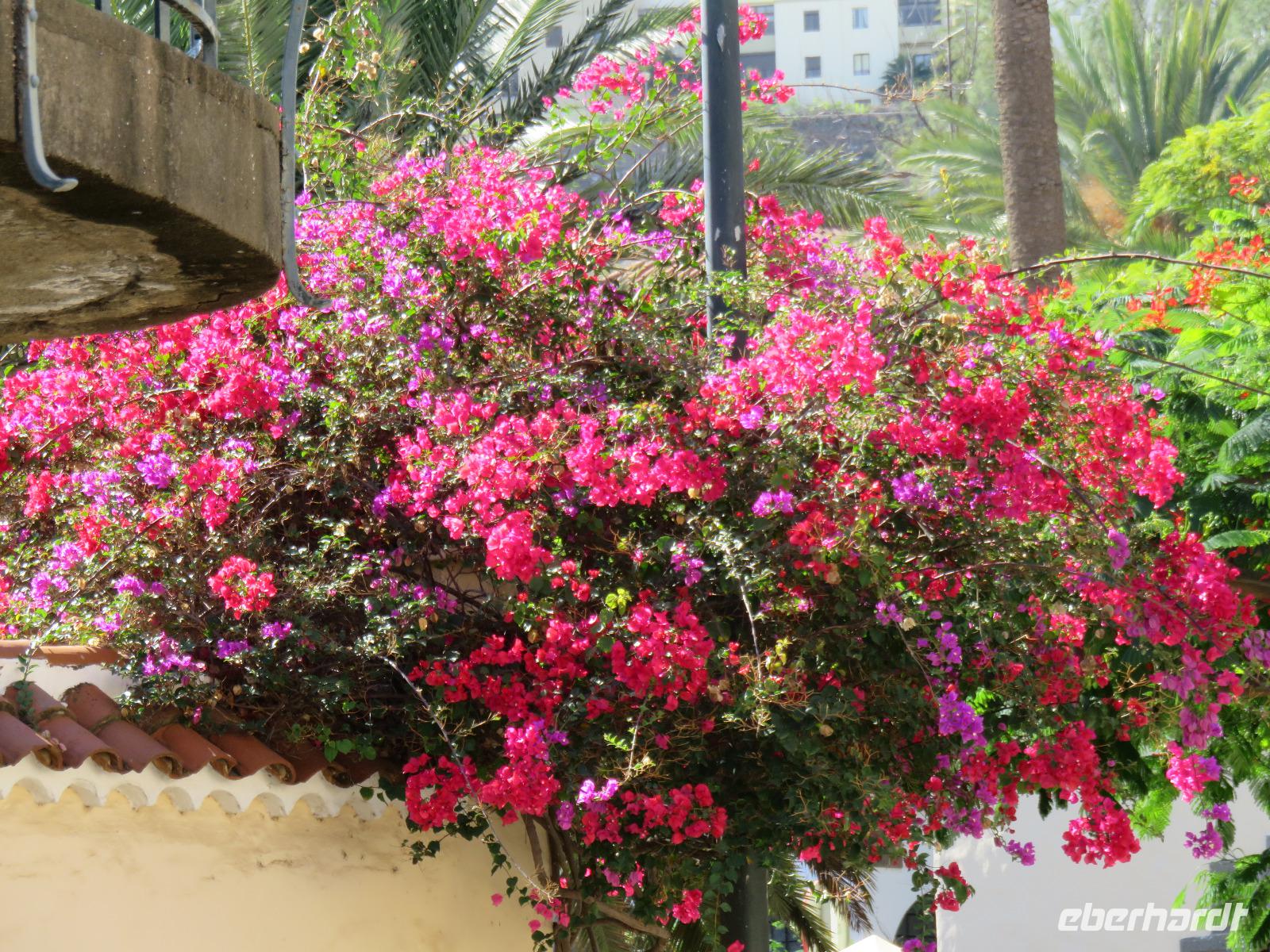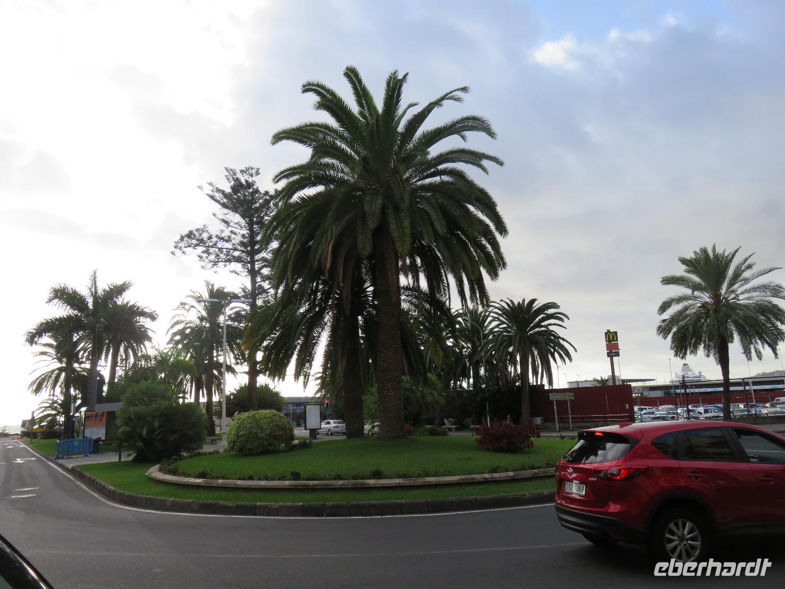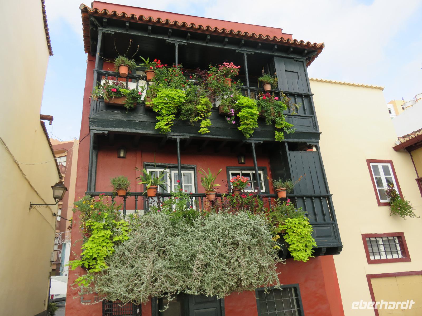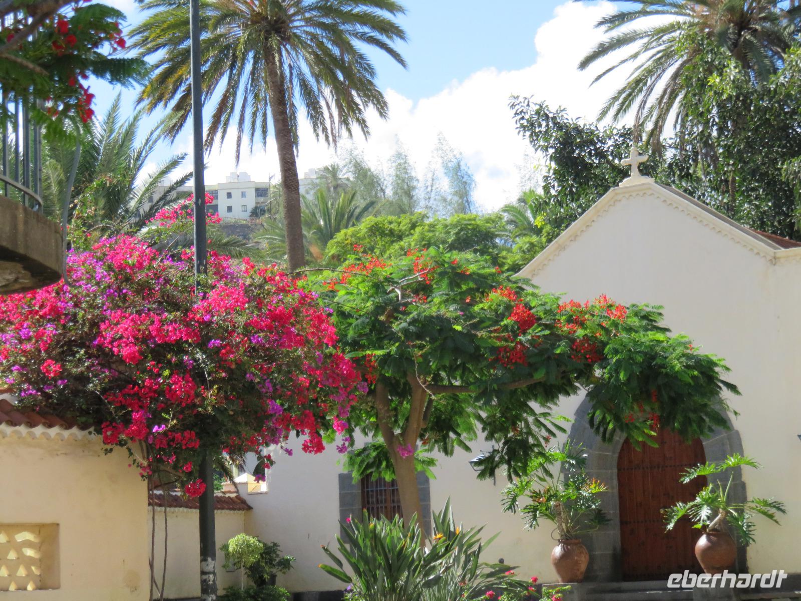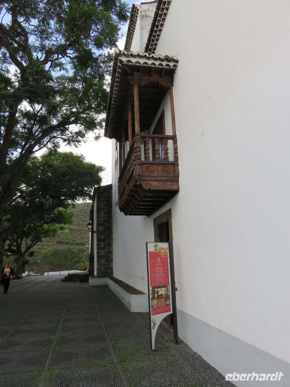 Pünktlich 7 Uhr ankerte die AIDAcara im Hafen von Santa Cruz de la Palma an. Wir trafen uns zu unserem fünften Eberhardt-Inklusiv-Ausflug. Mit Manfred Holst, unserem örtlichen Guide, und unserem Fahrer Sergio starteten wir zu unseren Besichtigungen. Nach kurzer Busfahrt spazierten wir in der schmucken Altstadt, bestaunten die Fassaden der Herrschaftshäuser mit den typischen Holzbalkonen, im kleinen Museum den Innenhof ... Im Rathaus am Plaza de Espana erfreuten wir uns an den Wandgemälden zur Geschichte der Insel und an den kunstvoll geschnitzten hölzernen Decken, den Mudejár - eine Mischung aus maurischen Mustern und christlichen Symbolen. Auch konnten wir einen Blick in den Sitzungssaal werfen. Noch ein kurzer Spaziergang durch die Markthalle mit ihren bunten Ständen und entlang der Avenue de la Maritima. Unsere Blicke galten immer wieder den äußerst geschmackvoll arrangierten Blumenbalkons.