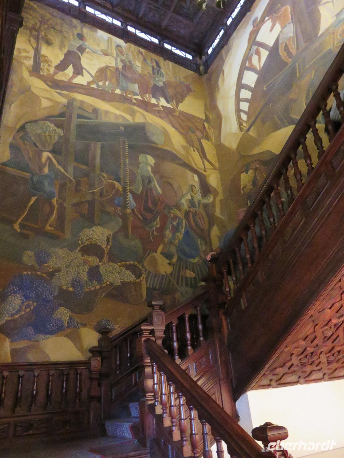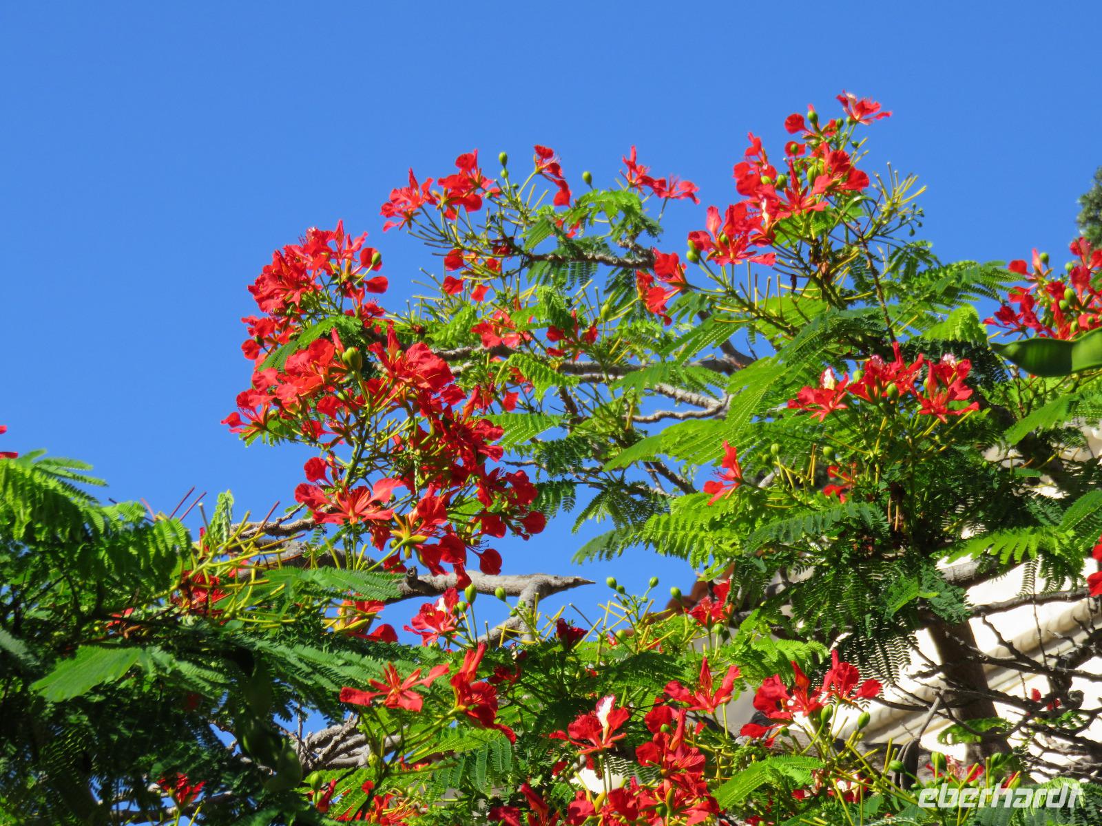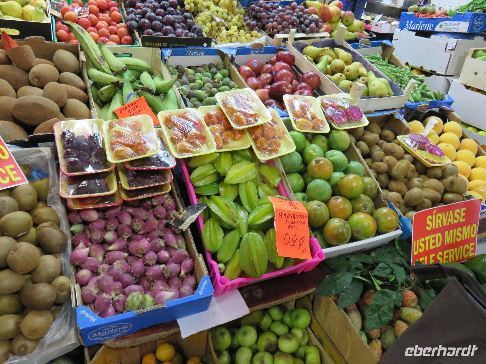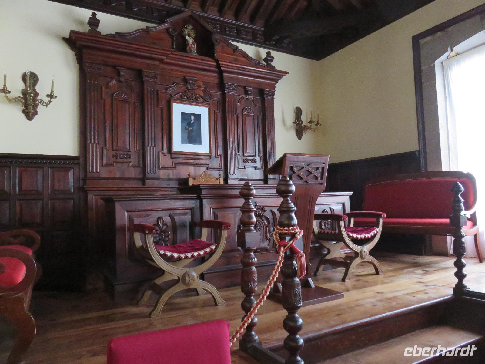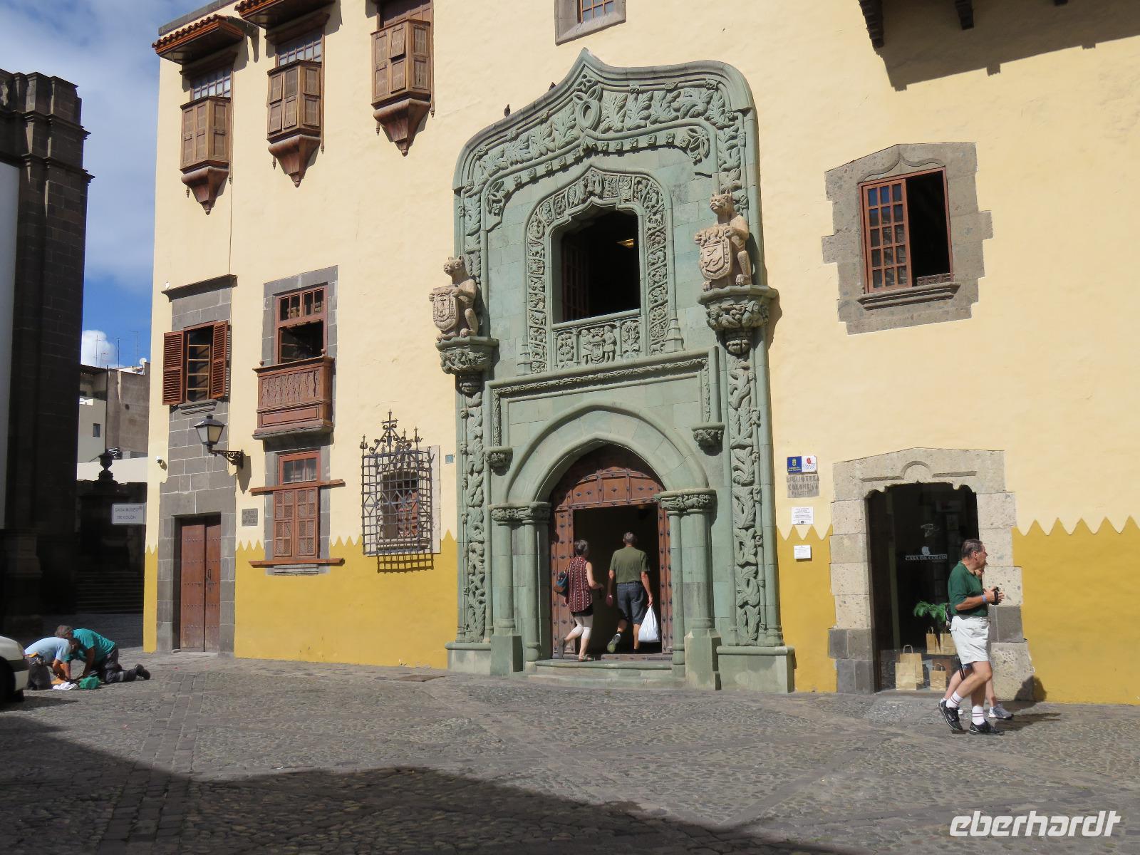 Pünktlich 7 Uhr ankerte die AIDAcara im Hafen von Santa Cruz de la Palma an. Wir trafen uns zu unserem fünften Eberhardt-Inklusiv-Ausflug. Mit Manfred Holst, unserem örtlichen Guide, und unserem Fahrer Sergio starteten wir zu unseren Besichtigungen. Nach kurzer Busfahrt spazierten wir in der schmucken Altstadt, bestaunten die Fassaden der Herrschaftshäuser mit den typischen Holzbalkonen, im kleinen Museum den Innenhof ... Im Rathaus am Plaza de Espana erfreuten wir uns an den Wandgemälden zur Geschichte der Insel und an den kunstvoll geschnitzten hölzernen Decken, den Mudejár - eine Mischung aus maurischen Mustern und christlichen Symbolen. Auch konnten wir einen Blick in den Sitzungssaal werfen. Noch ein kurzer Spaziergang durch die Markthalle mit ihren bunten Ständen und entlang der Avenue de la Maritima. Unsere Blicke galten immer wieder den äußerst geschmackvoll arrangierten Blumenbalkons.