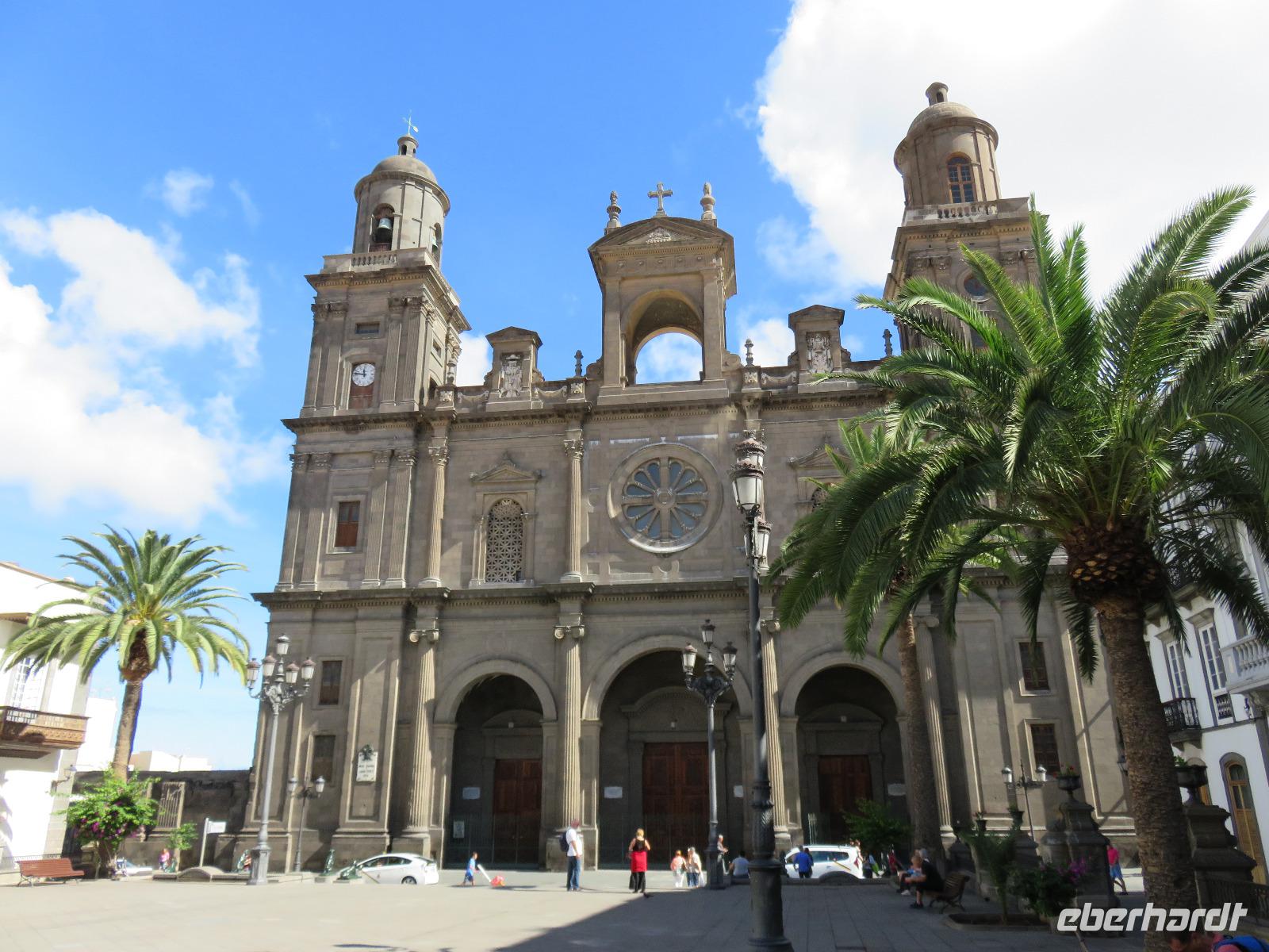 Ein Blick aus dem Fenster: Sonnenschein und blauer Himmel satt. Was will das Herz mehr! Das Frühstücksbuffet äußerst vielfältig und lecker. Ein gelungener Start in den neuen Tag. Wir hatten das Glück, uns heute die Umgebung und die Altstadt von Las Palmas anschauen zu können. Oft führt bei einer Kreuzfahrt der Weg vom Flugzeug direkt zum Schiff. Für uns nicht: Octavio, unser örtlicher Reiseleiter, erwartete uns bereits im Hotelfoyer. Schnell die Koffer im Bauch unseres Busses verstaut und los ging unsere Entdeckungsfahrt. Zuerst nahmen wir die steilen, engen Straßen hinauf zum gewaltigen Bandama-Krater in 569 Metern Höhe mit schönem Blick zum Flughafen, in die Ebene, hinüber zur Insel Teneriffa und hinab in den 200 Meter tiefen Krater. Dieser vermittelte uns sehr eindrucksvoll den vulkanischen Ursprung der Insel. Unsere Augen erfassten auch die AIDAcara, die gut verankert im Hafen festgemacht hatte. Schnell ein Blick vom Aussichtspunkt Boa Vista, bevor wir den Santa Catalina Park erreichten. Octavio erläuterte die Geschichte der Ureinwohner der Insel am Denkmal am Eingang des Parks. Unser Herz erfreute sich an der Pflanzen- und Blumenpracht. Vorbei am 5-Sterne-Hotel Santa Catalina bummelten wir zum Pueblo Canario. Mit dem Bus erreichten wir nach wenigen Minuten die Altstadt von Las Palma. Im Barrio de la Vegueta spazierten wir vorbei an prächtigen Fassaden zur Kathedrale Santa Ana und weiter zum Rathaus. In den Straßen und Gassen bestaunten wir die schmucken Häuser aus der Kolonialzeit mit ihren traditionellen Holzbalkonen. Vorbei am Haus des Kolumbus erreichten wir den kleinen Markt der Stadt. Hier zeigte uns Octavio verschiedene Obst- und Gemüsesorten, dazu Fisch und Gewürze. Ein Händler reichte uns eine Kostprobe der kleinen kanarischen Bananen. Nach einem stärkenden Mittagessen mit Köstlichkeiten der Insel hatten wir etwas Freizeit. Die Mehrzahl unter uns besuchte die Casa de Colon mit dem Museum zur Erinnerung an den großen Seefahrer Christopher Kolumbus, der von hier zu Entdeckungsreisen startete. Am Nachmittag erreichten wir den Hafen mit der AIDAcara. Schnell waren alle Formalitäten erledigt, die Kabinen standen bereit und wir gingen an Bord unseres schwimmenden Hotels für die nächsten 14 Nächte. Die Koffer kamen etwas später und so hatten wir Zeit, uns an Bord umzusehen. Es gibt immer wieder Neues zu entdecken. 17.00 Uhr trafen wir uns in der AIDA Bar. Wir übten wichtige Begriffe der Seemannsprache, die der Orientierung für uns Seefahrer auf Zeit dienen sollen: Bug (vorn), Heck (hinten), Backbord (links), Steuerbord (rechts) ... natürlich immer in Fahrtrichtung. Nach dem Abendessen in einem der Bordrestaurants und dem Einrichten in den schmucken Kabinen nahmen wir an der Seenotrettungsübung teil. Dann hieß es 22.00 Uhr endlich „Schiff ahoi" und „Leinen los!". Die AIDAcara nahm Kurs zur Insel La Gomera. Wir träumten bei ruhiger See unserer Kreuzfahrt entgegen.
