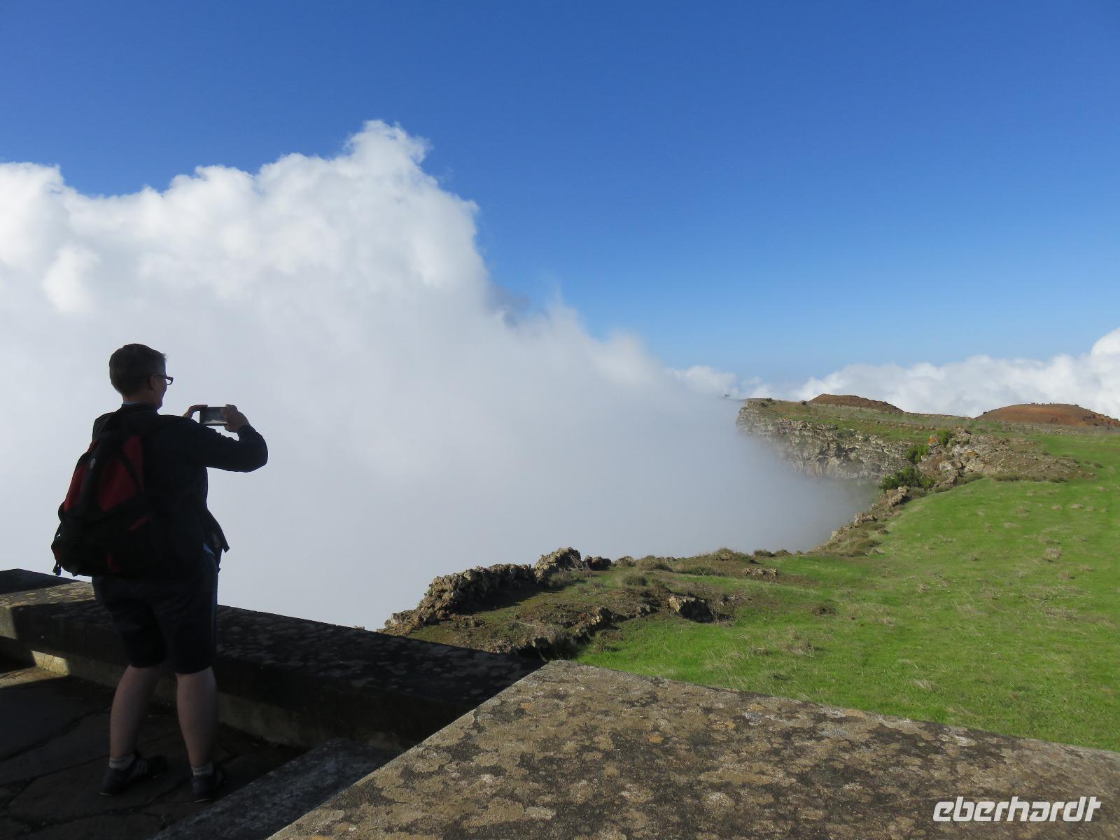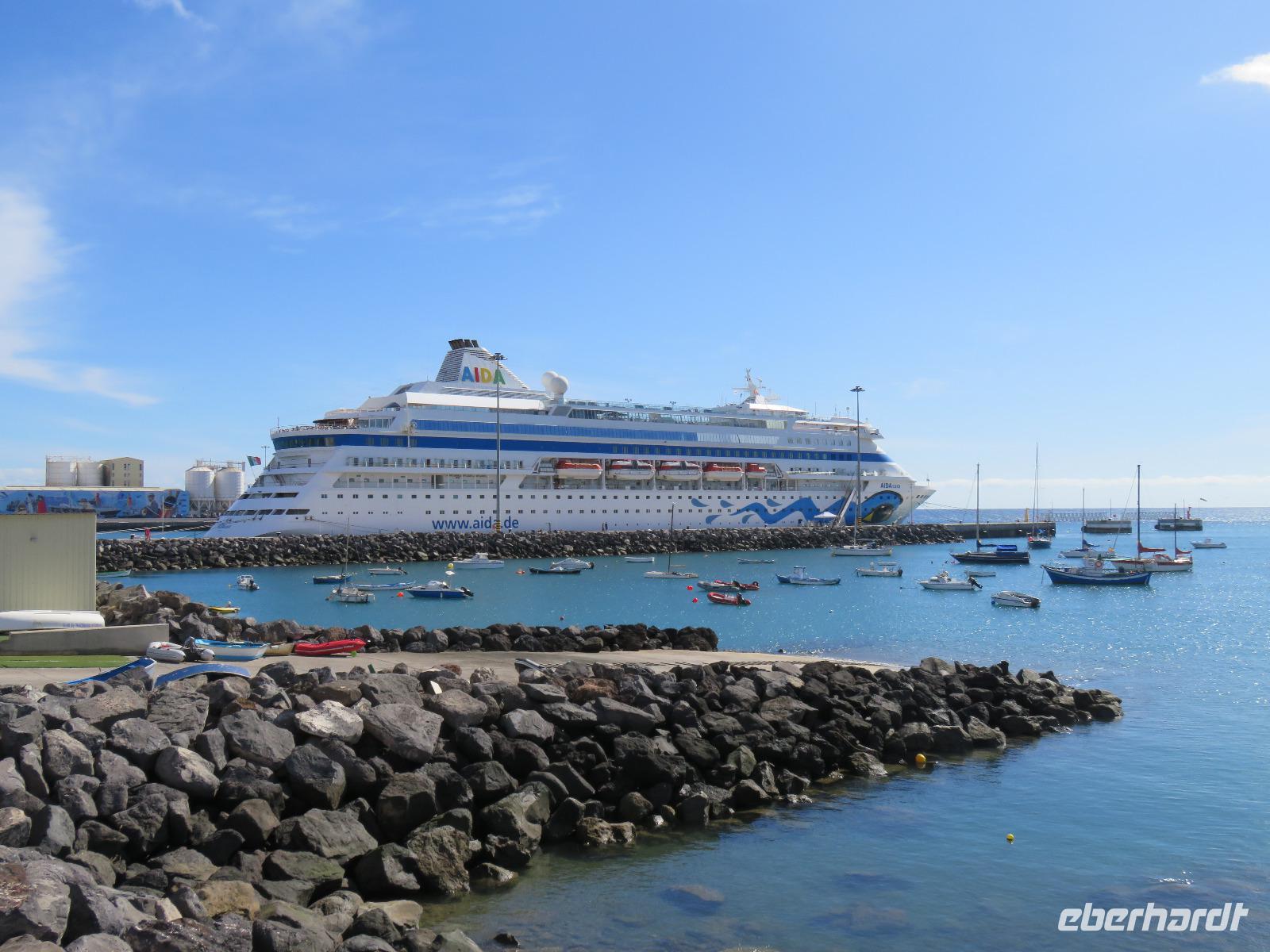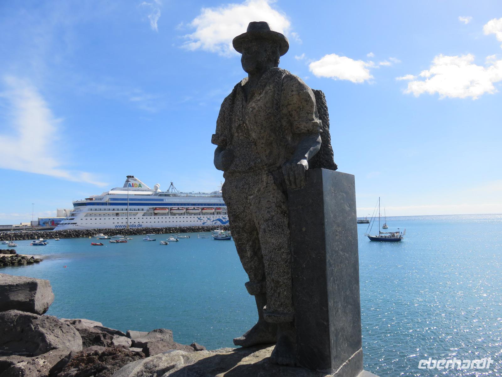 Heute erreichten wir mit der Insel El Hierro den westlichsten Punkt unserer Kreuzfahrt. Bis zur Entdeckung Amerikas durch Kolumbus galt sie als das westlichste Ende der Welt, weshalb dort im Jahr 150 der Astronom Claudius Ptolemäus den ersten Meridian Null festlegte. Deshalb trägt die Insel auch den Beinamen Meridianinsel. Überall war zu lesen, dass das Eiland ein Geheimtipp für Naturliebhaber sei. Der kleine Hafen schmuck mit neuer Pier, dahinter ragen kahle, dunkle, steile Vulkanberge auf. Der erste Blick trügt gewaltig. Auf unterschiedlichen AIDA-Ausflügen lernen wir Landschaften voller Gegensätze kennen: kleine verträumte Orte, fantastische Ausblicke an steilen Buchten, saftig-grüne Weiden im Hochland, Wälder mit Kiefern und Buchen, Vulkankrater ... und dann die Miradors, die Aussichtspunkte. Vom Mirador Isora überblickten wir die ganze Bucht von Las Playas, die eigentlich ein eingebrochener Vulkankrater ist. Davon zeugen die steilen, fast senkrecht abfallenden Felswände. Am Mirador Jinama eröffnete sich für alle Gäste der Vormittagstour der Panoramablick in das bis zu 1.200 Meter tiefe Golfo-Tal. Am Nachmittag war uns dies verwehrt. Die Passatwolken stauten sich ganz dicht. Wir standen über, neben und vor den Wolkenbergen, die immer in Bewegung waren - eine Faszination, dieses Spiel der Natur zu bestaunen. Die Szenerie war in strahlendes Sonnenlicht getaucht. Nach einer kurzen Busfahrt erreichten wir das berühmteste Aussichtsplateau, das Mirador de La Pena, gestaltet vom bekannten Künstler César Manrique. Wie immer ist alles wunderbar in die Natur eingepasst - ein Meisterwerk der Architektur und des Gartenbaus. Von hier blickten wir ca. 1.000 Meter tief in das Golfo-Tal. Vom Mirador de La Pernades blickten wir schließlich auf den kleinen Flughafen der Insel. Unser örtlicher Gästeführer Karsten berichtete über das Leben auf der Insel, die Flora und Fauna, sein Bio-Haus, über die Gelbschnabelstummtaucher, über das Welt-Biosphärenreservat ... 2014 wurde die gesamte Energieversorgung der Insel umgestellt: Das Wasserkraftwerk Gorona del Viento wird zum größten Teil mit Windenergie betrieben. An guten Windtagen kann sich bereits heute die gesamte Insel mit erneuerbarer Energie versorgen. Auch Solarenergie wird zunehmend genutzt. Einige Gäste nutzten auch die Möglichkeit zu einem Bad im Hafen. Direkt gegenüber der AIDAcara befindet sich ein Strand mit einer Badestelle. Das Wasser hatte eine wohlige Temperatur von 23,8 °C.