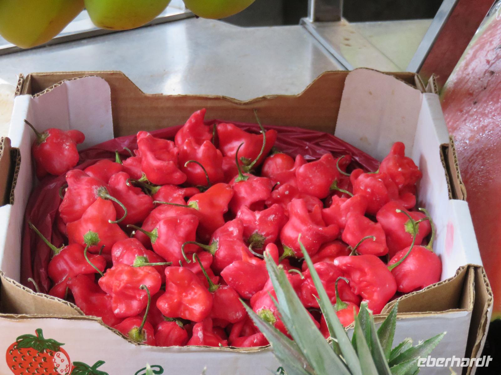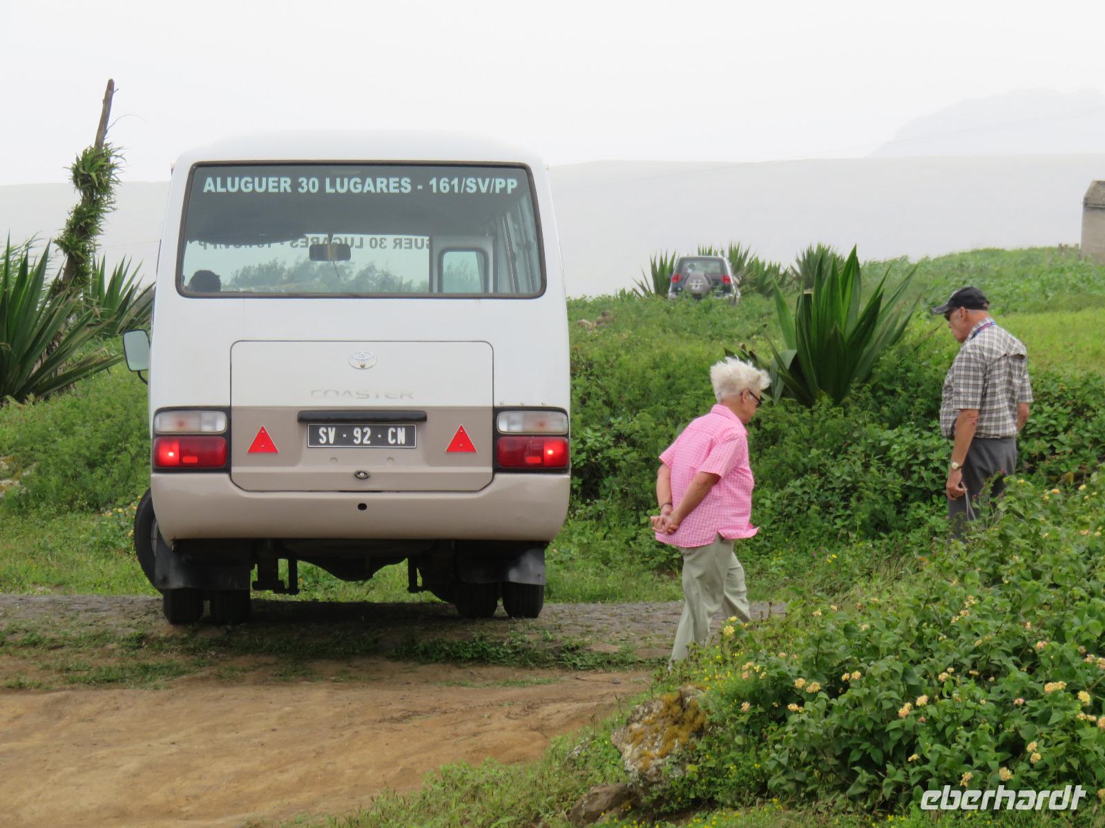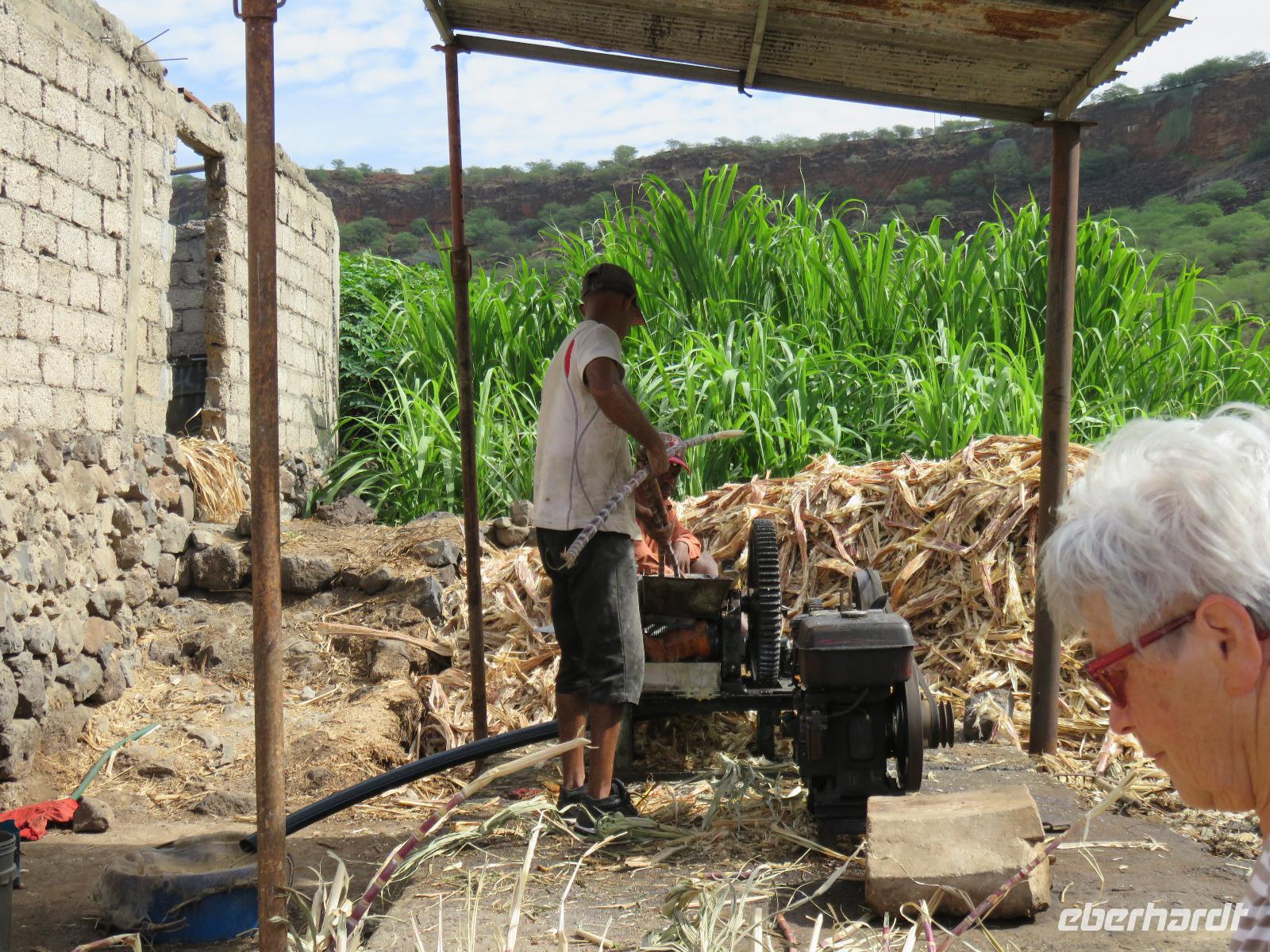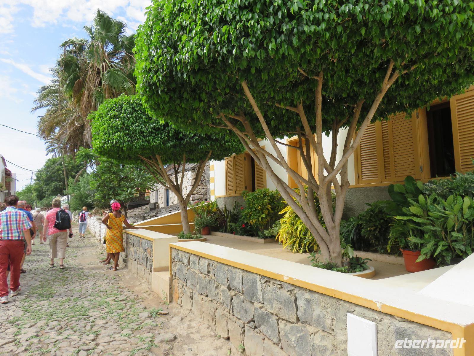 Zwei erholsame, ruhige Seetage lagen hinter. Nun hieß es Land in Sicht. Die AIDAcara lag 08.00 Uhr fest verankert im Hafen der größten Insel der Kapverden. Wir trafen uns zu unserem Eberhardt-Inklusiv-Ausflug. Unser örtlicher Reiseleiter José vermittelte uns ein äußerst lebendiges Bild vom Leben der Kapverdianer. Zuerst legten wir oberhalb der alten Inselhauptstadt Cidade Velha einen Fotostopp am alten Fort, der Festung Real de Sao Felipe, ein. Von hier bot sich uns ein überwältigender Blick in das Ribeira Grande, ein grünes Tal, dass wir in wenigen Minuten aus einer ganz anderen Perspektive sehen sollten. Unser kleiner Minibus brachte uns leicht schaukelnd auf einer Sandpiste zu einer alten Zuckerrohrfabrik mitten in diesem Tal. Freundliche Einwohner zeigten uns, wie mit einer leicht antiken Maschine aus der Pflanze der Saft des Zuckerrohrs herausgequetscht wird. Wir spazierten auch über den Hof des Anwesens und erhielten ein Blick in einfache Lebensverhältnisse. Anschließend spazierten wir über die Rue Banana, die älteste Straße des Ortes. Diese wurde in den letzten Jahren mit Mitteln der UNESCO restauriert. Wir probierten einen kräftigen Croque, einen Rum, kleine Mädchen tanzten für uns und zeigten, dass sie Musik im Blut haben. Nach dem Besuch der im Stil der portugiesischen Gotik wieder hergerichteten Kirche Nossa Senhora do Rosário, der ältesten Kirche aus der Kolonialzeit, lenkten wir unsere Schritte zum Marktplatz. Hier steht der Sklavenpranger, der Pelhourinho von 1520. Er erinnert an die Zeit des 16./17. Jahrhunderts als von hier Zehntausende Westafrikaner via Santiago nach Südamerika oder Europa als Sklaven verkauft wurden. Heute bieten an dieser historischen Stelle fliegende Händler allerlei Kunsthandwerk an. Unsere nächste Station war die Altstadt Praias auf dem Plateau. Unterwegs berichtete José Wissenswertes zum Leben auf der Insel Santiago: zur Wasserentsalzung, zur Gewinnung von Sonnen- und Windenergie, zum Dienst in der Armee, zur Küstenwache, zum Wohnungsbau, zur Rolle der Emigranten ... In Praia angekommen spazierten wir zum zentralen Platz, dem Praca Alexandre Albuquerque, mit dem Rathaus und den farbenfrohen Fassaden aus der Kolonialzeit. Nun ging es hinein in den kunterbunten Markt der heutigen Inselhauptstadt - ein geschäftiges Treiben, Handeln und Feilschen: verschiedene Obst- und Gemüsesorten, Fisch, Fleisch, Gewürze ... Immer wieder kamen Frauen, die Schüssel, Kartoffelsäcke, Holz, sogar eine Waage auf dem Kopf tragen ... es sah leicht und elegant aus und ist sicher schwer. Eine Frau soll bis zu 20 kg auf diese Art und Weise tragen können - unvorstellbar! Auch haben wir die gewünschten frischen Muskatnüsse auf dem Markt gefunden und mit Josés Hilfe gekauft. Wir hatten keine Escudos ... Nun war bereits der Mittag angebrochen und wir fuhren über Sao Domingo hinauf ins Bergland. War die Landschaft an der Küste sehr karg, bot sich uns nun ein völlig anderes Bild. Bedingt durch die Passatwolken und das enge Tal hat sich hier ein Mikroklima gebildet. Es grünt und grünt an den Berghängen. Da 13.00 Uhr der Unterricht in den Schulen wieder beginnt, sahen wir viele Schüler auf dem Weg in die Schule, alle in ihren einheitlichen Schulkleidungen. José berichtete über die Schuldbildung auf den Kapverden. Wir fuhren an einem Schulkomplex vorbei, der ein Geschenk der Schweiz ist. So sollte Unterstützung aussehen, Bildung für die Zukunft des Landes. Vielleicht kann auch der Tourismus helfen, dass Arbeitsplätze entstehen. Im Bergrestaurant von Rui Vaz war für uns das Mittagessen vom Buffet reserviert. Wir erfreuten uns am Blick in das gewaltige, äußerst grüne Tal. Auf dem Rückweg nach Praia durchfuhren wir kleine Dörfer, wo auch heute Häuser aus Lehm errichtet werden: in alter Bauweise mit modernen Formen, ökologisch und mit der Natur verbunden. Auf einem Dorfanger stand eine riesengroße Zuckerrohrpresse, die mit Pferden, Eseln oder Ochsen betrieben wird. Vorbei am Flughafen der Insel erreichten wir schließlich wieder die AIDAcara im Hafen. Herzlich verabschiedeten wir uns von José, der uns seine Insel mit viel Liebe zum Detail näher gebracht hatte und uns unvergessliche Einblicke gegeben hatte. Zurück an Bord ließen wir den Tag Revue passieren. Beim Auslaufen aus dem Hafen luden die Offiziere unseres Schiffes zum Offiziers-Shaken ein, dabei mixten sie erfrischende Drinks. Im Theater bot Kim Bärly die Travestie-Show „Das Spiel mit den Geschlechtern". Da heute der 11.11. ist, konnte ab 22.00 Uhr auf dem Pooldeck mit Berlinern (Achtung auch mit Senf!) und Musik der Start in die Faschingssaison vollzogen werden. Wegen starken Windes musste dies nach innen verlegt werden. Also Treff in der AIDA-Bar. Heute Nacht schaukelten wir etwas kräftiger in den Schlaf.