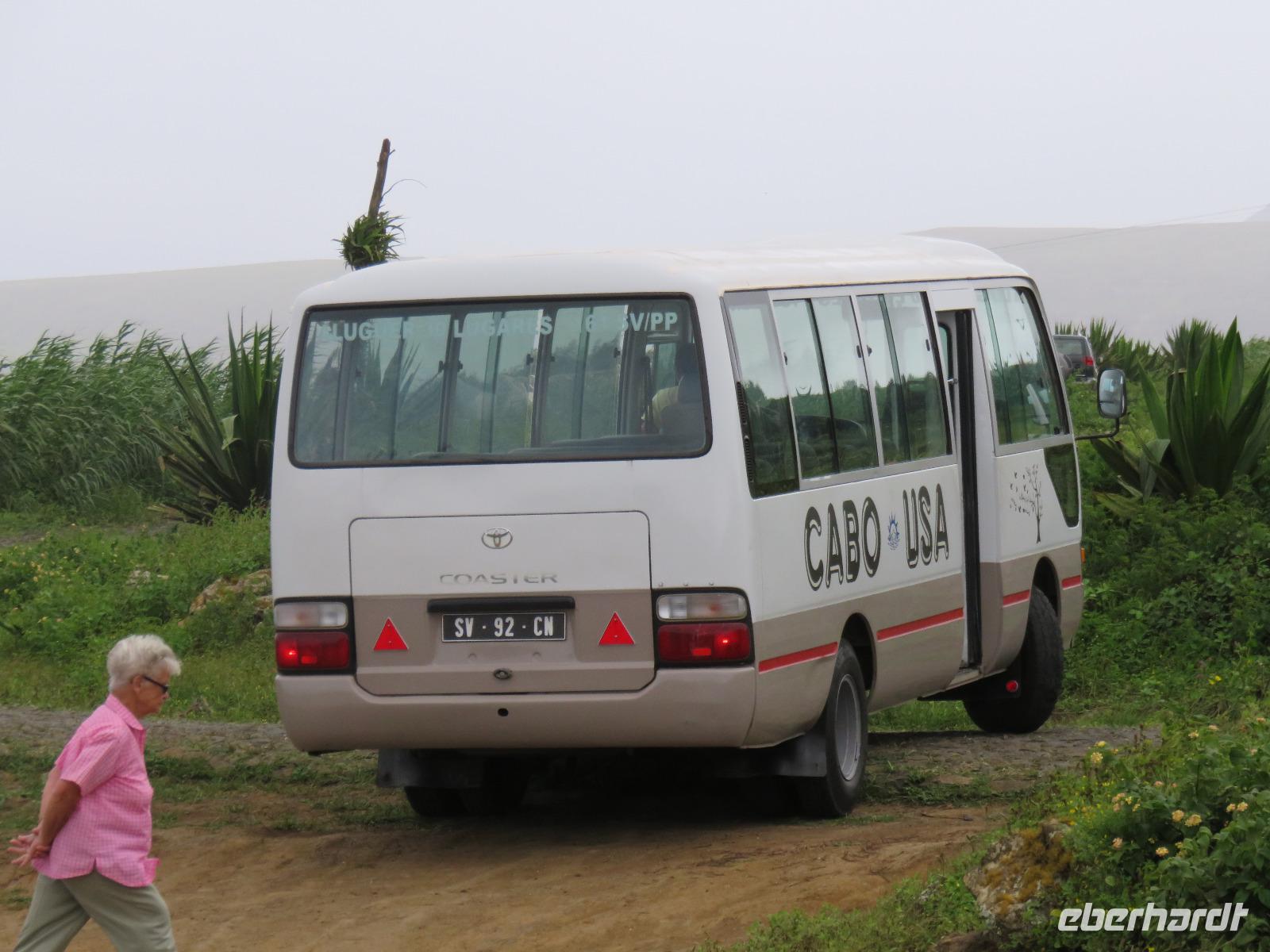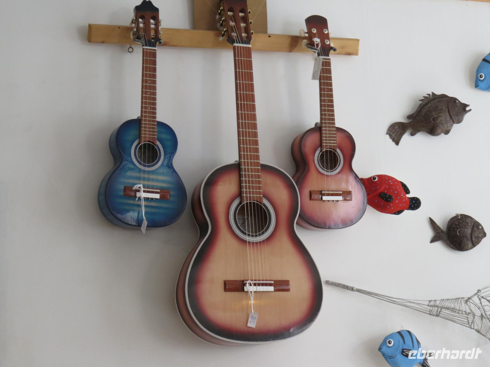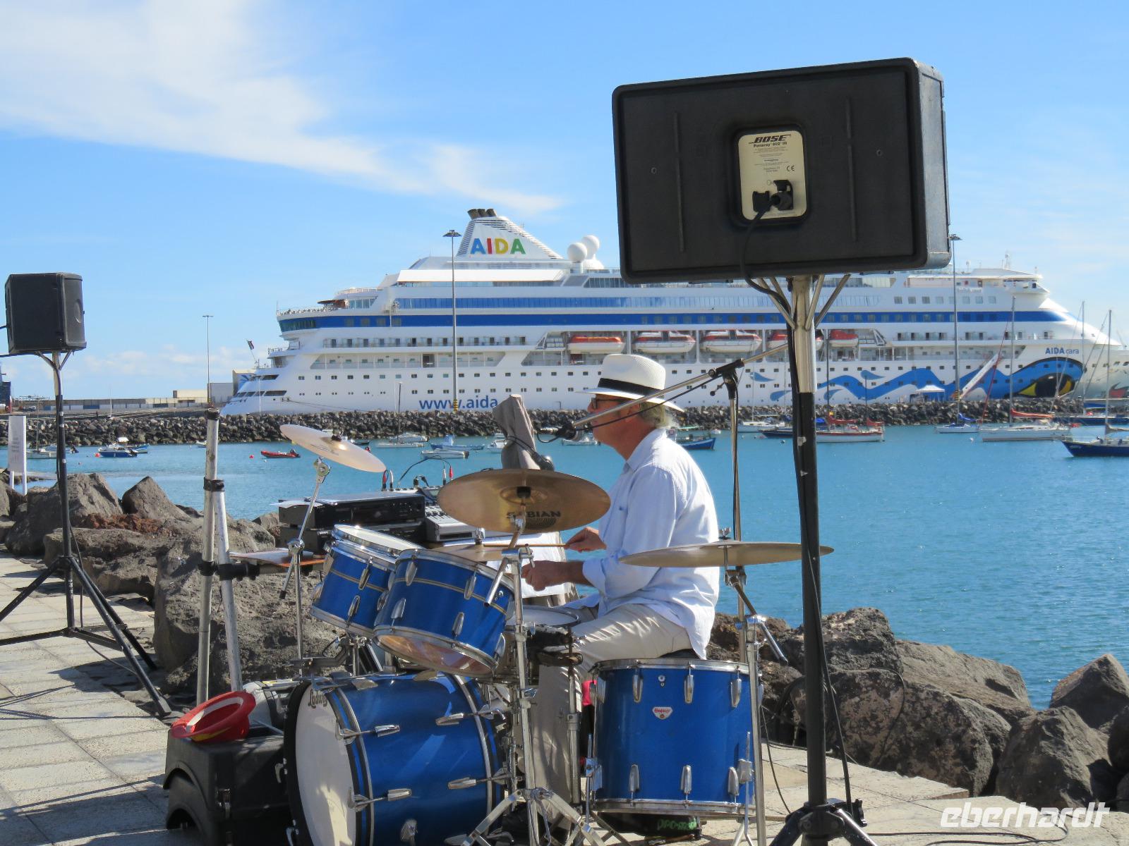 Alle Gäste unserer Gruppe waren seefest und so konnten wir zu unseren Entdeckungen in der Altstadt von Mindelo starten. Am Ausgang des Hafens begrüßte uns auf ganz charmante Art und Weise unsere Gästeführerin Joci. Wir spazierten vom Praca Nova vorbei an der Stadtbibliothek zum Hafen, zur Fischmarkthalle am Nachbau des Torre de Belém und weiter zum Sternplatz mit einer weiteren Markthalle und dem Platz der Händler. Hier hatten wir ein wenig Freizeit, um in den Läden zu bummeln oder die Händler bei der Arbeit zu beobachten. Die Stadt hat eine wechselvolle Geschichte, einst mit dem Hafen wichtiger Kohleumschlagsplatz für Handelsschiffe und Dampfer der Atlantiküberquerung, in neuerer Zeit Knotenpunkt der Transatlantikkabel. Aus der bedeutenden Zeit des Kohleumschlages stammen die großen Handelshäuser rund um den Hafen, geprägt vom portugiesischen Kolonialstil. Im Alten Zollhaus, heute ein Ausstellungszentrum einheimischer Künstler, bestaunten wir den Innenhof. Vorbei am Rathaus, Ende des 19. Jahrhunderts erbaut, und an Kirche Nossa Senhora da Luz erreichten wir einen kleinen Kunstladen und die Markthalle für Obst und Gewürze, wo wir Stopps einlegten. Hier lag ein besonderer Duft in der Luft, ein Hauch Orient, ein Hauch Afrika ... Nun wurde es Zeit, wieder den Bus zu nehmen. Unser Ziel war der Hausberg Mindelos, der mit 750 Metern höchste Berg der gesamten Insel, der Monte Verde, der Grüne Berg. Am Gipfel angekommen, wehte uns ein äußerst kräftiger Wind um die Nase. Er hatte die Wolken weggeschoben und so bot sich uns ein ungehinderter, traumhafter Panoramablick in die halbrunde, große Bucht von Mindelo sowie auf die Buchten von Salamansa und Calhau. Rings um die karge und schroffe Landschaft. Mit unserem Minibus ruckelten wir nach diesem Erlebnis wieder hinab in die Hafenstadt. Nun war es bereits früher Nachmittag und irgendwie hatten wir alle Lust auf ein kapverdisches Mittagessen. In einem kleinen, feinen Restaurant wurden wir ganz herzlich begrüßt. Es war sehr gemütlich und die Speisen äußerst lecker: Fisch, Fleisch, Gemüse, Maniok, Süßkartoffeln, Käse, Mangold ... alles frisch zubereitet und charmant serviert. Nochmals eine kleine Rundfahrt mit unserem Minibus und Didi am Steuer in eine kleine Gasse. Hier besuchten wir die kleine Gitarren-Werkstatt von Meister Luis Baptista. Er hat die Werkstatt von seinem Vater übernommen und zudem in Italien Geigenbau studiert. Heute fertigt er in seiner Werkstatt hochwertige Gitarren und Geigen. Er zeigte uns persönlich die einzelnen Schritte des Entstehens eines dieser prächtigen handgearbeiteten Instrumente. Mindelo gilt als Musikstadt der Kapverden. Ein kleines, privates Konzert als Kostprobe des musikalischen Könnens des Meisters und seiner Familie vermittelte uns ein authentisches Stück Kapverden. Wir lauschten verschiedenen Musikstilen und sangen auch kräftig mit. Plötzlich trat eine kleine Tänzerin in die Mitte und zeigte ebenfalls ihr Talent. Dieses private Konzert war zugleich ein Ereignis der gesamten Gasse: Kinder, Jung und Alt standen in ihr und lauschten, tanzten und sangen mit. Ein herzliches Dankeschön an Meister Baptista und seine Mitarbeiter! Nach diesem Erlebnis hieß es bereits Abschied nehmen und wir fuhren zurück zum Hafen. Unsere Reiseleiterin Joci hatte uns einen authentischen Tag bereitet. Wir konnten ihr und unserem Chauffeur Didi nur ein ganz liebes Dankeschön sagen. Tief beeindruckt und etwas nachdenklich gingen wir wieder zurück an Bord der AIDAcara. Wir hatten freundliche, offene und einfach lebende Menschen kennengelernt. Wir sahen ein Land im weiteren Aufbruch, wo viel gebaut wird, wo in die Bildung der Kinder investiert wird, wo an der Infrastruktur gearbeitet wird, wo der Tourismus in der Entwicklung ist, wo es aber noch zu wenig Arbeitsplätze gibt ... noch reisen zu viele Menschen nach Südamerika und Nordamerika aus. Den weiteren Nachmittag gestalteten jeder nach den eigenen Vorstellungen.