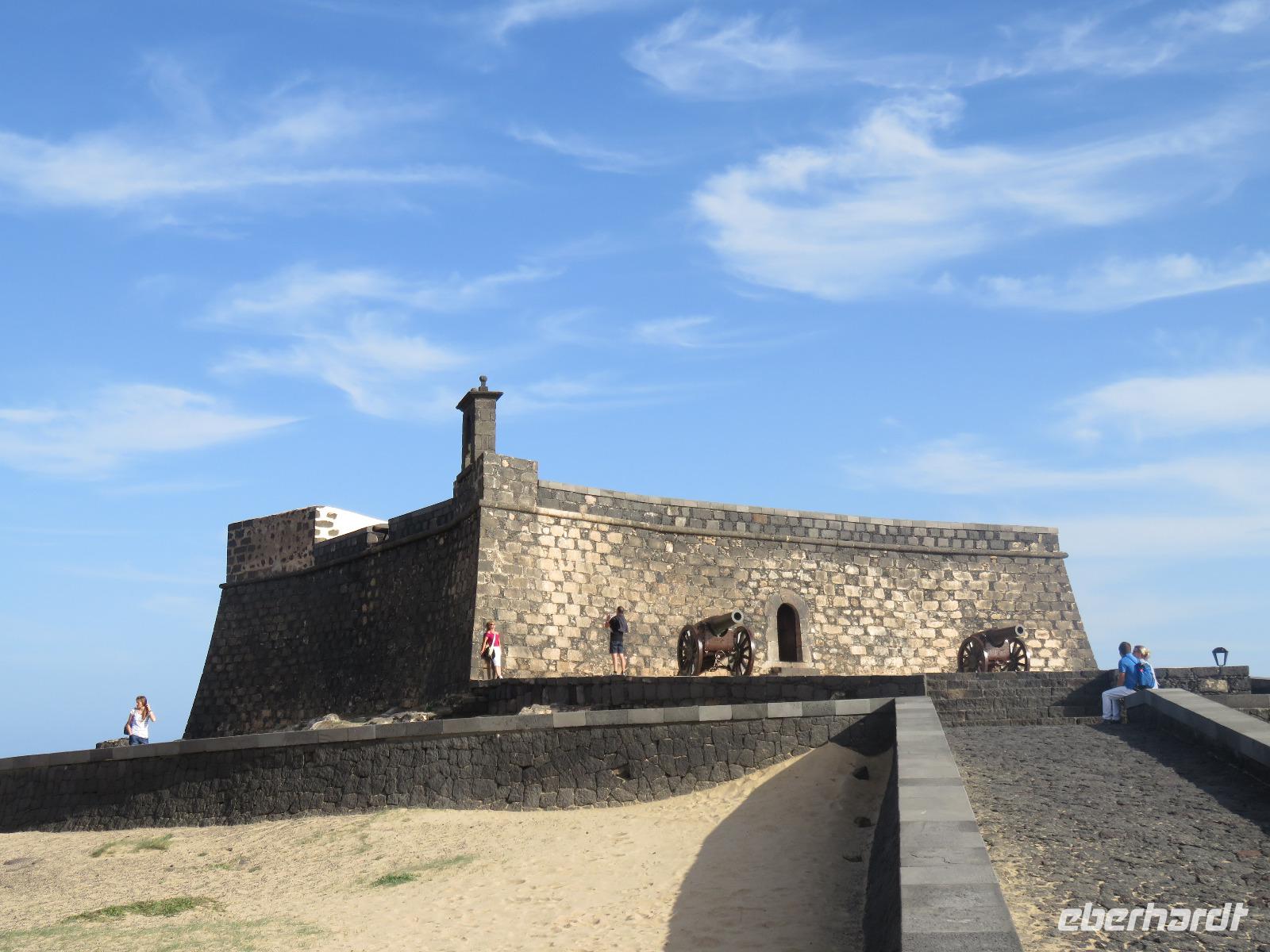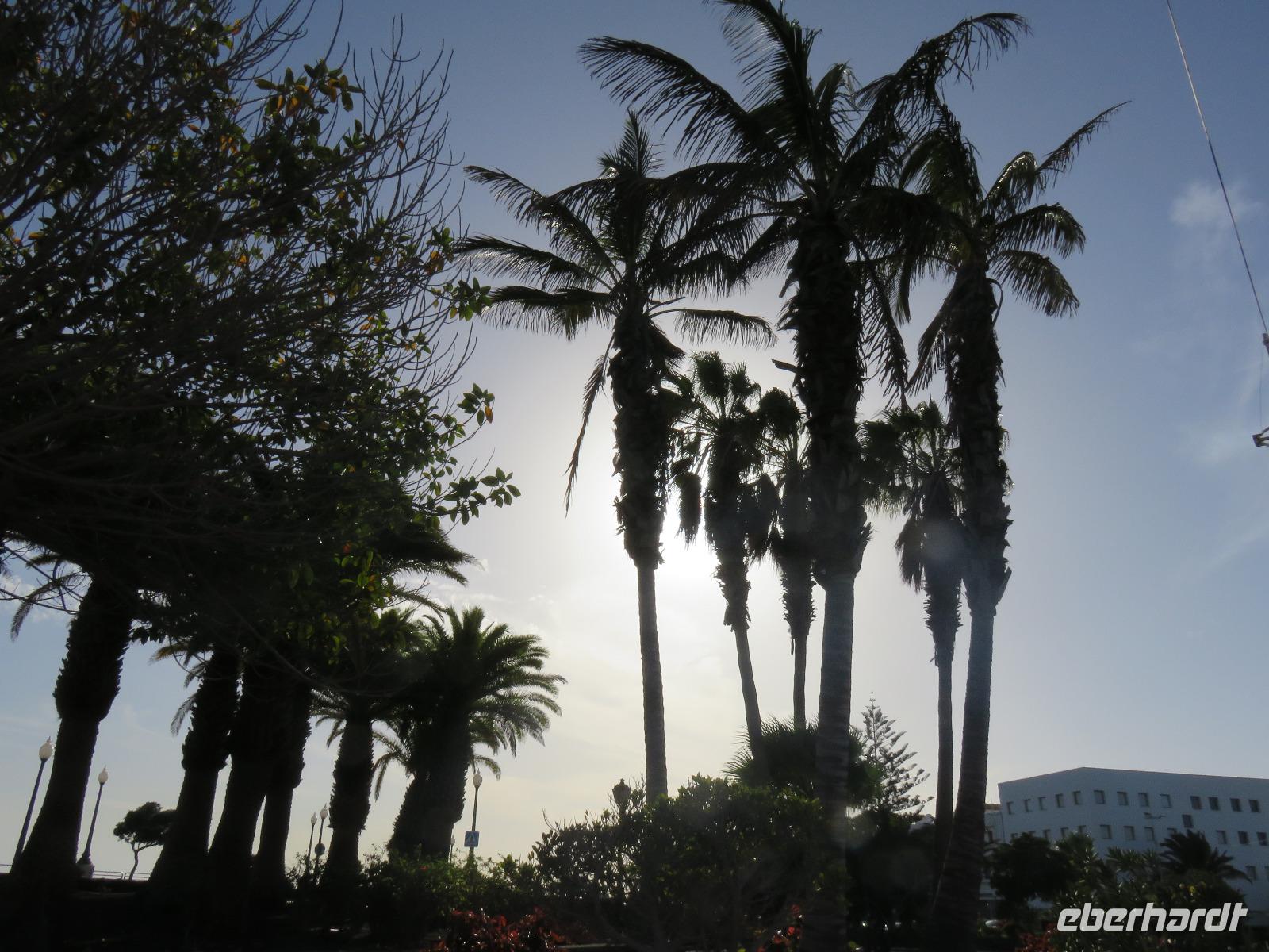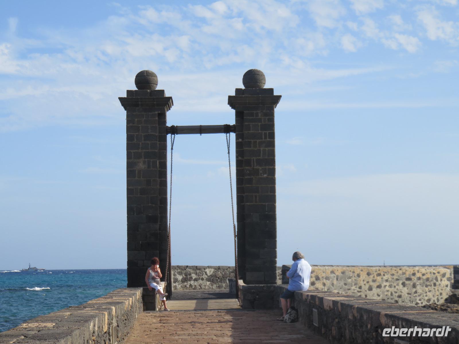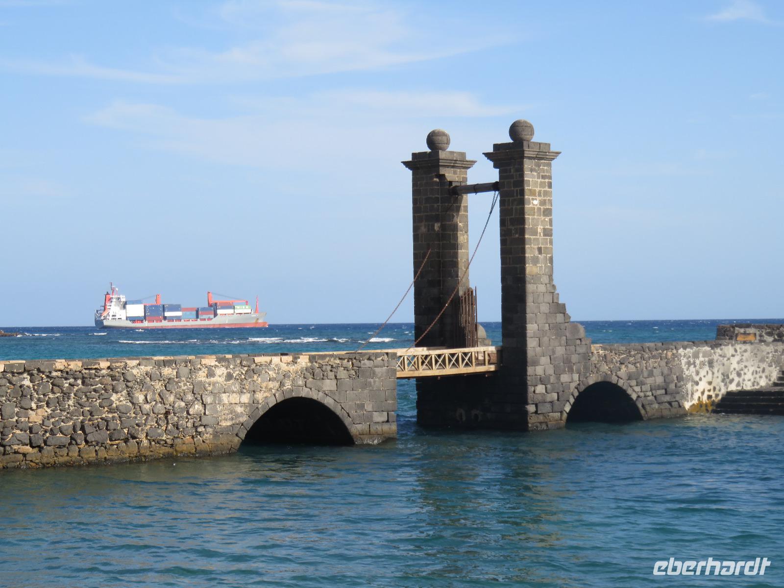 Eigentlich sollten wir die Hauptstadt der Feuerinsel erst gegen 16 Uhr erreichen. Aber unser Kapitän hatte entschieden, mit größerer Geschwindigkeit zu kreuzen. So erreichten wir bereits 10 Uhr Lanzarote. Es dauerte etwas bis das Schiff durch die Behörden zum Landgang freigegeben wurde. Deshalb entschlossen wir uns, den dritten Vortrag unseres Lektors Jörg. J. Reiche zu besuchen. Er stellte die östlichen Inseln der Kanaren vor: La Gomera, Lanzarote und Fuerteventura. Er löste auch das Wolkenspiel auf, das wir an den letzten Tagen beobachten konnten. Die Passatwolken sind in der Höhe von 600 bis 1.600 Metern zu finden. Daher die Sonne am Teide auf Teneriffa und die über die Cumbre wallenden Wolken auf La Palma. Nach dem Mittagessen nutzten die meisten Gäste unter uns den Shuttle vom Schiff in die Altstadt von Arrecife. Diese präsentierte sich klein und fein. Am Stadthafen bestaunten wir die schmucken Häuser in dem für die Küste typischen weiß-blauen Stil. In der Fußgängerzone buhlten die Geschäfte namhafter Hersteller um unsere Gunst. Zurück führte der Weg entlang der schmucken Uferpromenade. Wir nahmen nicht den direkten Weg. Das Castello de San Gabriel mit dem Historischen Museum lockte unsere Schritte hinüber zur kleinen Insel. Vorbei an der Regionalverwaltung und einem Botanischen Garten spazierten wir zurück zur Touristinformation. Eigentlich wollte ich für unsere Gruppe Material zur Insel und zur Stadt besorgen. Aber leider dauerte die Siesta noch an. Also zurück zur AIDAcara.
