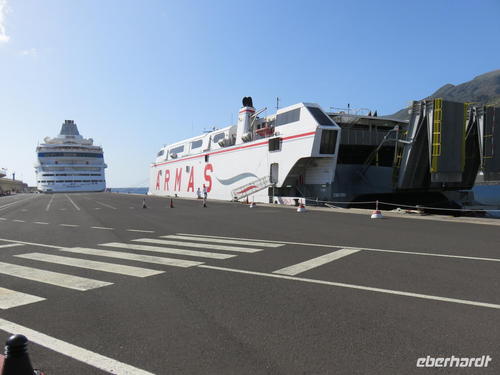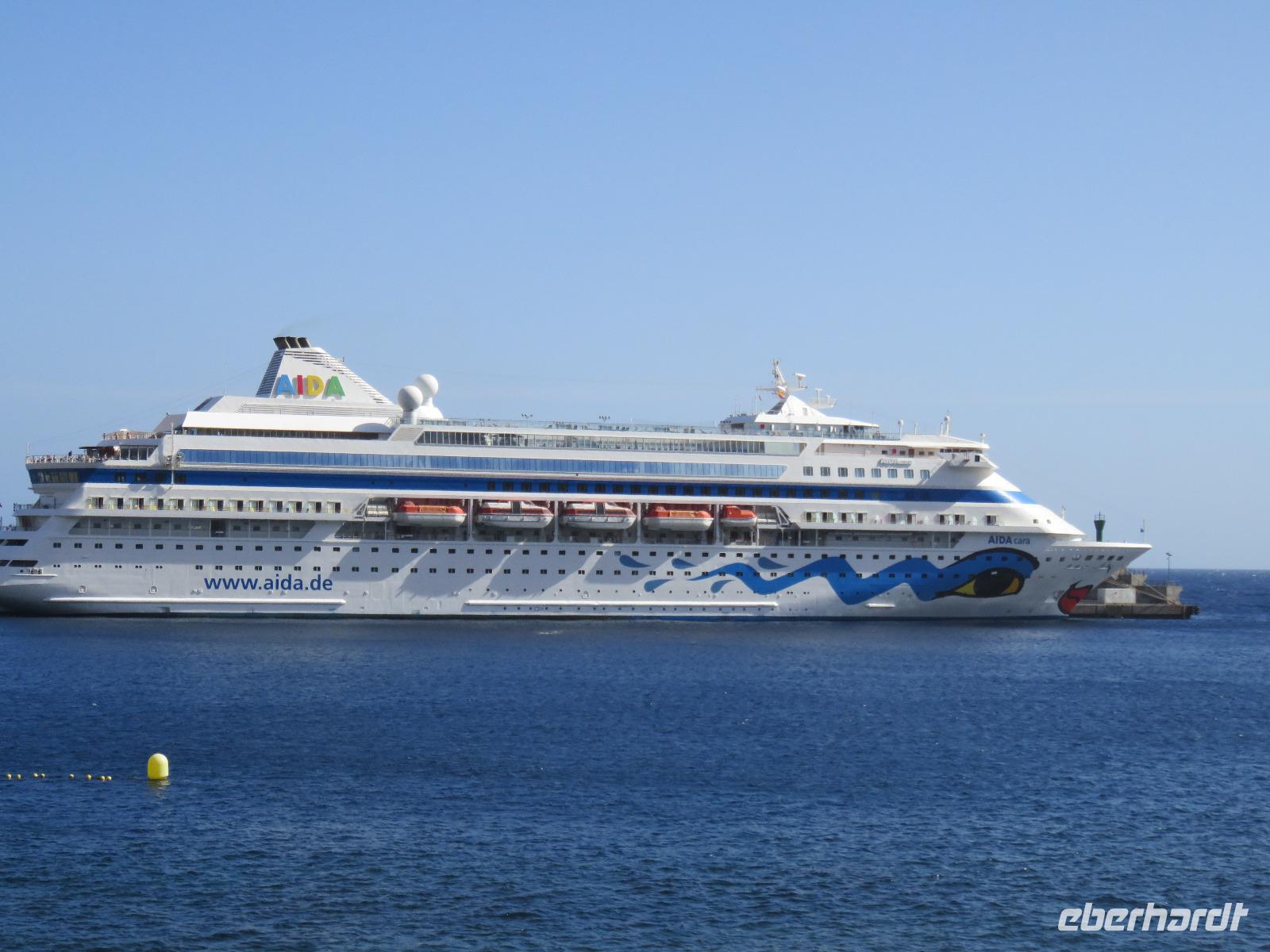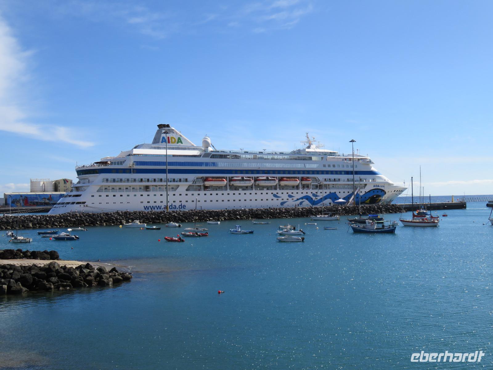 Dieser Tag war auch für AIDA von besonderer Bedeutung, praktisch eine Jungfernfahrt. Wir waren dabei, als zum ersten Mal ein Schiff der AIDA-Flotte auf El Hierro festmachte. Die AIDAcara soll auch das größte Schiff gewesen sein, dass bis dahin im Hafen von Puerto de la Estaca (an der Stange) festmachte. Der Abend bot nach dem Ablegen unterschiedliche Möglichkeiten der Unterhaltung, zum Beispiel die Show Cotton Club im Theater oder Let's Swing & Dance in der AIDA-Bar.