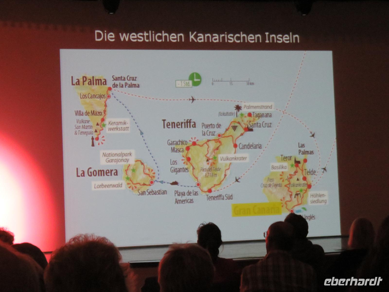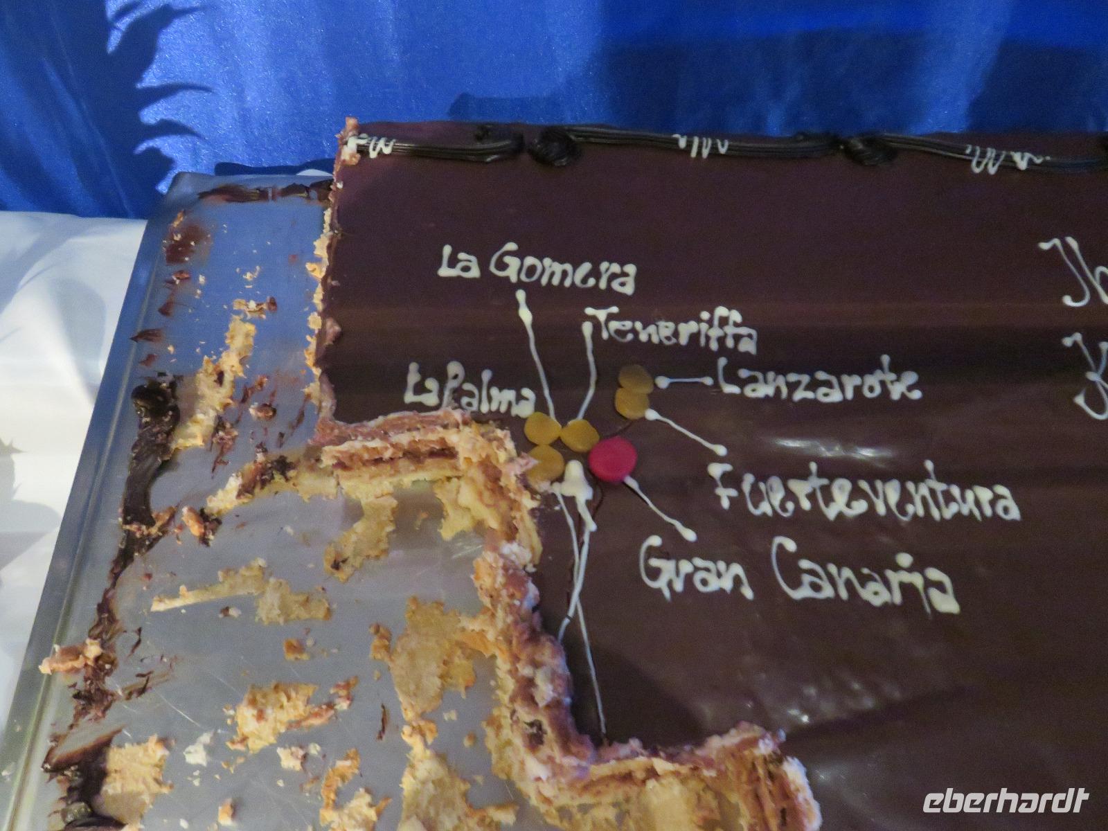 Der Wind hatte etwas nachgelassen, war aber noch immer frisch. Am Vormittag trafen wir uns vor dem Theater. Der Chef der Theater-Truppe, Timo, führte uns persönlich hinter die Kulissen: Lager, Schneiderei, Garderoben der Stars des AIDA-Ensembles, Requisiten ... Wir erhielten einen Einblick in die Abläufe des Theaters. Eine tolle Logistik auf engem Raum! Nun können wir uns manches Hämmern oder Schrauben während einer Probe oder Präsentation erklären. Es blieb auch genügend Zeit, um anschließend dem Vortrag des Lektors Dr. Jörg J. Rieche Die Kanarischen Inseln zu lauschen. Am Nachmittag hatten wir dann unsere zweite Eberhardt-Runde im Shuffleboard. Um es kurz zu machen. Wir hatten wieder mächtig Spaß. Wir Frauen führten erst, dann gab es einen kleinen Hänger und zum Schluss hatten die Männer wieder das Glück auf ihrer Seite. Macht nichts, wir nahmen es im olympischen Geist. Doch halt, da habe ich etwas verpasst: Olympisch ist Shuffleboard nicht. So ein Seetag kann ganz schön stressig sein: Schnell eine Tasse Kaffee und dann zur nautischen Sprechstunde des Kapitäns. Das ist ein Muss, wenn man etwas über die AIDAcara, die Navigation und die Technik von Maschinen und Brücke erfahren will. Zudem wurde eine Vielzahl von Fragen beantwortet: Sicherheit auf See, Umweltschutz, Ausbildung an Bord, Anteil der Frauen auf der Brücke ... alle Fragen beantworteten der Kapitän, der Leitende Offizier und der Umwelt-Offizier auf unterhaltsame und verständliche Art. Nun schnell in Schale geworfen, denn wir hatten einen Termin zum Gruppenfoto mit unserem Kapitän, dem General Manager und dem Hotel Manager auf dem Pooldeck. Natürlich wurde auch die ein oder andere Frage beantwortet. Toll, auf AIDAcara ist alles sehr persönlich und unkompliziert.