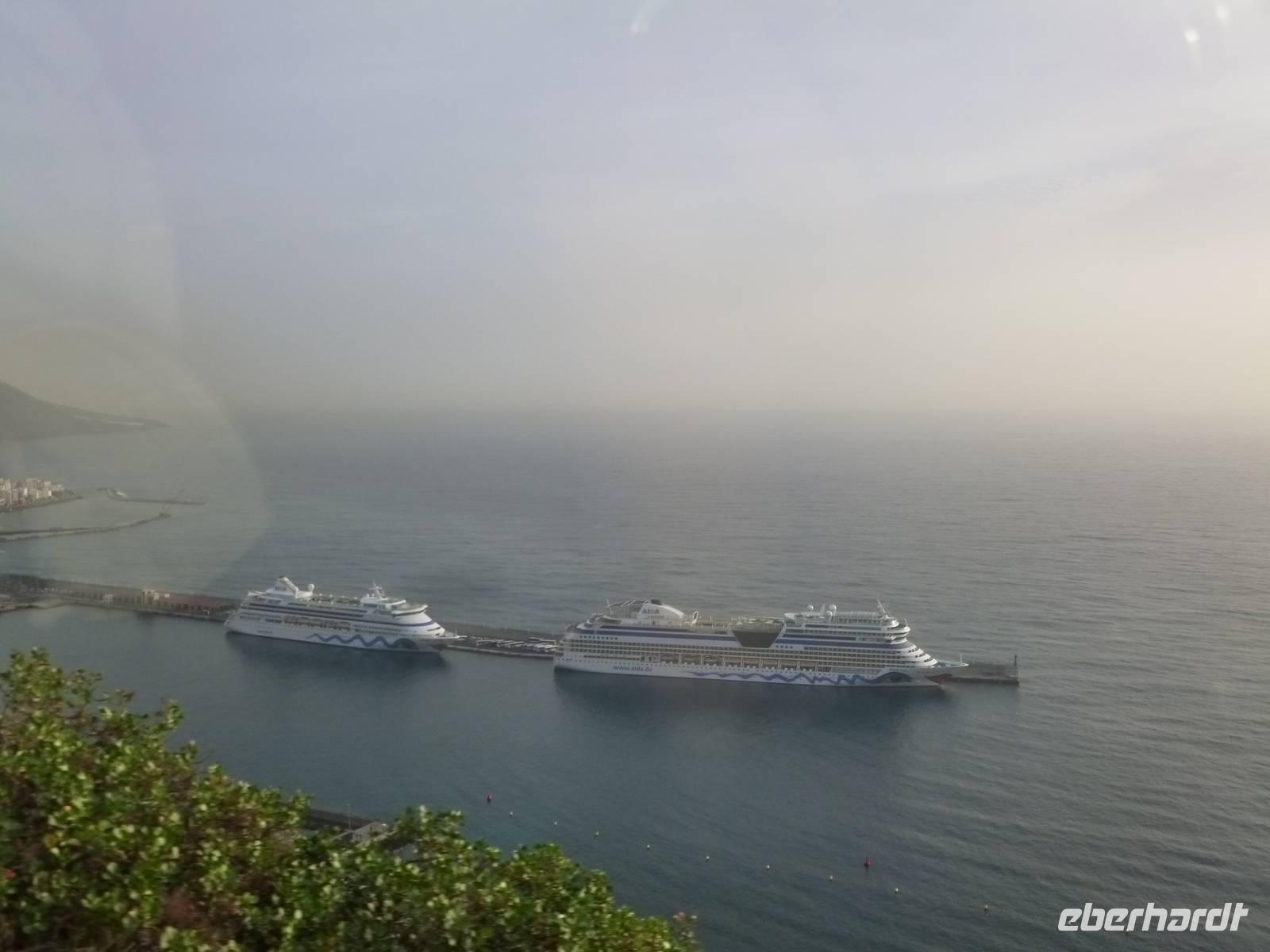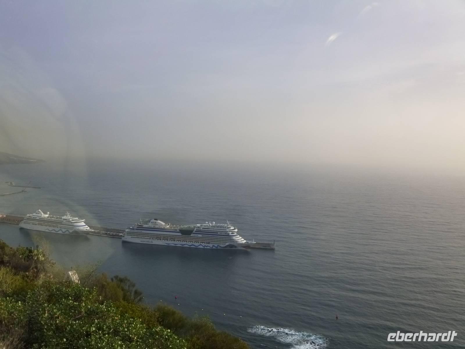 Am Vormittag erreichten wir das Naturparadies La Palma. Still, zauberhaft und überaus grün empfängt uns die kleine Insel. Gemeinsam mit unserer örtlichen Reisebegleitung Pia erreichen wir zuerst den Ort Las Nieves und besichtigen die Wallfahrtskirche der Schutzpatronin der Insel. Vom Aussichtspunkt Mirador de la Concepción haben wir einen schönen Blick über die Inselhauptstadt und den Hafen, wo „AIDAstella" liegt. Höhepunkt der Tour ist der Besuch des Nationalparks Caldera de Taburiente. Bei frischer Waldluft genossen wir die herrliche Natur. Nach einem kurzen Stopp in Santa Cruz endet unserer Ausflug am Hafen. Am nachmittag konnte jeder die Bordeinrichtungen nach eigenen Vorstellungen nutzen.