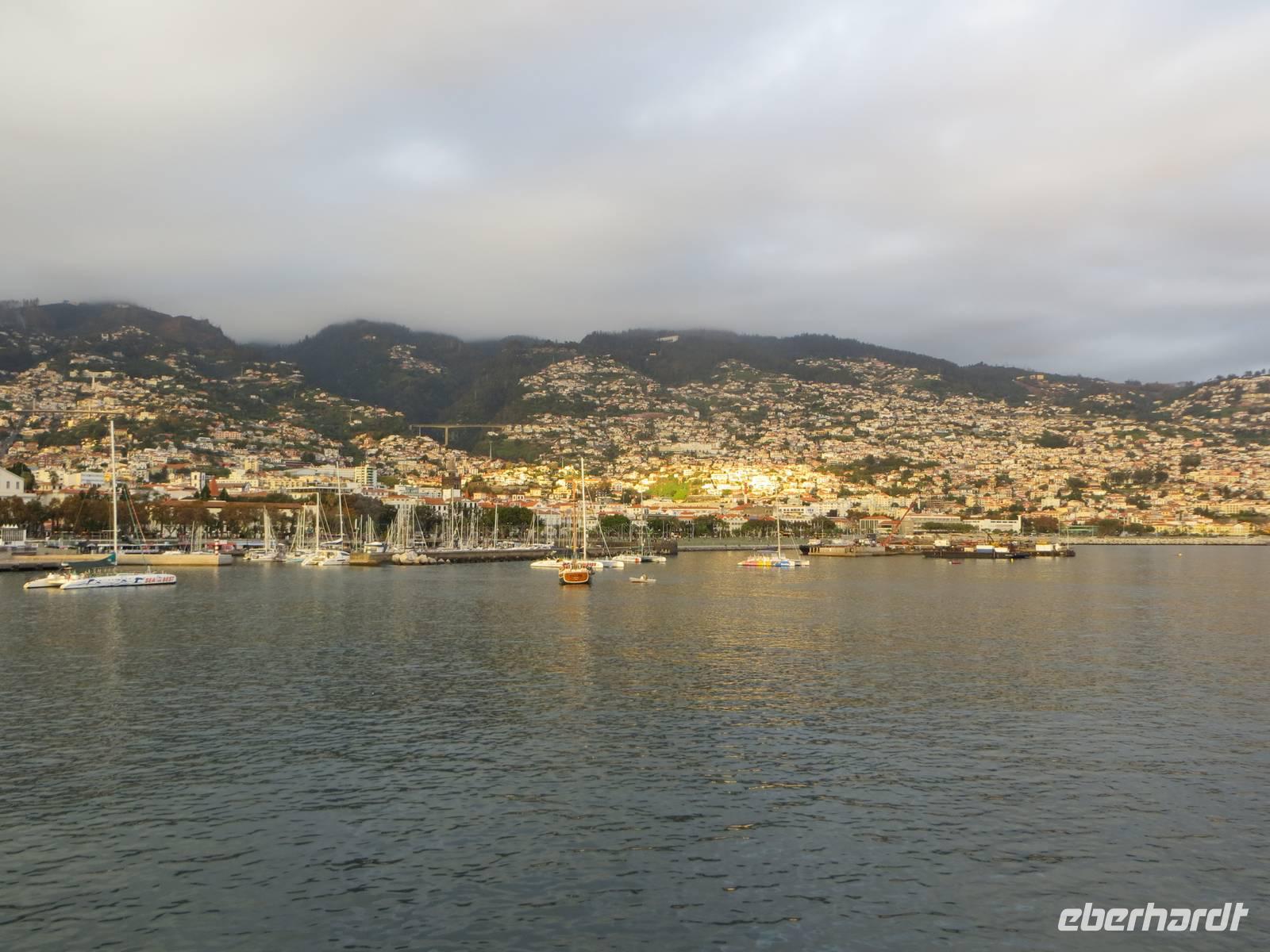 Der weitere Tag stand uns zur freien Verfügung. Der Himmel hatte sich leider etwas verdunkelt. Es regnete nicht und so trafen wir uns zum Plauschen an Deck. Die Abendsonne tauchte Funchal später in ein goldenes Licht, eine nach gebaute Caravelle brachte Touristen zurück in den Hafen ... Nach dem Abendessen legte die AIDAstella 20.00 Uhr ab und wir blickten auf eine faszinierend beleuchtete Silhouette - leider noch nicht im festlich illuminierten Kleid der Adventszeit, wie in den vergangenen Jahren. Ganz, ganz langsam verschwand die Insel unserem Blick. Unterwegs hatten wir auch über die Vielfalt der Insel gesprochen. Nach unserer Stippvisite vielleicht eine Anregung zu einem längeren Aufenthalt auf der Blumeninsel. Eberhardt TRAVEL bietet dazu verschiedene Angebote, von der Rundreise bis zur Wanderreise.