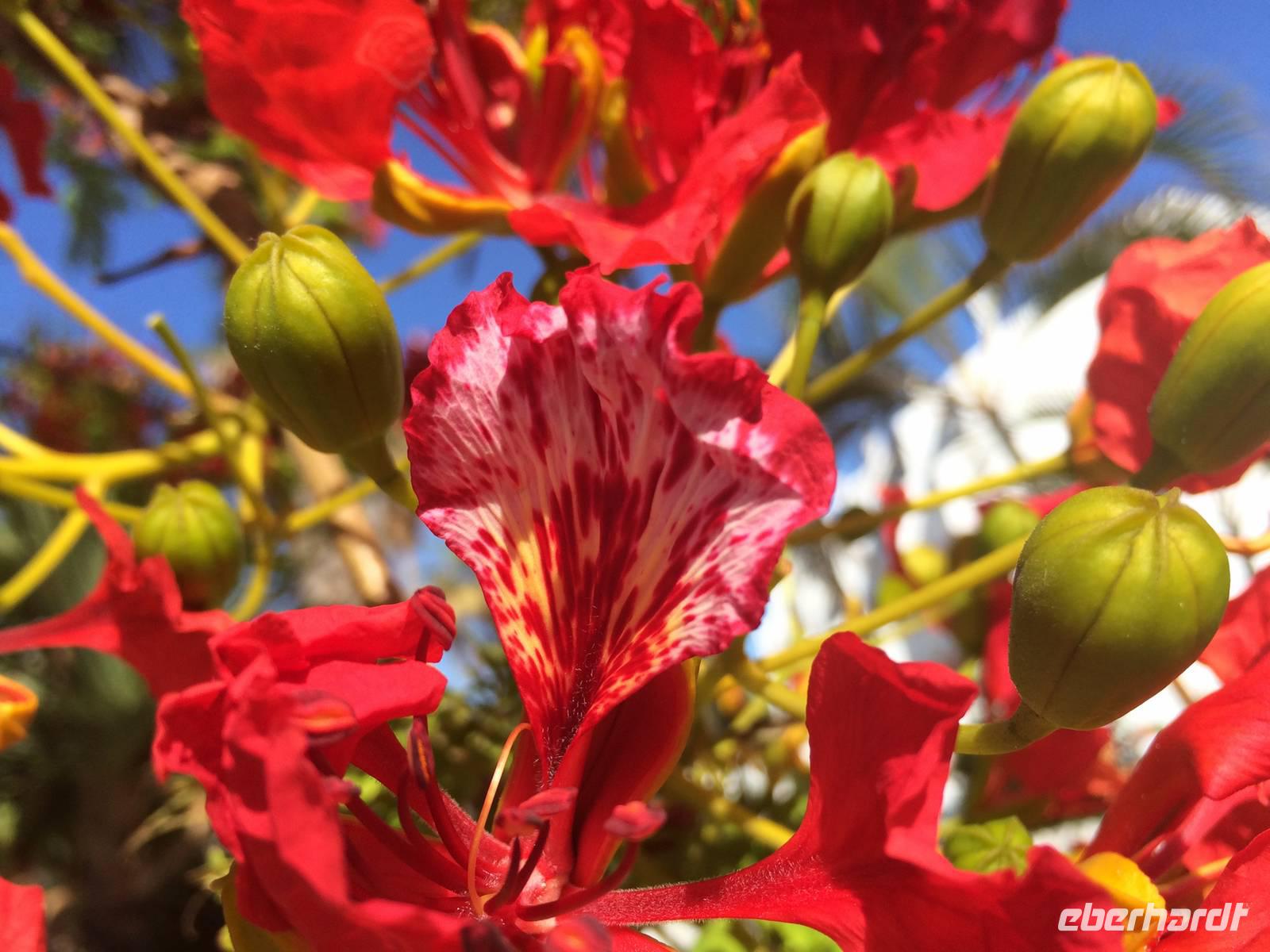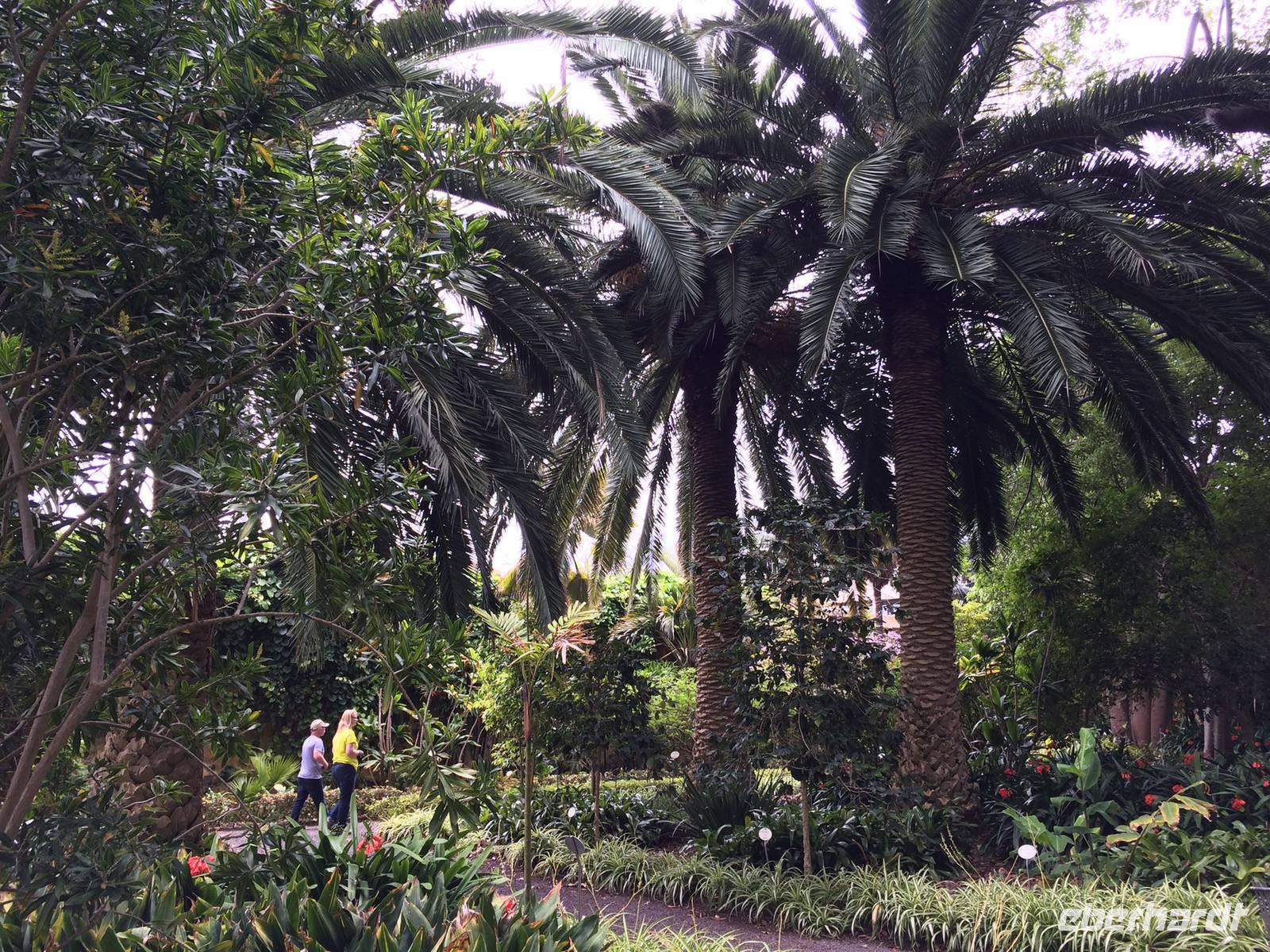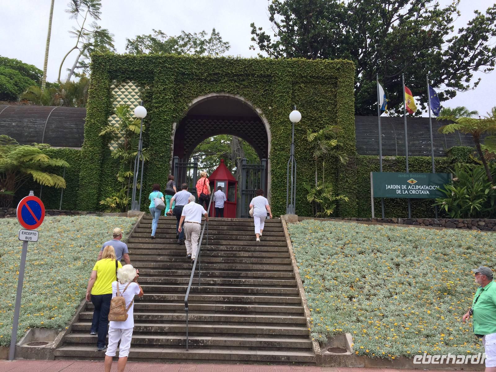 In Puerto de la Cruz liegt der Garten Jardin Botanico. Dieser Ort der Ruhe und Entspannung wurde auf Erlaß von König Carlos III. 1788 angelegt. Wir spazieren durch die gepflegte Anlage mit Pflanzen und Bäume aus aller Welt. Wir bestaunen botanische Raritäten, die gewaltigen Aurokarien und tauchen in das bunte Blütenmeer der exotischen Pflanzen ein.