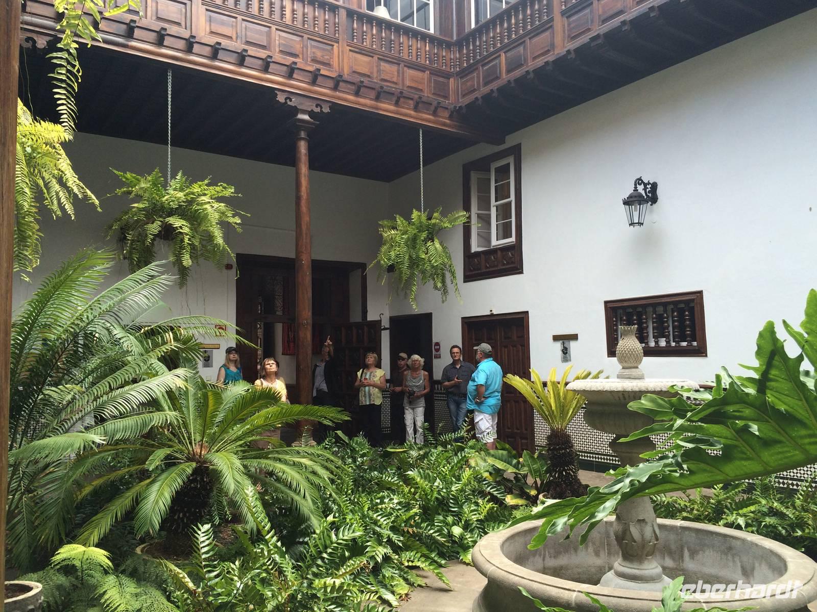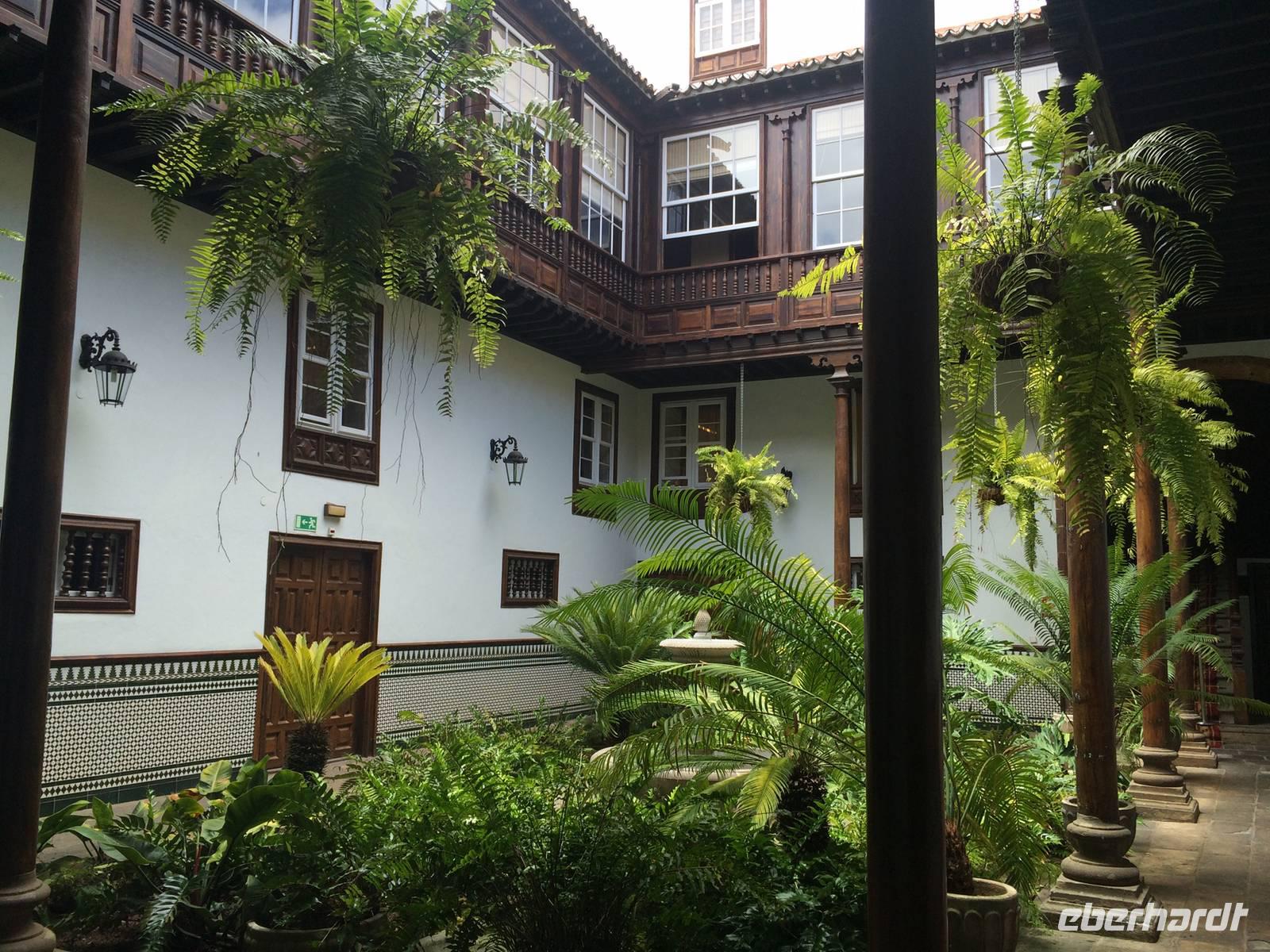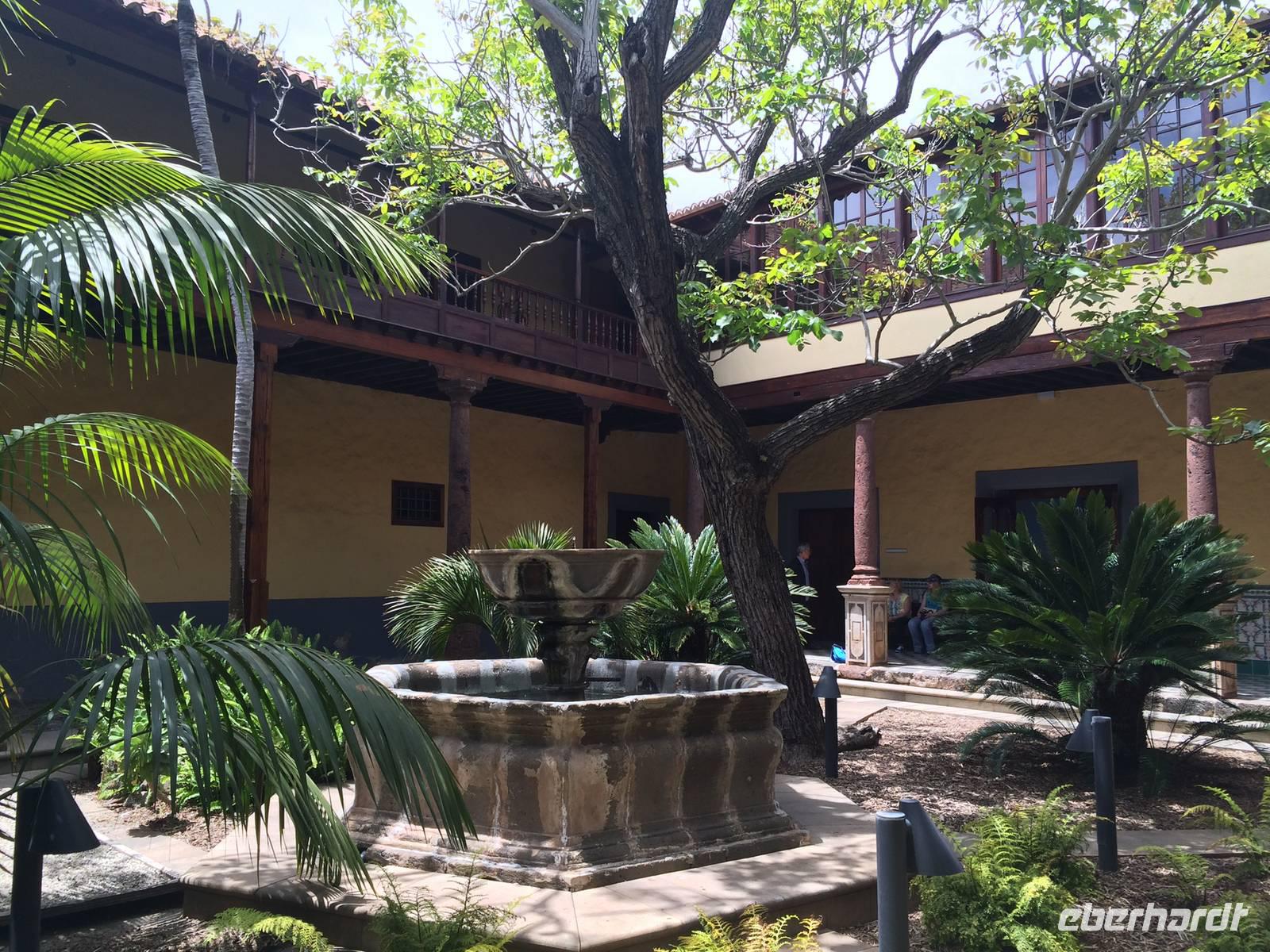 Unser erstes Ziel ist Santa Cruz de Tenerife. Bei weitem hat sie als Hauptstadt von Teneriffa nicht nur repräsentative Aufgaben einer Urlaubsinselstadt, sondern ist ebenfalls Verwaltungssitz der westlichen Kanarischen Inseln. Am Auditorium legen wir einen Fotostopp ein und bewundern die bizarre Architektur des legendären Bauherren Calatravain. Ganz in weiß aus Beton und weißer Keramik mit abstrakten Formen erinnert es an die Oper von Sydney in Australien oder an ein Fantasiegebäude aus Elfenbein. Dieses Meisterwerk der Architektur ist den Tinerfeños zwar sehr teuer gekommen, denn mehr als 70 Millionen verschlang es, aber bietet vielseitige und hochwertige musikalische sowie tänzerische Vorstellungen. Wir fahren weiter in die Innenstadt. Viele kleine Boutiquen mit kanarischen Handarbeiten neben einer Vielzahl kleiner Souvenir und Schmuckgeschäfte laden zu einem ausgedehnten Shopping-Bummel ein. Wer das nicht mag oder braucht, kann eine wunderbare Badepause auf dem legendären Strand Playa de Las Teresitas einlegen - der wohl einzige, helle Sandstrand mit karibischem Flair auf der Insel.Nun tauchen wir ein in die Geschichte und besuchen die ehemalige Hauptstadt La Laguna, ein Kontrast zu Santa Cruz. Die Architektur könnte nicht gegensätzlicher sein. Auf der einen Seite finden wir Hotelburgen und moderne Bauten in Santa Cruz, auf der anderen Seite die beschaulichen ländlichen Berghäuser, die Herrenhäuser mit ihren kunsthandwerklichen Elementen und prunkvoll geschnitzten Holzbalkone in La Laguna. Liebhaber historischer Bauten wie wir kommen auf unsere Kosten. Überall finden wir Villen, Paläste, Architekturdenkmäler und traditionelle Häuser aus dem 17. und 18. Jahrhundert mit herrlichen Patios (Innenhöfe). Seit 1999 gehört die Stadt zu den UNESCO-Weltkulturerbestätten.
