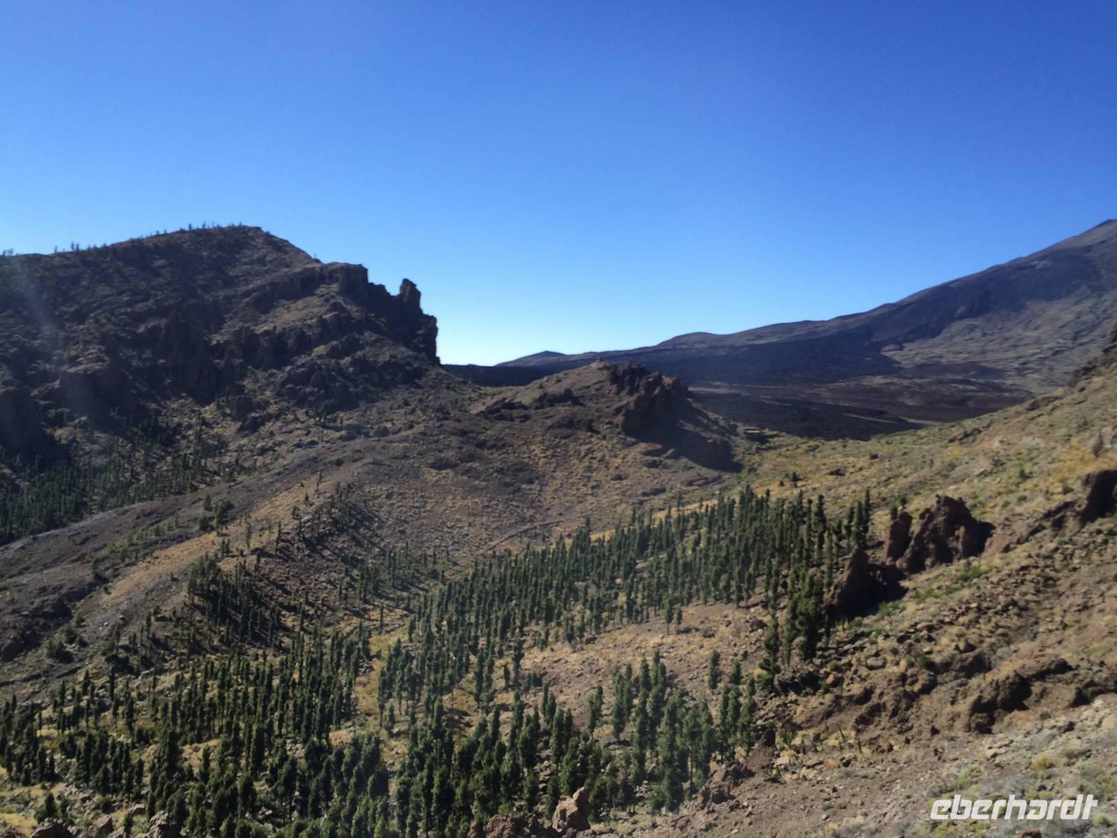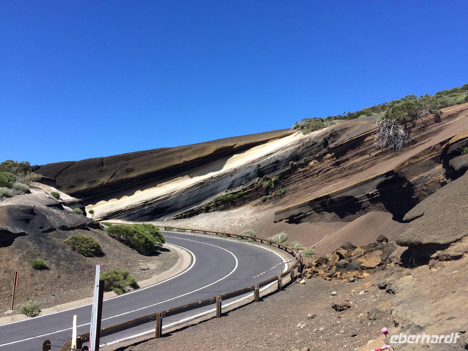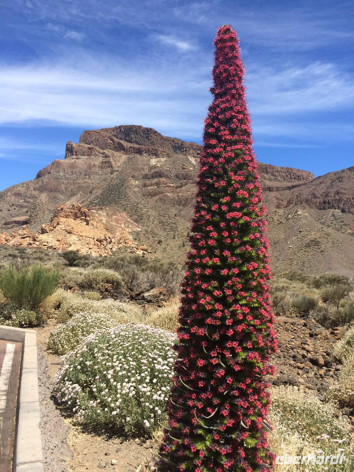 Petrus ist noch ein Mal gnädig und lässt die Sonne immer wieder durch die Wolkendecke hindurch. Eduardo und Pedro begrüßen uns am Nachmittag und wetten mit uns, dass es auf dem Teide definitiv sonnig sein wird. Und wie könnte es auch anders sein. Wir fahren zum dritten Mal und ebenfalls eine neue Route über Santiago del Teide in den Teide-Nationalpark. Von anderen Seiten und Perspektiven bewundern wir die Schönheit des Teides und seine Umgebung mit Kiefern bewachsenen Hängen. Bei einem kleinen Spaziergang durch die Mondlandschaft erhalten wir einen fantastischen Einblick über die Geschichte des seit 1954 bestehenden Nationalparkes. Mit ca. 3 Millionen Besucher im Jahr ist er der meist besuchte Park der Insel. Der Name "El Teide" stammt von den Ureinwohnern Guanchen, die den Berg "Echeyde" nannten (zu Deutsch Hölle oder Dämon). Die Legende besagt, dass der Dämon sie für die schlechten Taten der Menschen mit Vulkanausbrüchen bestrafte.