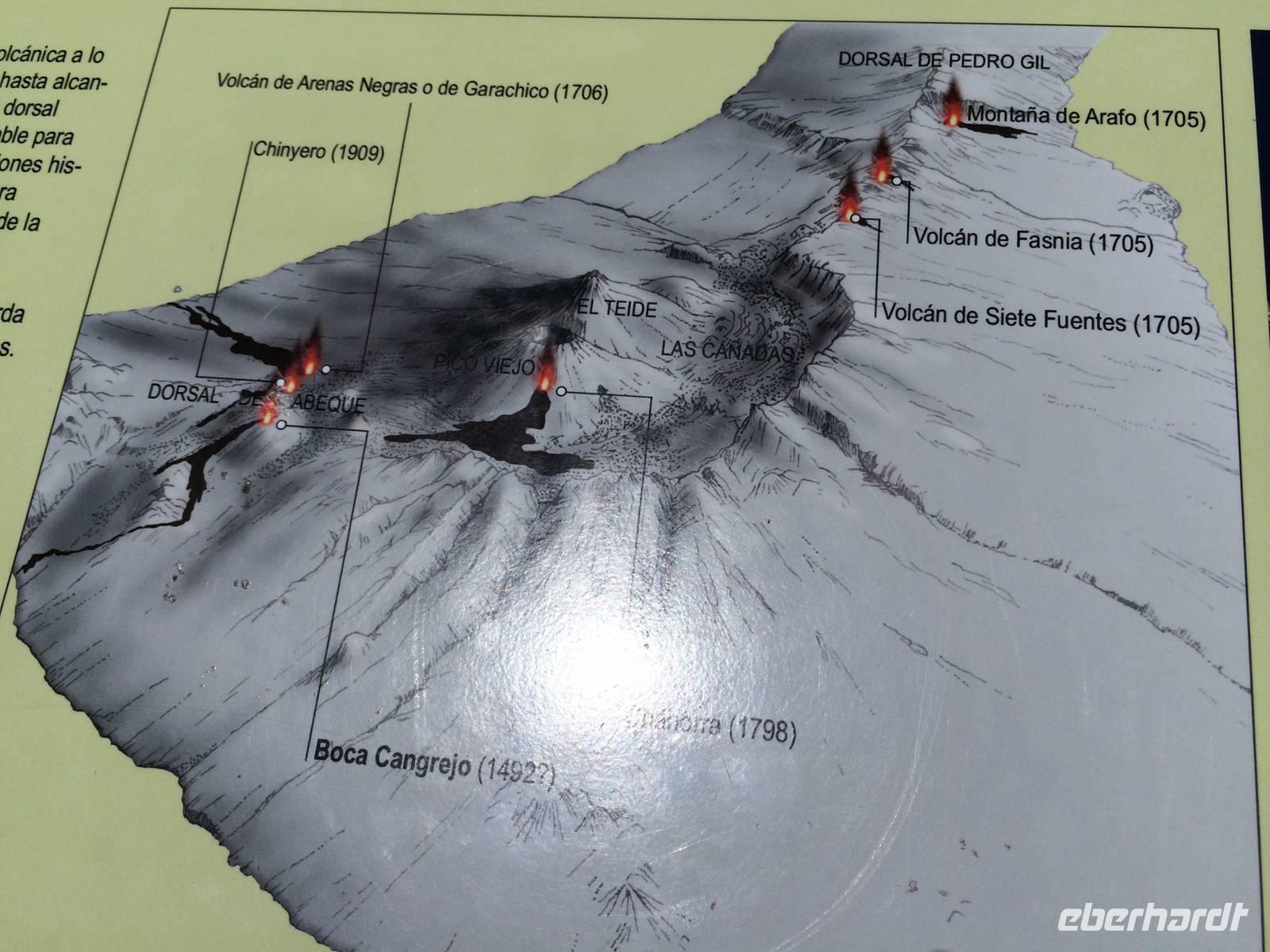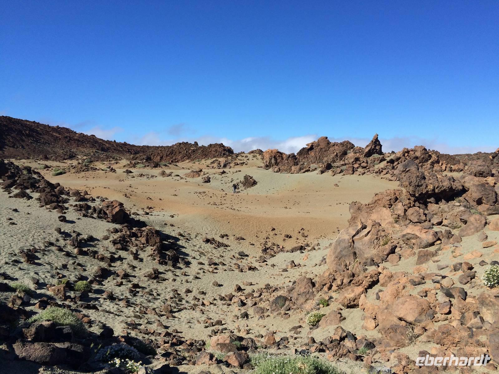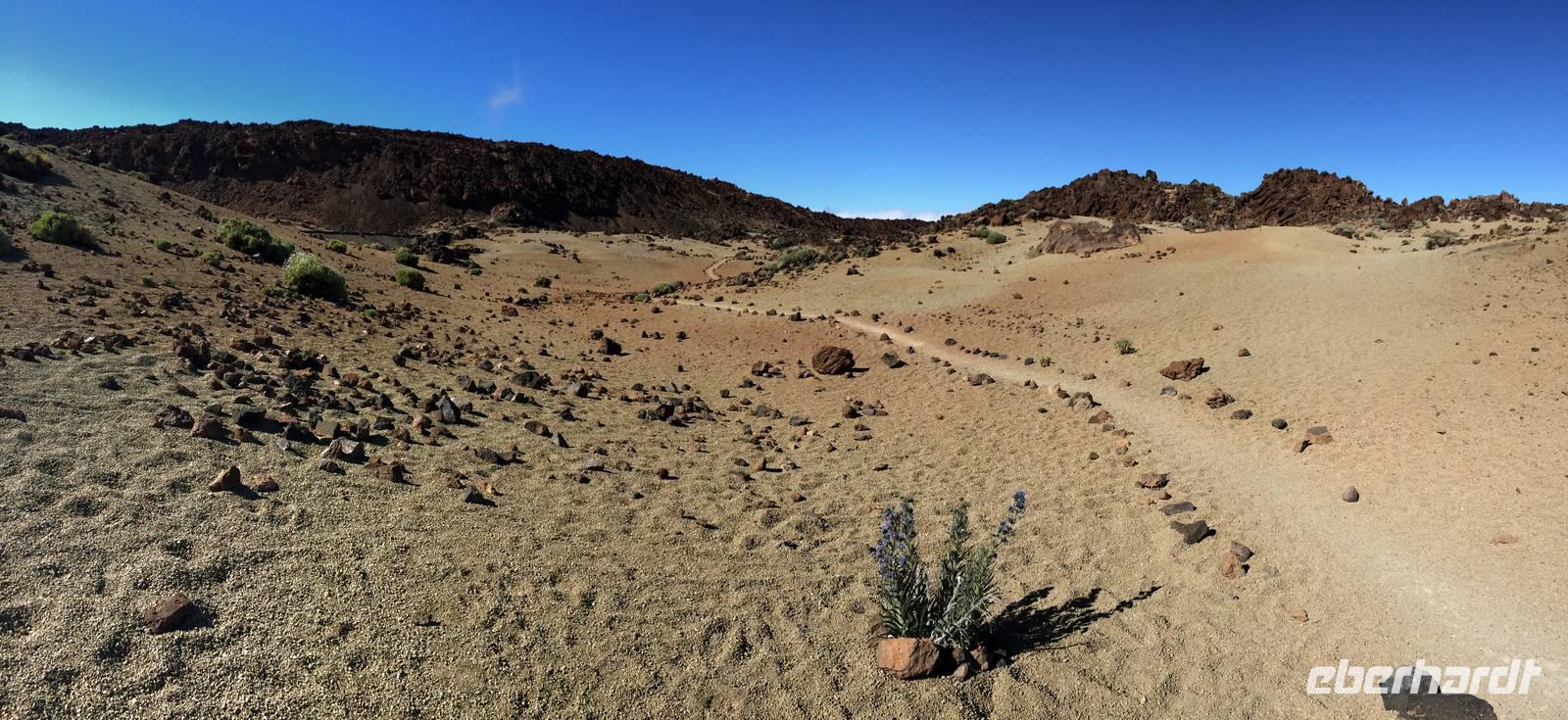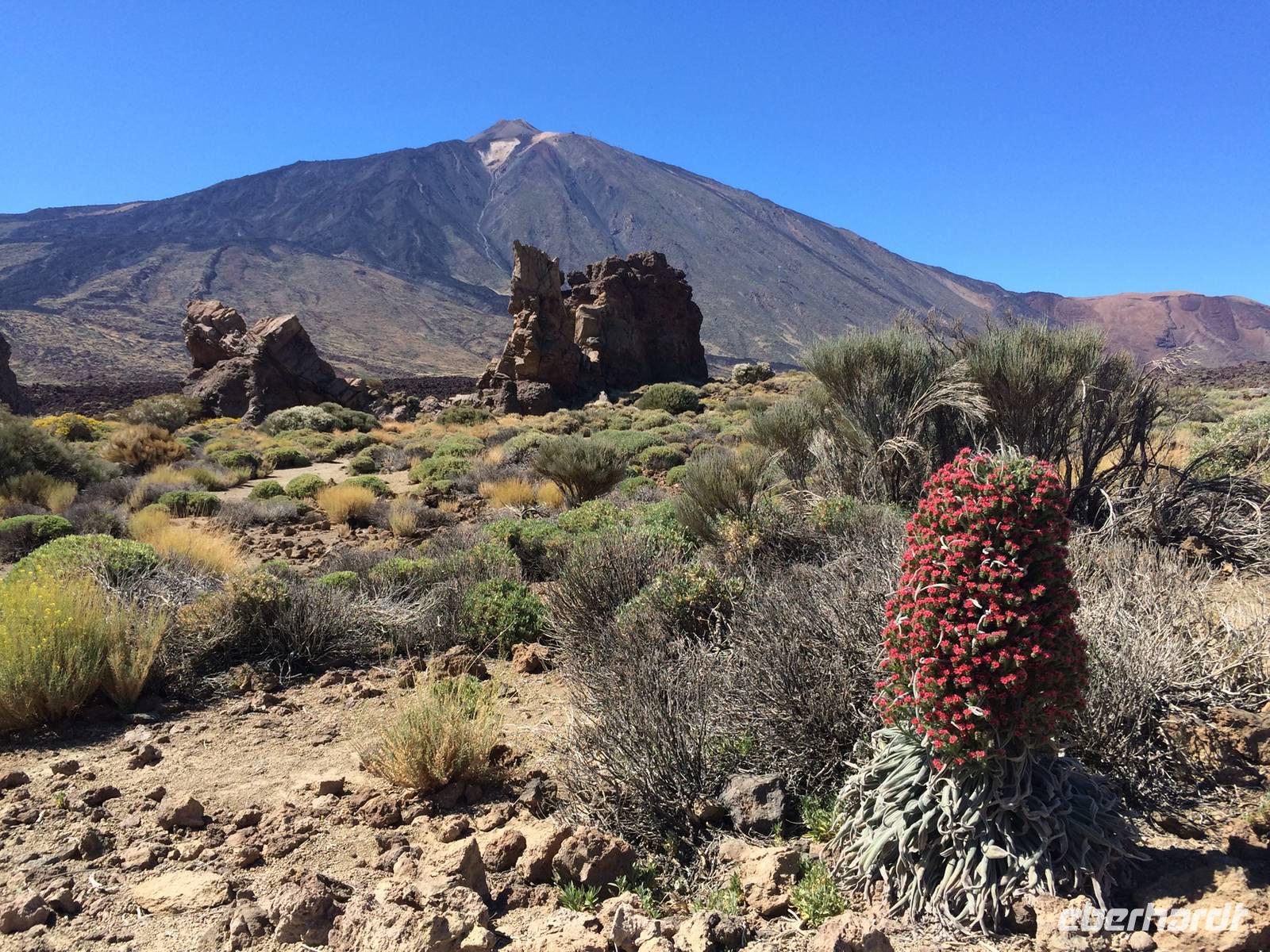 Petrus ist noch ein Mal gnädig und lässt die Sonne immer wieder durch die Wolkendecke hindurch. Eduardo und Pedro begrüßen uns am Nachmittag und wetten mit uns, dass es auf dem Teide definitiv sonnig sein wird. Und wie könnte es auch anders sein. Wir fahren zum dritten Mal und ebenfalls eine neue Route über Santiago del Teide in den Teide-Nationalpark. Von anderen Seiten und Perspektiven bewundern wir die Schönheit des Teides und seine Umgebung mit Kiefern bewachsenen Hängen. Bei einem kleinen Spaziergang durch die Mondlandschaft erhalten wir einen fantastischen Einblick über die Geschichte des seit 1954 bestehenden Nationalparkes. Mit ca. 3 Millionen Besucher im Jahr ist er der meist besuchte Park der Insel. Der Name "El Teide" stammt von den Ureinwohnern Guanchen, die den Berg "Echeyde" nannten (zu Deutsch Hölle oder Dämon). Die Legende besagt, dass der Dämon sie für die schlechten Taten der Menschen mit Vulkanausbrüchen bestrafte.