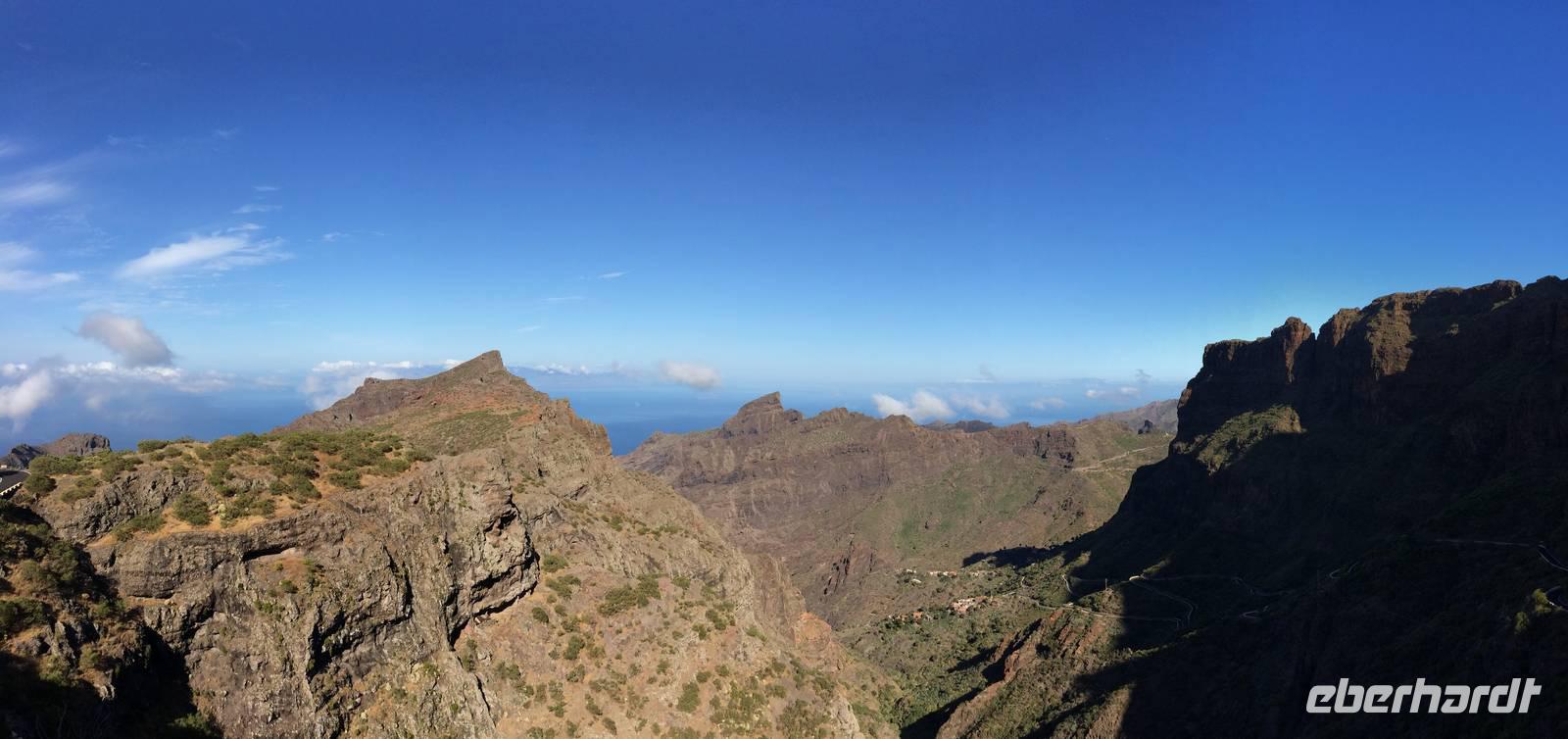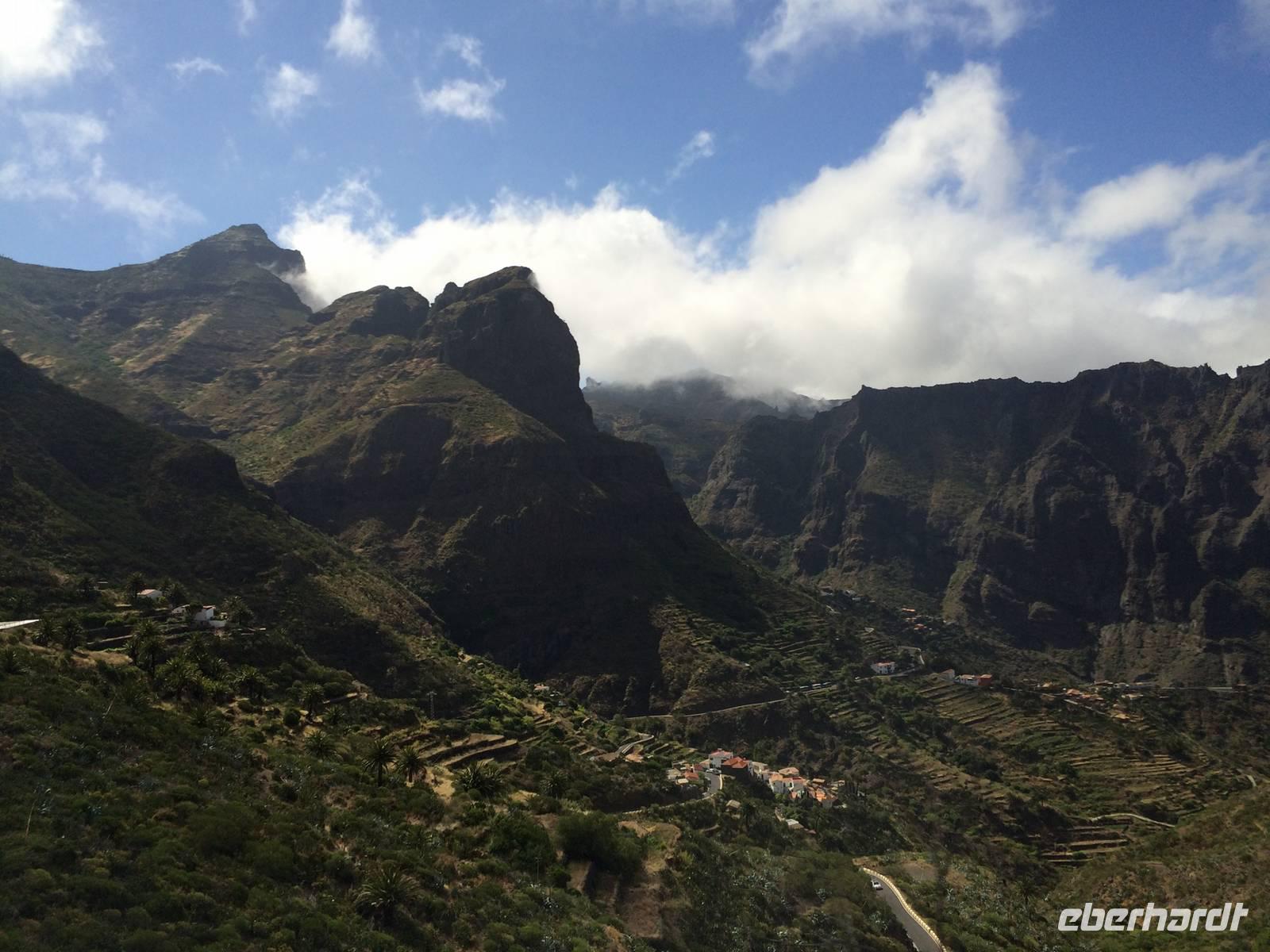 Ein aufregender Tag steht uns bevor. Unser Weg soll uns heute entlang der Westküste in die Berge bringen. Eine serpentinenreiche Straße windet sich durch das Teno-Gebirge. Manuel bringt uns vorsichtig und bequem bis zu den Gipfeln. Wundervoll erstreckt sich vor unseren Füßen die Masca-Schlucht. Die Ruhe, die Gebirgsformationen mit den sichtbaren Lavawegen, das Tiefblaue Meer, das unter dem Morgenlicht schimmert... - hach, so könnte jeder Morgen beginnen.