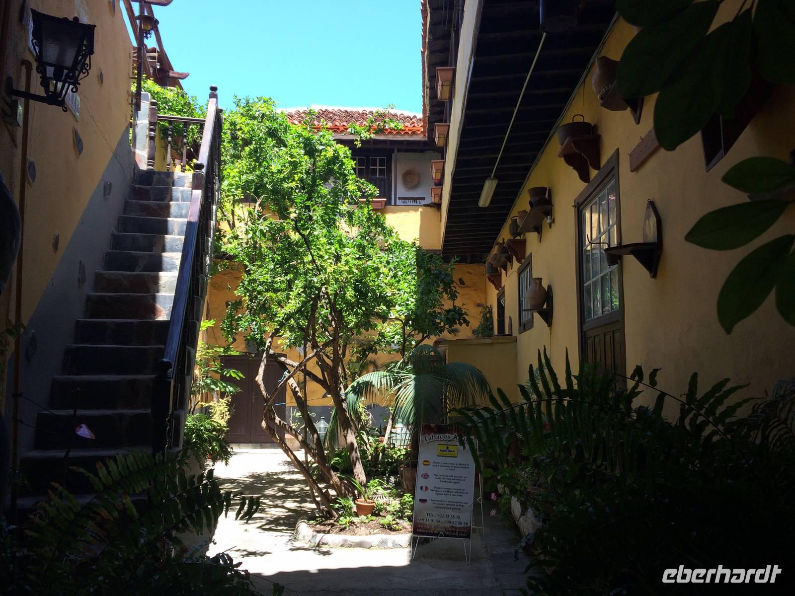 Wieder geht es bergauf zum Aussichtspunkt von Garachico. Hier genießen wir die Vogelperspektive auf dieses Kleinod bei einem schmackhaften Baraquito.