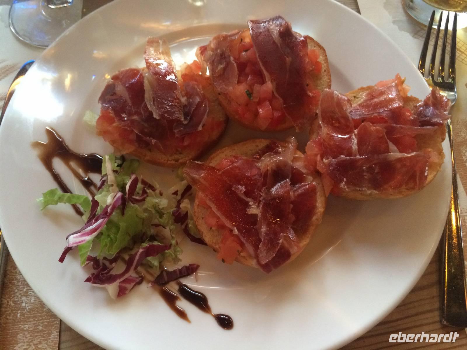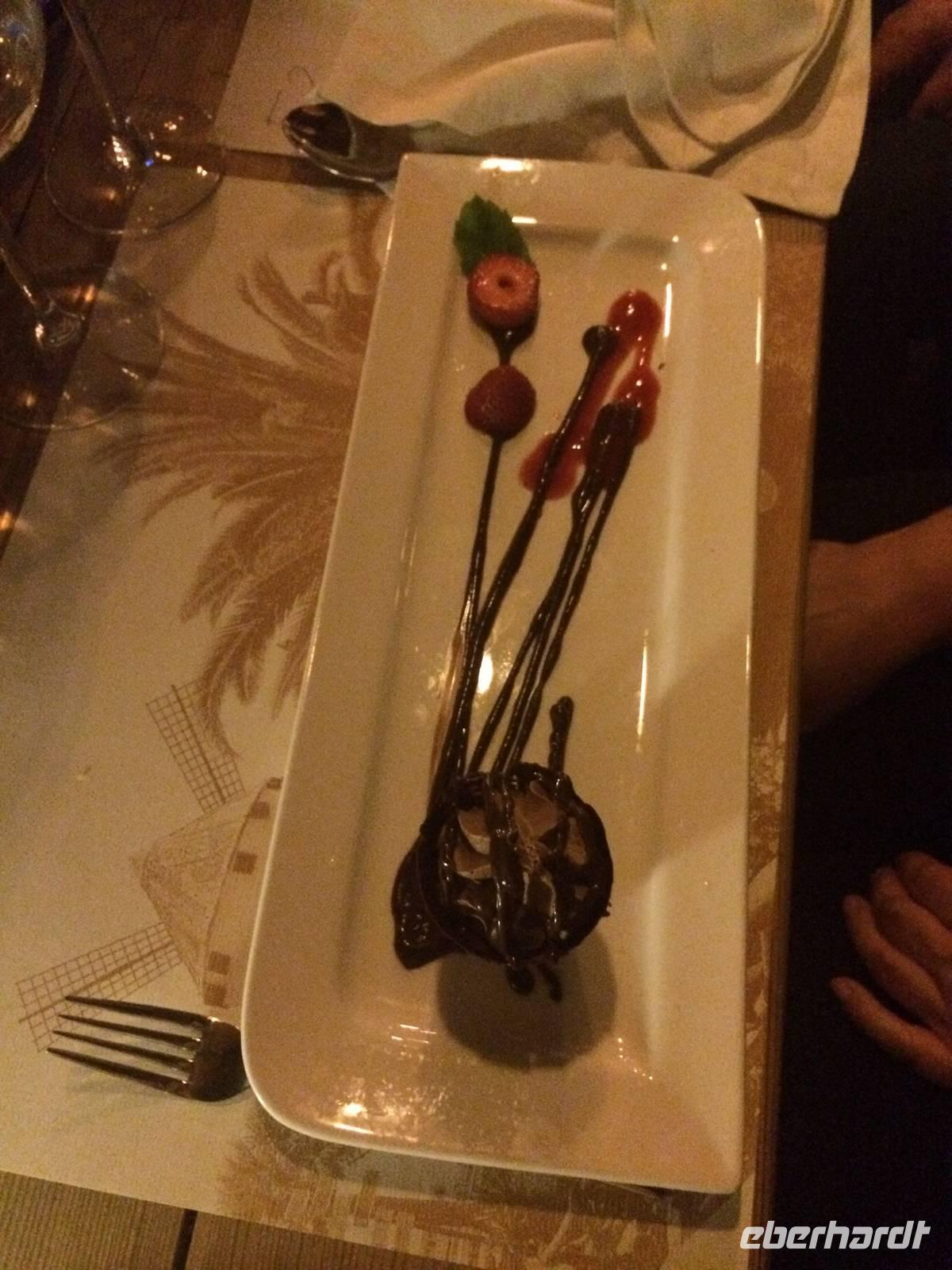 Wir bekommen gar nicht genug stoßen bei einem Glas Cava (spanischer Champagner) auf die gelungene Reise ein. Mit dem Wow geht es weiter. Beim heutigen Dinner schlemmen wir fein herausgeputzt und lassen den Abend genüsslich ausklingen. Yummiee...