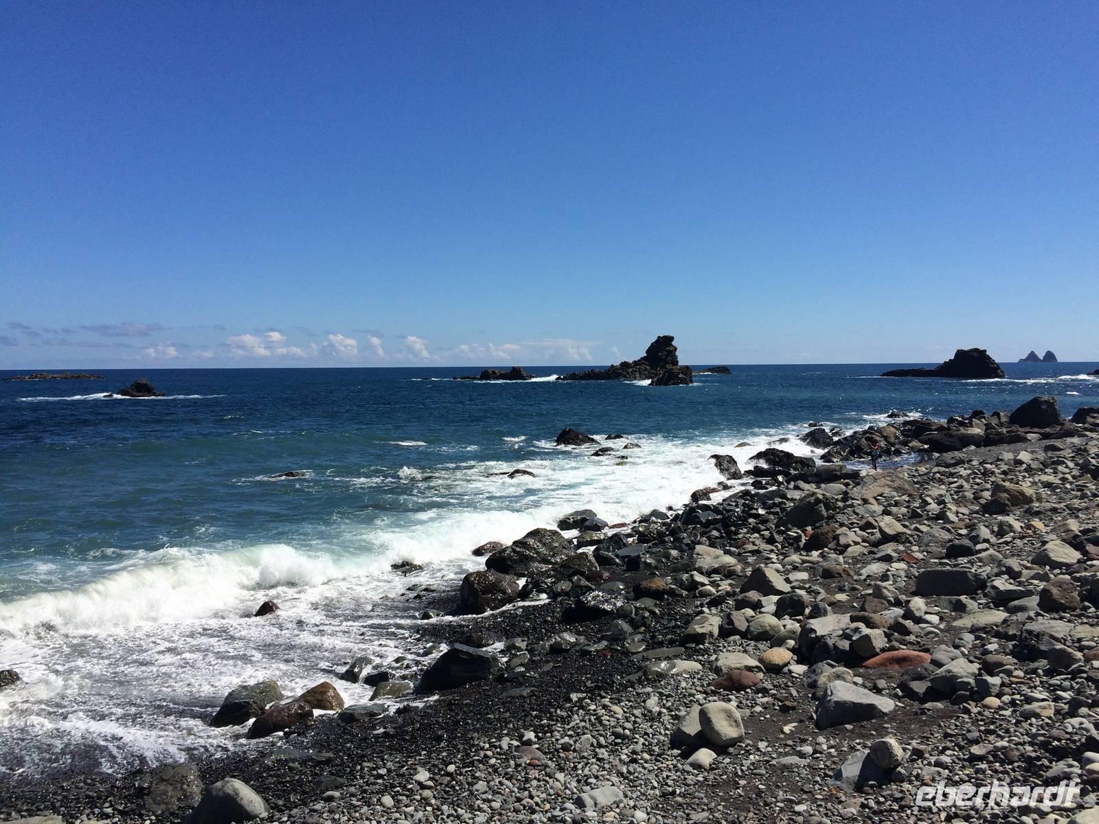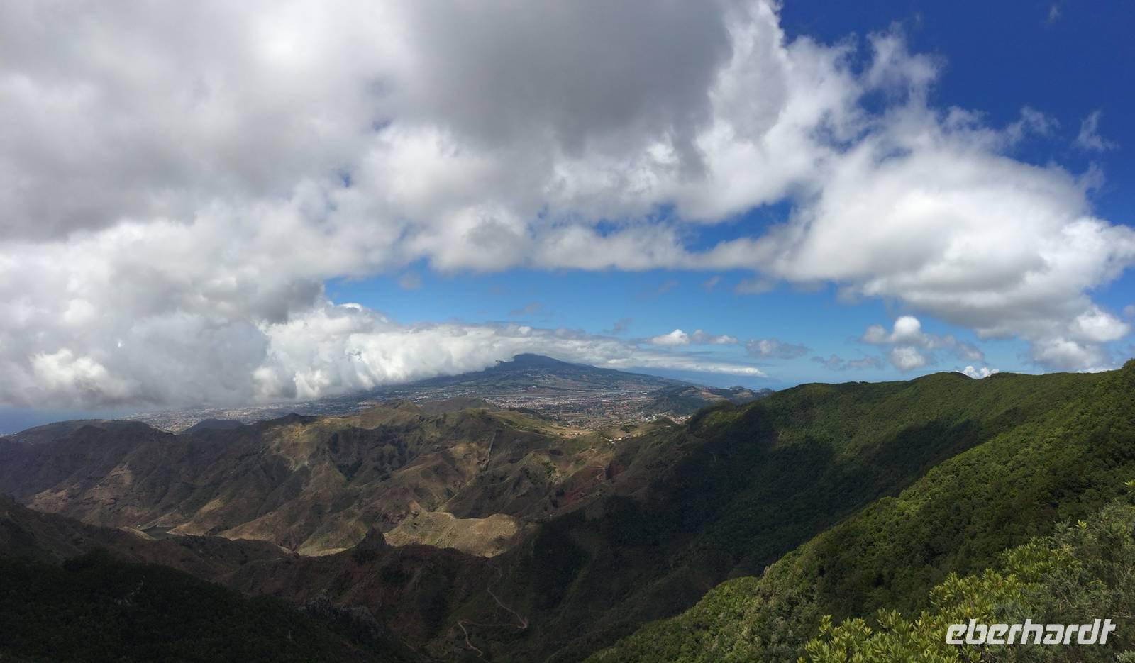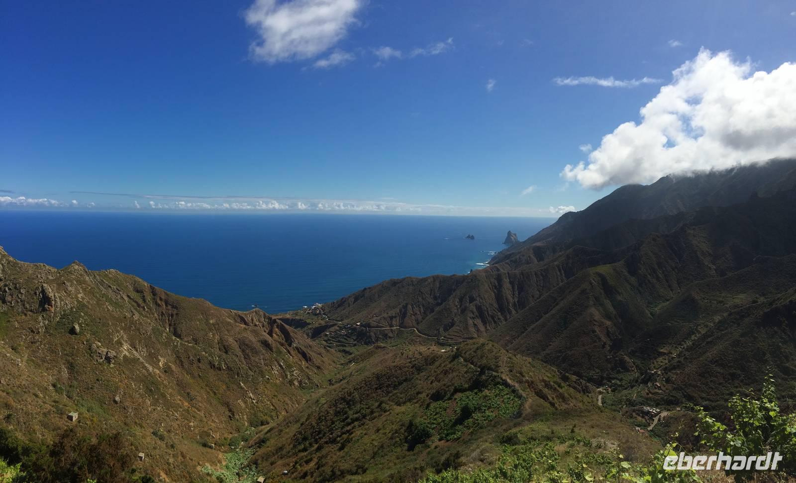 Die Vorfreude auf einen weiteren Tag in die Natur lässt mit einem zufriedenen Lächeln auf den Lippen beginnen. Santiago begrüßt uns am Hotel, unser neuer Chauffeur für heute. Dieses Mal erkunden wir die östliche Spitze des Nordens. Auch er bringt uns auf dem spannenden serpentinenreichen Weg durch die dichte Vegetation in die unvergleichlich schöne Landschaft aus steilen Erhebungen des Anaga-Gebirges. An manchen Punkten können wir deutlich die zwei Klimawelten sehen - der karge, graue Süden steht dem grünen Norden gegenüber. Eduardo erklärt uns wie sich die Fall- und Passatwinde auf die Vegetation auswirken. Die Nebelschwaden ziehen über die kargen Gebiete weg und fallen wie ein Vorhang auf der anderen Seite des Kammes hinunter und versorgen dort die Pflanzen mit Wasser.