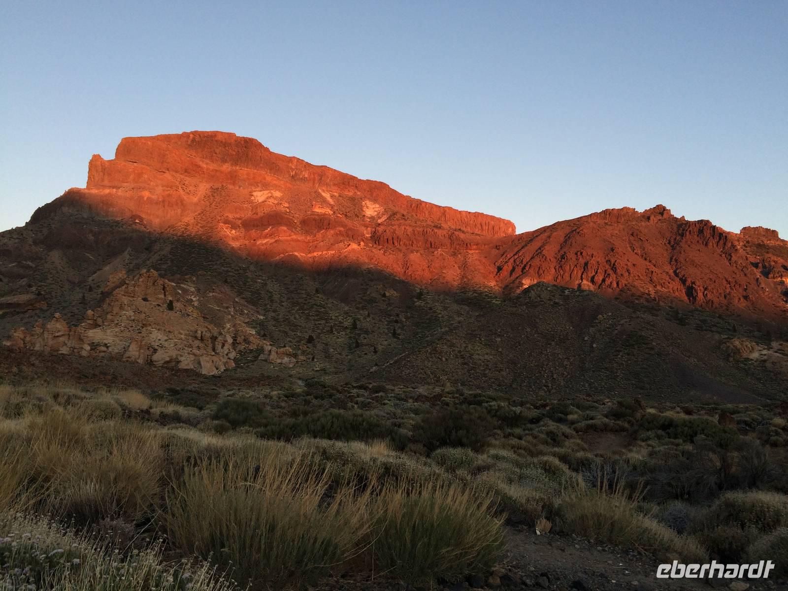 Wie die Sonne im Wolkenmeer sinkt, können wir leider nicht beobachten, dafür stehen die Wolken heute Abend zu hoch. Also warten wir am Parador auf die Sonnenstrahlen der untergehenden Sonne. Dann beginnt ein einzigartiges Schauspiel, wenn die Berge langsam in goldenes Licht getaucht werden. Nach diesem Spektakel erleben wir ein Nächstes, fast noch Schöneres. Sobald die Dunkelheit einbricht, eröffnet sich ein traumhaft schöner Sternenhimmel. Wir haben alle in unserem Leben noch nie so viele Sterne bewundern dürfen. Sogar die Milchstraße ist zu sehen. *schwärm*