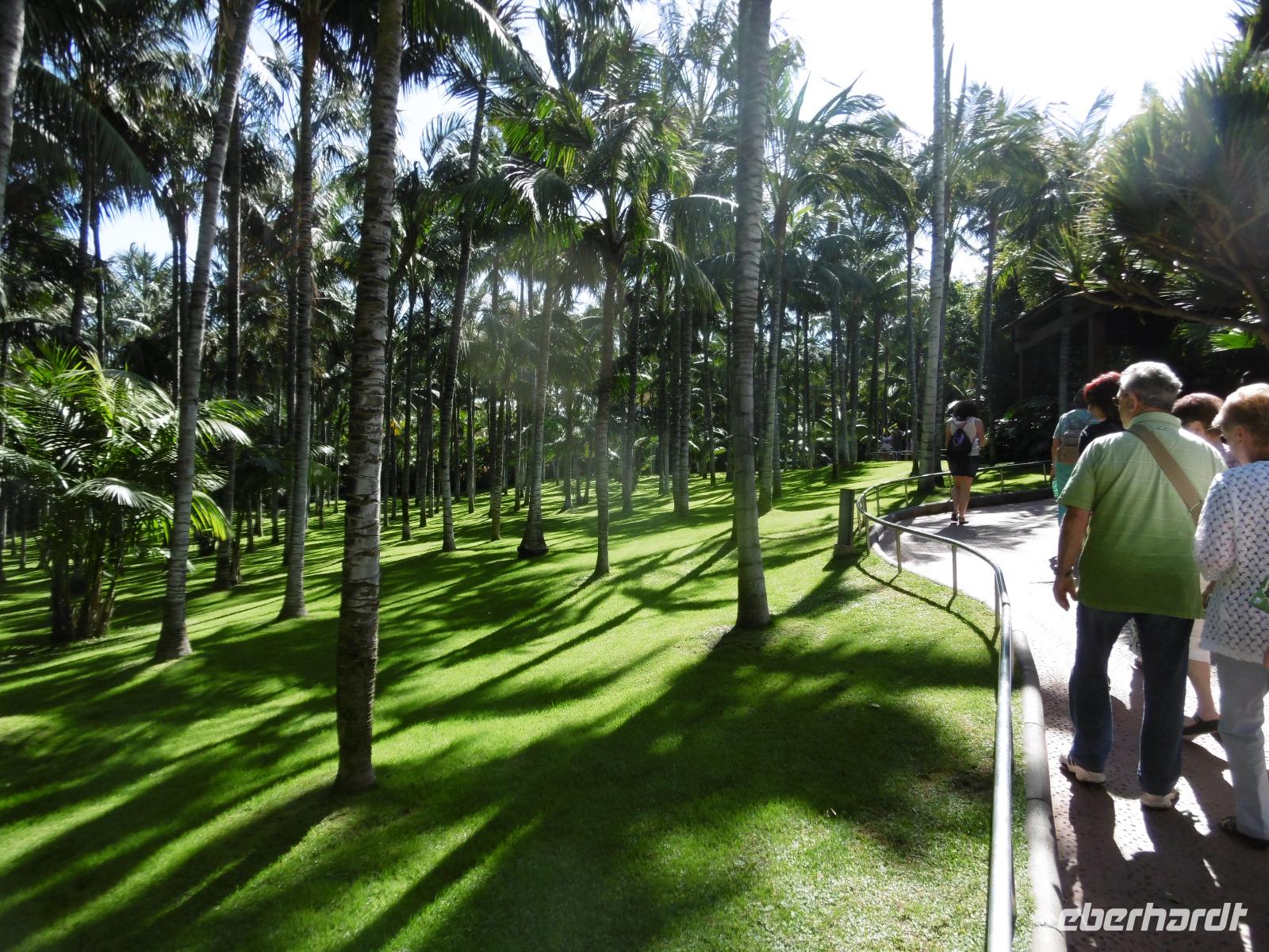 Wir fahren am Morgen ca. zwei Stunden nach Puerto und bekommen dabei einen guten Eindruck vom Umschwung der Vegetation an der Wetterscheide. Hier im Norden ist alles satt grün. Nach kurzen Anstehen (heute ist Tag der Kanaren und besonders viel los) begeben wir uns zunächst gemeinsam zur Orca Show am anderen Ende des Parkes. Auf dem Weg dahin sehen wir einen Teich mit riesigen roten Fischen, Gorillas, einen drolligen Kaiserschnurbarttamarin, Ameisenbären, bunte Papageien und vieles mehr. Das Warten in der Orcaarena auf den Beginn der Show wird nicht langweilig - Orcas kreisen im Becken herum und lassen ab und an ein Köpfchen oder eine Schwanzflosse blicken und das Kamerateam sorgt wir Spaß und gute Laune am großen Bildschirm. Dann geht es los - eine unvergessliche halbe Stunde mit springenden, singenden und Besucher-nass-spritzenden Orcas. Anschließend geht jeder seiner Wege, da es bei den vielen Besuchern unmöglich ist an der Gruppe zu bleiben. Weitere angebotene Shows sind die tolle Delfinshow, eine Robben- und Papageienshow, ein Pinguinarium (nur zum Teil offen, da Renovierung), ein Haifischtunnel, Riesenschildkröten, Krokodile und weiße Tiger. Nach einem erlebnisreichen Tag treffen wir uns vor dem Loro Park wieder und Überraschung: zum Tag der Kanaren zeigt eine Folkloregruppe typisch kanarische Tänze und Musik und verteilt kostenlos Kanarischen Ziegen-Gofio-Eintopf und Rotwein. Ein tolles Beispiel für die kanarische Gastfreundschaft, welche Ihre Traditionen und Feste gerne mit allen ihren Mitmenschen teilen. Nach dem Abendessen (heute natürlich mit typisch kanarischen Menü) zieht es einen Teil der Gruppe nochmals zu einem Spaziergang auf die Straßen bis nach Los Cristianos und am Meer entlang zurück nach Las Americas.