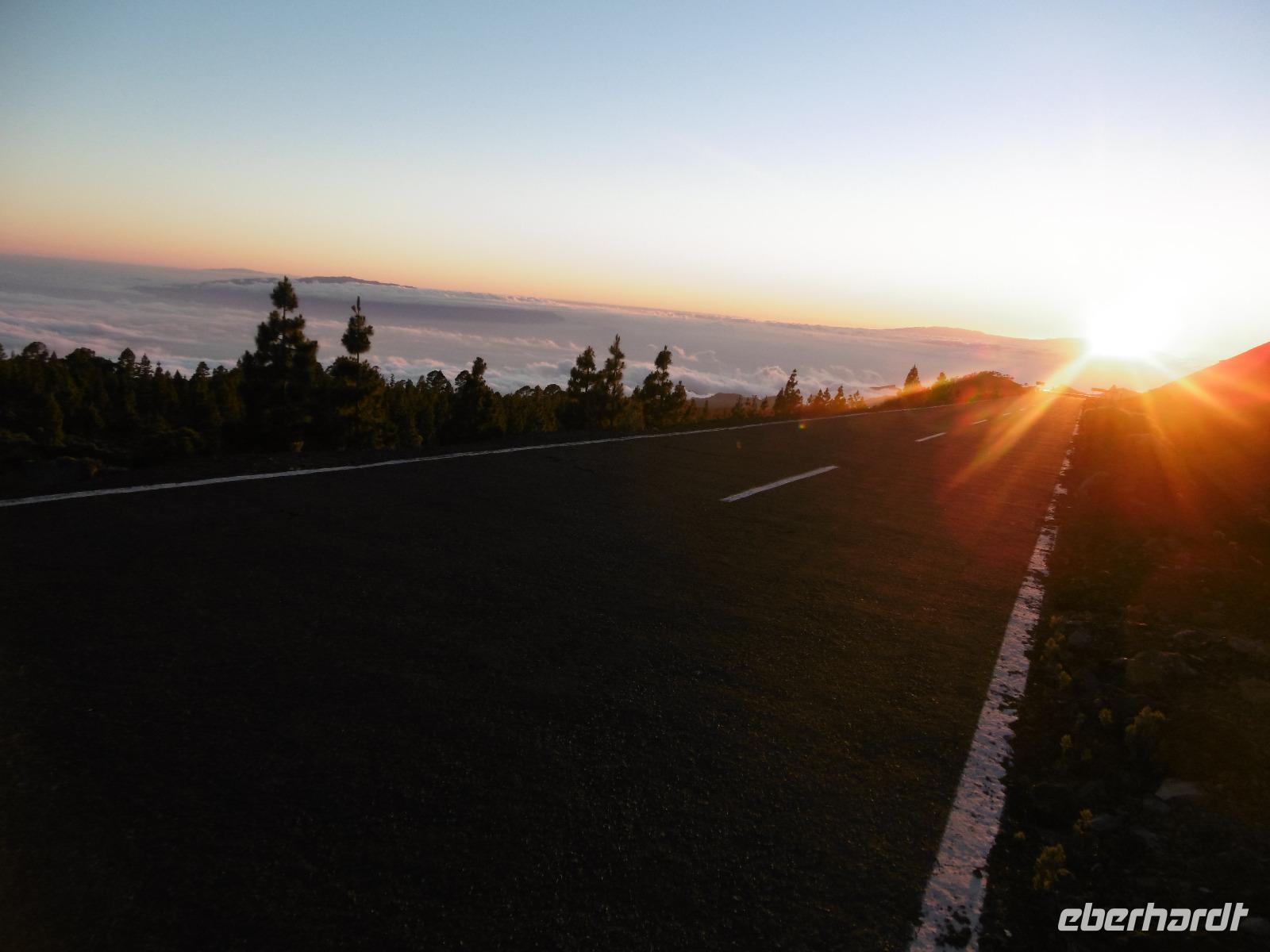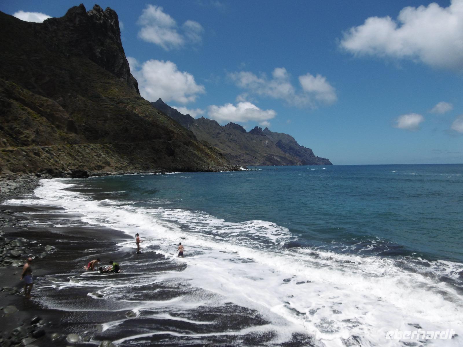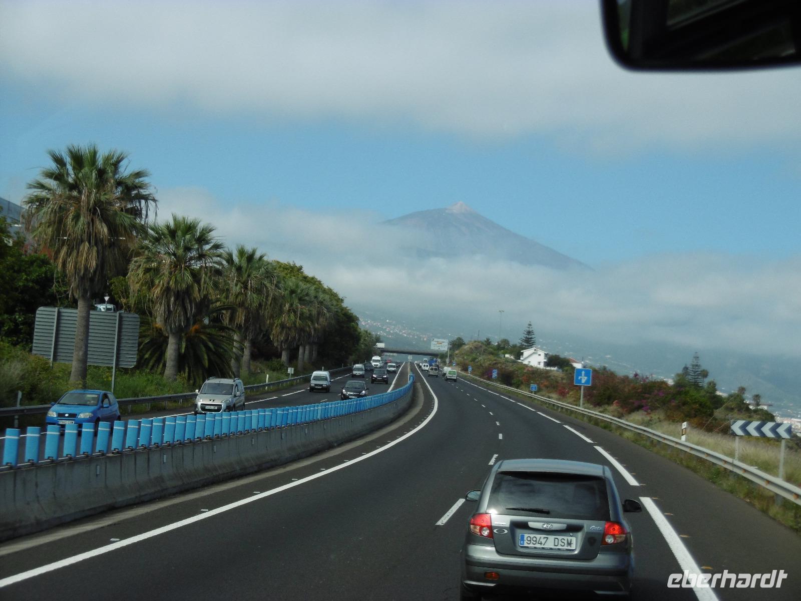 Per Bustransfer fahren wir zum Flughafen Berlin-Tegel, wo wir früh am Morgen gen Teneriffa starten. Bei der Air Berlin werden wir bereits etwas auf die spanische Pünktlichkeit und Gelassenheit eingestellt. ;) Bei Anflug auf Teneriffa begrüßt uns schon ein aus den Wolken ragender Teide. Hier angekommen fahren wir in den sonnigen Urlaubsort Playa de las Americas. Wer schon in Teneriffa angekommen ist, kennt den ersten weniger positiven Eindruck bei der Fahrt vom Flughafen in den Süden. Die Strecke besteht nur aus Wüste und Gestein. Doch schon bald werden wir die Insel in all ihrer Vielfalt entdecken. Da wir sehr zeitig im Hotel ankommen, begeben wir uns zunächst auf einen kurzen orientierenden Spaziergang in die nähere Umgebungung und sehen dabei den nächstgelegenen Strand und die Surfer-Steinküste. Nach dem Check In im Hotel heißt es erstmal Mittagspause - wir alle sind sehr müde, da die ersten von uns bereits um 23 Uhr des Vortages zu Hause abgeholt wurden. Am Nachmittag landen auch die Frankfurter Gäste und unsere Reisegruppe ist komplett. Nach dem reichhaltigen Abendessen im Hotel begeben sich einige noch zum Strand um den Sonnenuntergang zu sehen. Die Sonne geht neben der Nachbarinsel La Gomera unter und färbt manchmal den Teide sagenhaft rot. Bei guten Wetter sind alle drei Nachbarinseln (El Hierro, La Gomera und La Palma) zu sehen.