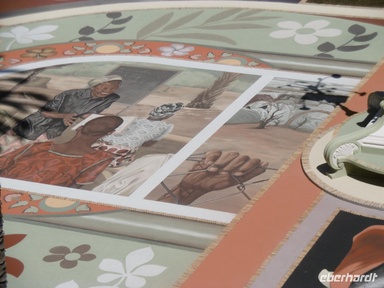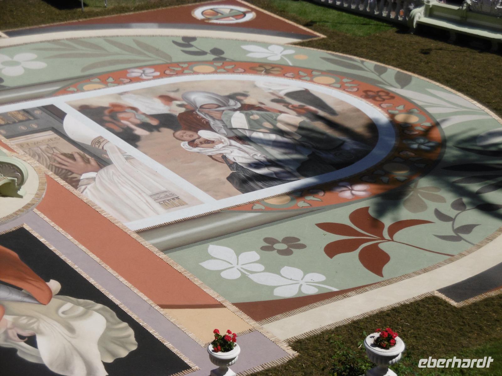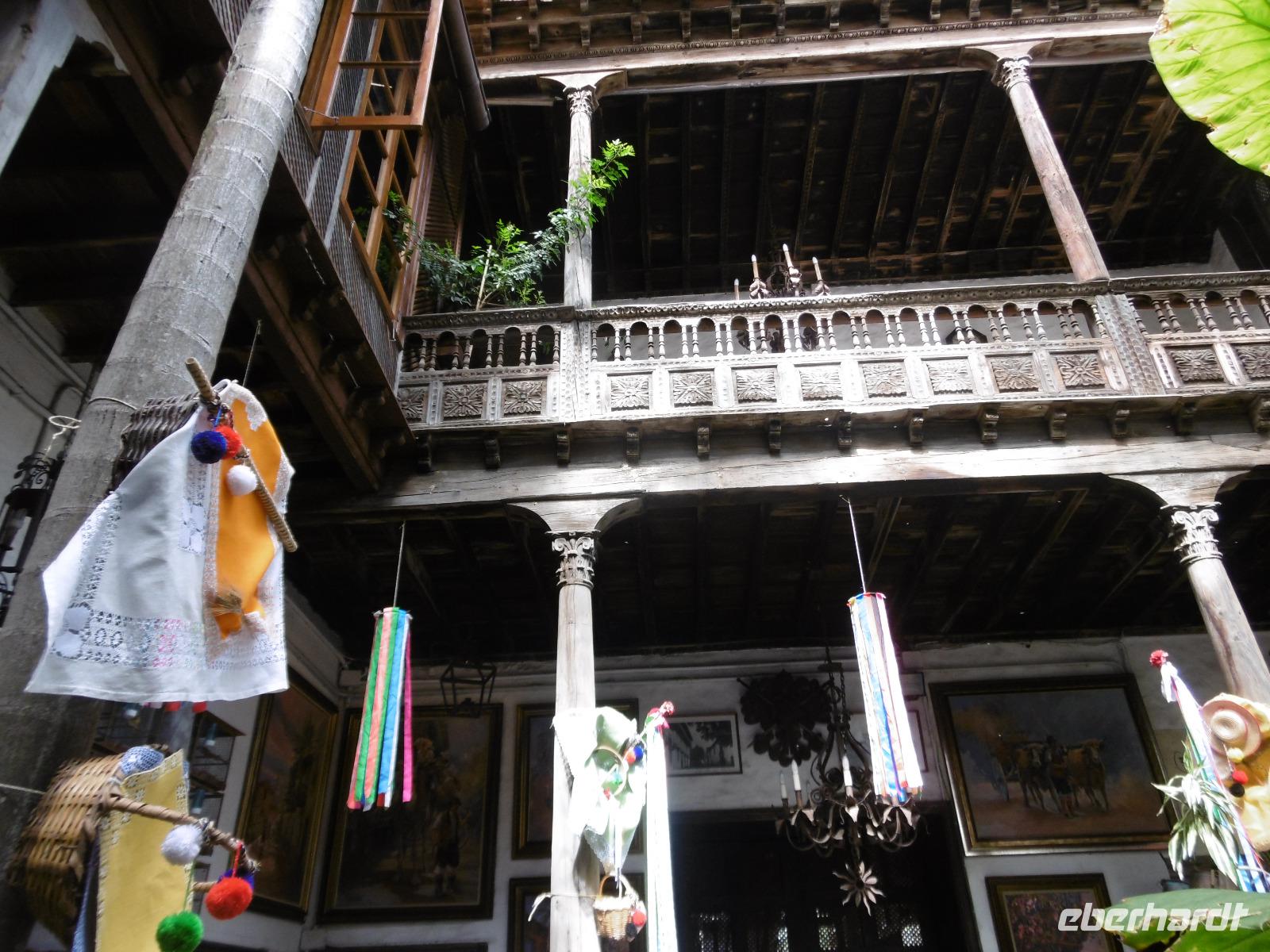 Am heutigen Bergfesttage werden wir den Höhepunkt unserer Reise erleben - wir dürfen heute der Entstehung der traditionellen Sand- und Blumenteppiche beiwohnen, die jährlich am Donnerstag nach Fronleichnam für die Fiesta de Corpus Christi vorbereitet werden. Auf dem Weg in den Norden sehen wir uns einen Film ab, wo wir alles über die Entstehung dieser seit Mitte des 19. Jahrhundert bestehenden Tradition erfahren. Anschließend erreichen wir den Ort und spazieren gemächlich hinter der Absperrung, welche die auswändige Arbeit der Teppichkünstler schützt, die steilen Dorfstraßen herauf. Hier einzelnen Gruppen, welche hier auch etwas um den schönsten Teppich "buhlen", sind meist Vereine, Familien, Freunde, welche zum Teil sogar extra aus Festlandspanien anreisen. Glockenspiel und Kirchenmusik schalt durch die Straßen und zaubert dadurch eine festliche Stimmung. Gemeinsam spazieren wir bis zum Balkonhaus von Orotava und sehen hier einige Prachtexemplare des für die Kanaren typischen geschnitzten Holzbalkones. Sogar das Vogelhäuschen hat hier seinen eigenen Holzbalkon. ;) Ebenso werden hier handgestickte Tischdecken ausgestellt und verkauft. Weiter geht es zum Rathaus von La Orotava, wo wir uns das Meisterwerk anschauen: einen riesigen Teppich aus Vulkanstaub, welcher wochenlang kunstvoll hergestellt wurde. Dieser besteht aus ungefärbten Vulkanstaub, der mühsam am Teide gesammelt und dann zu den vielen verschiedenen Farbtönen gemischt wurde. Ein unvergesslicher Anblick! Diesjähriges Thema des Teppichs ist die aktuelle Flüchtlingskrise und wir hier in den einzelnen "Fenstern" des Teppichs dargestellt. An den Blumenteppichen wird immer noch eifrig gearbeitet, frische Blumen werden angebracht. Heute Abend um 18.00 Uhr wird Orotava voller Menschen sein, welche der festlichen Prozession über die Teppiche beiwohnen werden. Gegen Mittag verabschieden wir uns von dem bunten Treiben und fahren in Richtung Tegueste in der Nähe von La Laguna zum Weingut Valle Molina. Hier bekommen wir bei einem Weinfeld den Anbau und die Produktion von Wein erklärt und verkosten diesen anschließend. Ebenso lernen wir, wie man die typische knoblauchhaltige Mojo-Soße herstellt und kosten zum Wein kleine Häppchen mit grüner und roter Mojosoße, Almogrote, Ziegenkäse und Palmenhonig. Gestärkt treten wir die Rückfahrt in Richtung Süden über den Esperanza Kiefernwald an. Hier bieten sich uns traumhafte Ausblicke auf das unter uns liegende blaue Meer, welches durch den Kieferwald hindurchschimmert. Die Straßen werden von gelben Waldblumen geziert. Zum Abendessen begeben wir uns heute in ein Restaurant am anderen Ende von Las Americas. Im Molino Blanco genießen wir leckere kanarische Spezialitäten und werden dabei vom einem Sänger begleitet.
