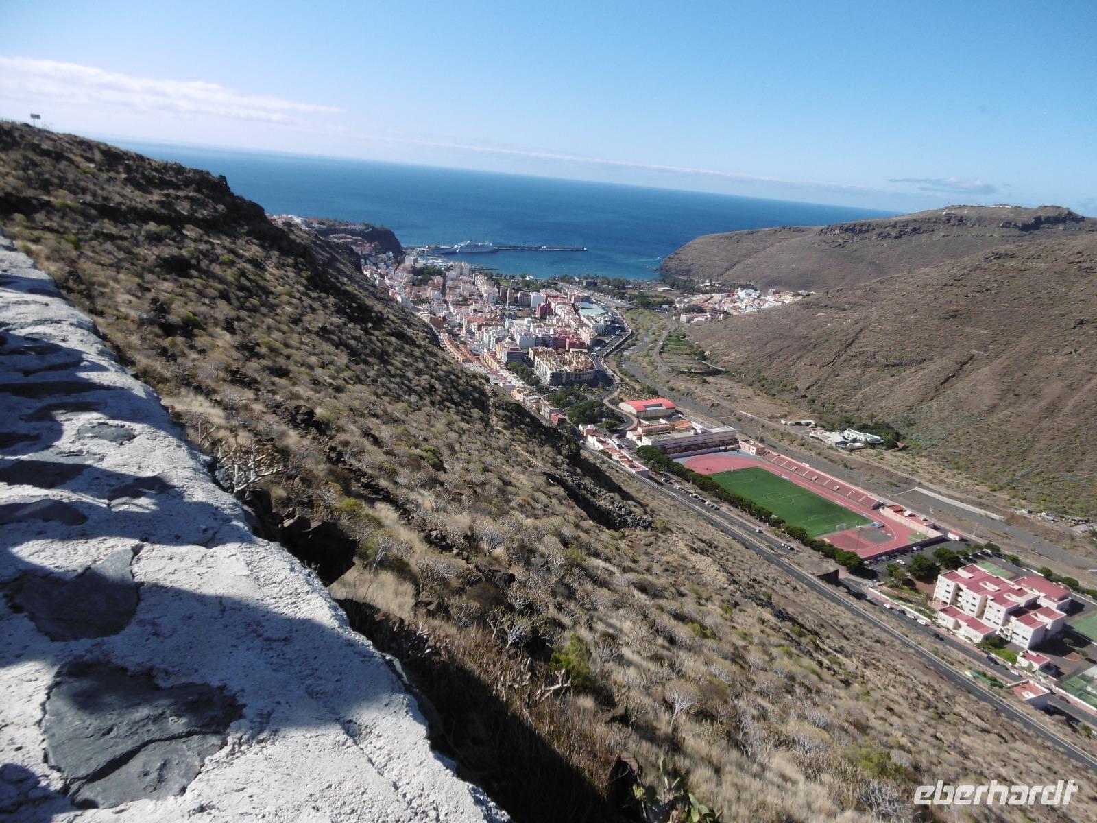 Der heutige Tag ist fakultativ. Einige von uns lassen es sich beim Sonnenschein in Las Americas gutgehen und erkunden die nähere Umgebung zu Fuß. Ein Großteil der Gruppe versammelt sich früh am Morgen am Nachbarhotel und wir von Jeeps abgeholt. Heute geht es nämlich hinüber zur Nachbarinsel La Gomera. Diese kleine Wanderung ist aufgrund seiner sattgrünen Wälder und Palmentäler besonders bei Wanderern beliebt. Der Fred Olsen Fähre geht es von Los Cristianos aus hinaus aufs Meer. Knapp eine Stunde dauert die ruhige Überfahrt, wobei einige von uns sogar Delfine sichten. Von der Fähre aus starten wir direkt mit den Jeeps und schlängeln uns von der Hauptstadt San Sebastian aus hinauf in die Bergkette. Bei unserem ersten Fotostopp haben wir einen tollen Blick hinunter ins Tal auf die uns zu Füßen liegende Stadt San Sebastian und die zwei Fähren Fred Olsen und Naviera Armas. Unser heutiger Reiseleiter Carlos gibt uns einen ersten Überblick zur Insel. Den Mittelpunkt und die Spitze der Insel bildet der Nationalpark Garajonay, welcher unser heutiges Ziel darstellt. Unsere Fahrer führen uns sicher, wenn auch ziemlich rasant, über die Insel. Im Hermigua Tal halten wir an einer Aloe Vera Plantage. Hier erfahren wir mir über die Herstellung von Kosmetik aus dem heilenden Aloe Vera Saft. Nach dem Mittagessen halten wir an einer Bananenplantage und unternehmen einen kleinen Spaziergang. Schon erreichen wir den Rastplatz La Laguna Grande. Dieser befindet sich in Mitte des Nationalparks Garajonay. Beim heutigen Sonnenschein wirkt der Nebelwald ganz friedlich. Normalerweise hängt er in Nebelschwaden und wird umgeben von einem recht geisterhaftigen Flair. Carlos erzählt uns hier oben von der Legende von Gara und Jonay, zweier Liebenden, die sich im Nationalpark versteckt haben und am Ende tragisch gemeinsam gestorben sind. Wir haben Zeit um ein Stück in den Wald hinein zu gehen und haben am Ende des Pfades an einem Aussichtspunkt Blick auf die Nachbarinsel El Hierro. Dann geht es schon wieder ins Tal hinab zur Hauptstadt San Sebastian, wo wir kurz vor Abreise noch Freizeit und Gelegenheit zu einem Kaffee oder frisch gepressten Orangen-Papaya Saft haben. Die Schnellfähre bringt uns bei windstillen Wetter wieder nach in den Urlaubsort Adeje, wo wir den langen und ereignisreichen Tag beim Abendessen im Hotel ausklingen lassen.