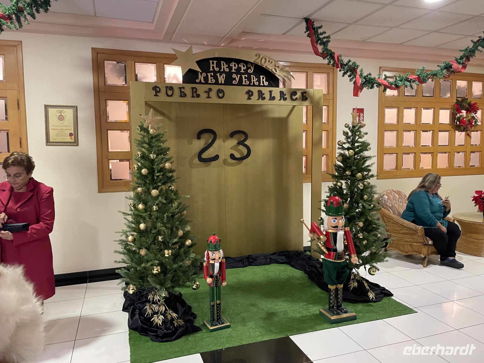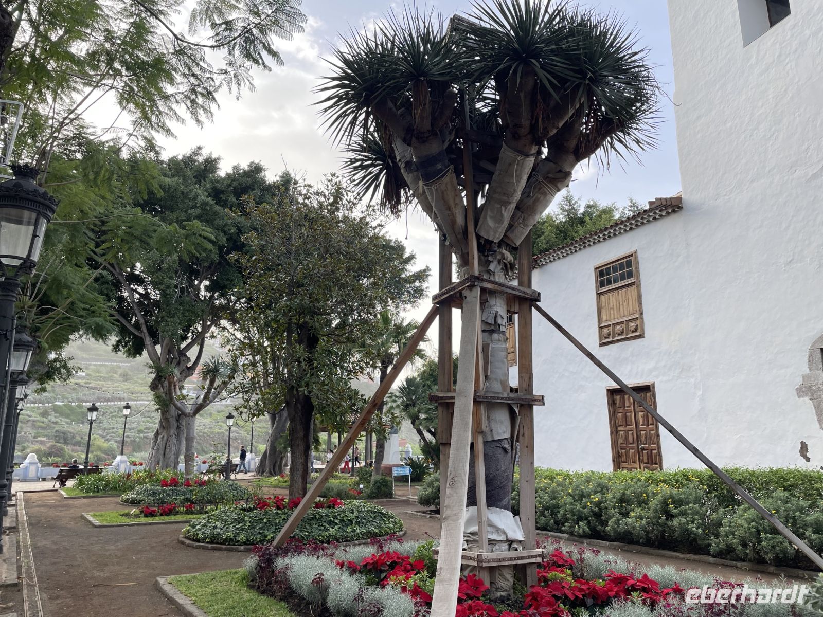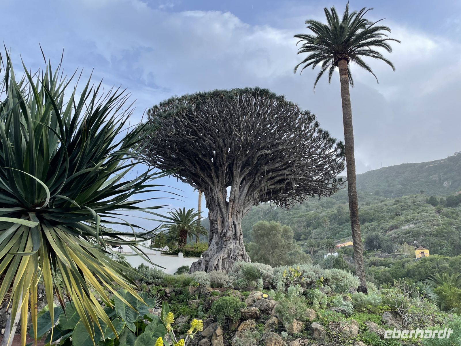 Heute können wir etwas länger schlafen: um 9:30 Uhr kommen drei Taxen und bringen uns zum Botanischen Garten von La Orotava. Trotz des Namens befindet er sich in Puerto de la Cruz, denn unser Urlaubsort war früher "nur" der Hafen von La Orotava. Gegründet wurde der Garten vor fast 250 Jahren um Pflanzen, die aus den spanischen Kolonien stammen, an das Klima des spanischen Festlands zu gewöhnen. Das milde Klima auf Teneriffa sollte den Pflanzen bei der Akklimatisierung helfen - allerdings hat das nicht so geklappt, wie man es sich vorgestellt hat. Heute beherbergt er Pflanzen und Bäume, die besonders exotisch und in ihrem Wachstum einzigartig sind, oder deren Herkunft nicht einmal bekannt ist. Ein Spaziergang durch ein kleines Stück Dschungel, bevor wir uns um 11 Uhr zum Spaziergang ins Tal treffen. Einige gehen zum Lago Martianez, ein Meerwasser-Freibadkomplex mit mehreren Inseln, Gärten, Bars und Restaurants direkt am Atlantik. Heute, am letzten Tag des Jahres, haben wir echtes Badewetter: 23 Grad und Sonne satt. Manche unternehmen auch einen Spaziergang durch die Altstadt, denn die Gassen entlang des "Plaza del Charco" laden zum Bummeln, Verweilen, Einkaufen und Kaffeetrinken ein. Am Abend treffen wir uns wieder im Hotel, denn im Salon feiern wir den Jahreswechsel. Ein 6-Gang-Menü, bestehend aus der "Terrine des Meeres", Blumenkohl-Cremesuppe, Hummer Thermidor, Zitronen-Sorbet, Rinderfilet und Schokoladenkuchen hat uns die Zeit bis Mitternacht versüßt. Dann werden Partyhüte, Brillen und Tröten verteilt. Natürlich dürfen auch die Spanischen Glückstrauben nicht fehlen. Louisa hat uns die Entstehung des Brauches bereits erklärt, in einem Jahr hatten die Spanier eine üppige Traubenernte und man wusste nicht wohin mit dem Obst. Daher entstand die Idee an Silvester zwölf Trauben zu verspeisen, Eine pro Glockenschlag an Mitternacht, jede Traube ein Wunsch. Dann geht es nach draußen in die Hotelanlage zum Feuerwerk unter Palmen. Feliz ano 2023!