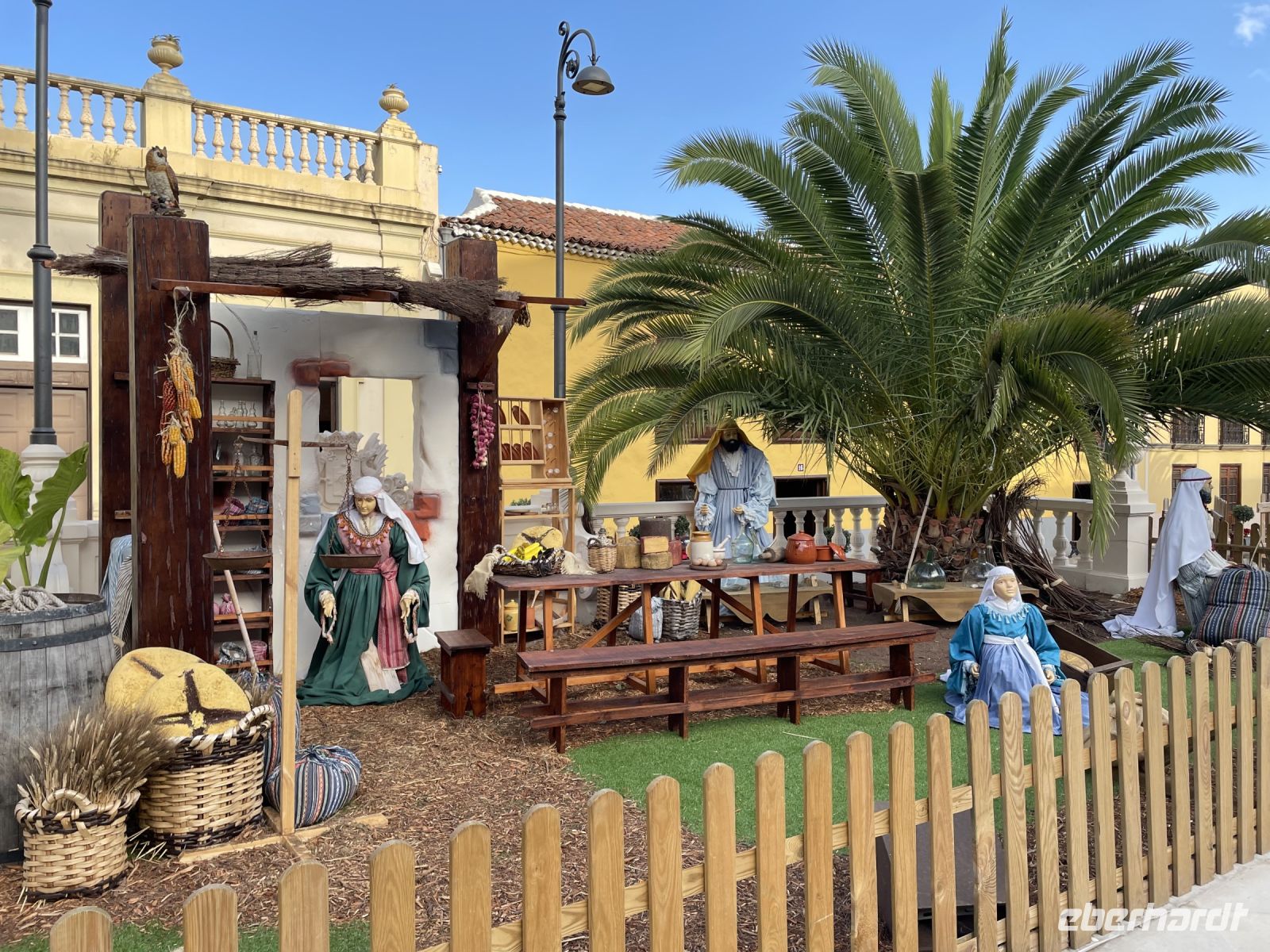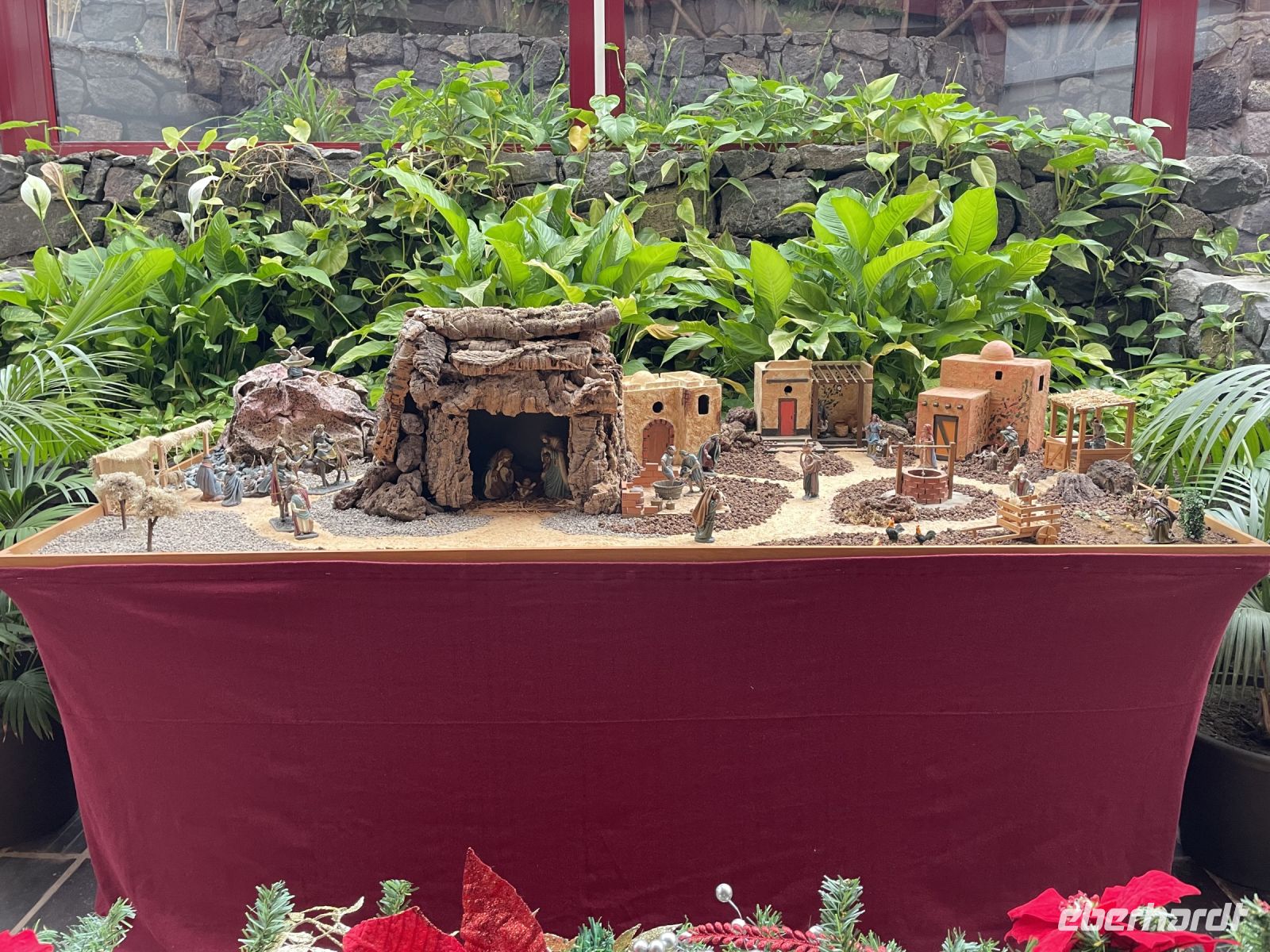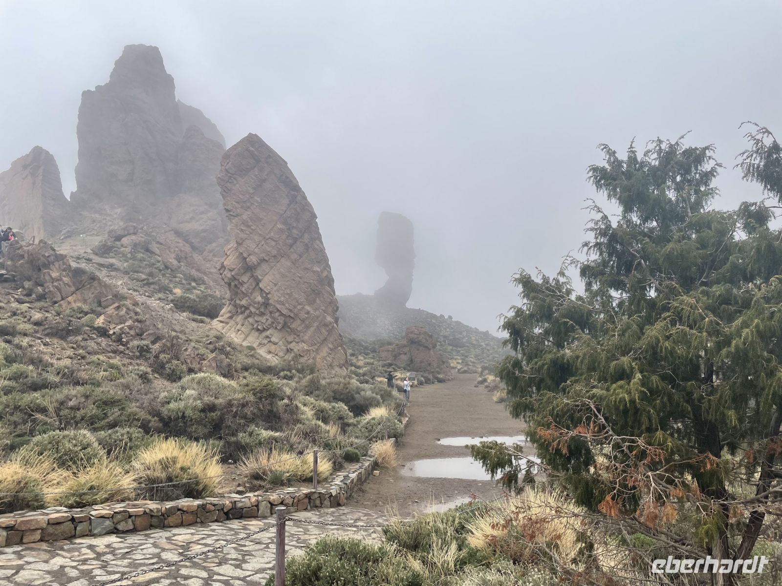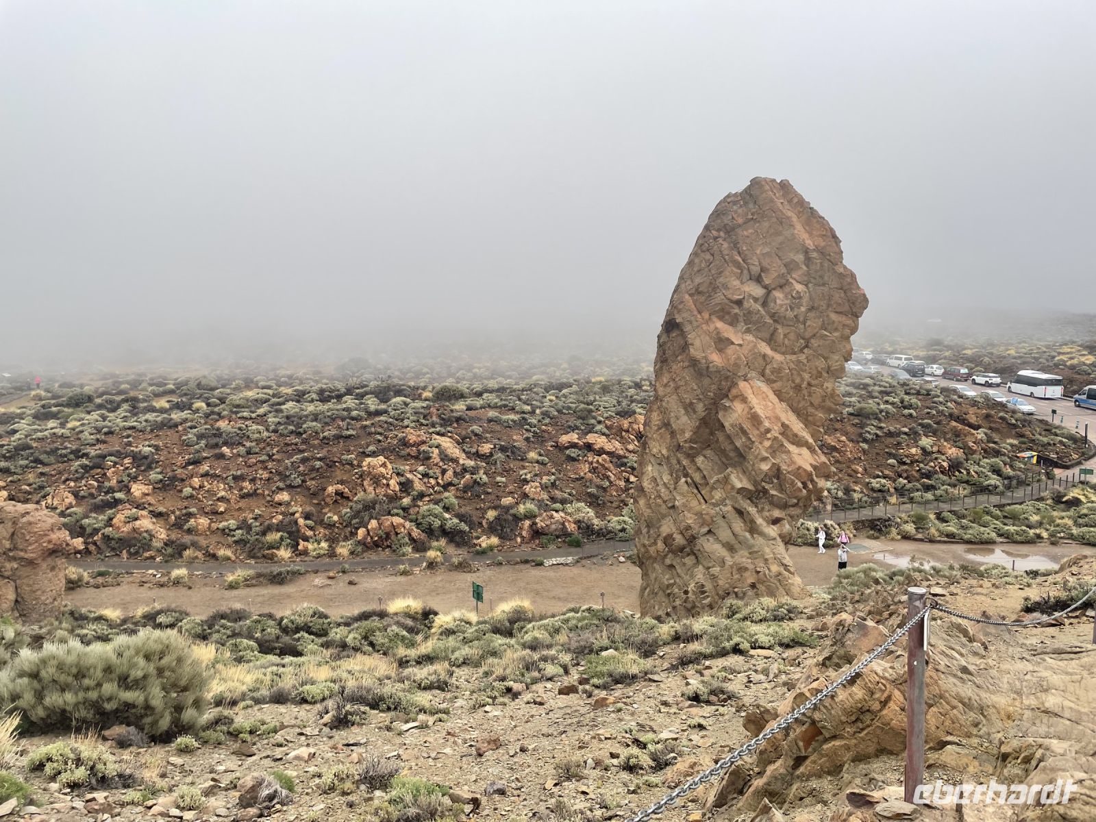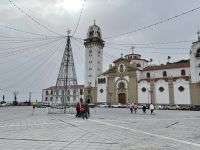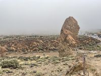 Es ist nur ein Katzensprung und schon sind wir in La Orotava. Wir spazieren durch den Ort bis zum Rathausplatz. An einem Tag pro Jahr wird hier ein gigantisches Sandgemälde errichtet, heute ist der Platz mit den traditionellen Krippen geschmückt. Eine schöner als die Andere! Weiter geht es zum Haus der Balkone. Besonders eindrucksvoll ist der typisch kanarische Innenhof mit seiner langen Balkonreihe. Im Inneren des Gebäudes sehen wir das historische Wohnzimmer und eine Stickerei. Vorbei an den Victoria-Gärten führt uns Louisa zur Kirche und dem ehemaligen Kloster von San Agustin. Auch hier finden wir wieder verschiedene Kirchen-Statuen. Louisa berichtet, jede Statue hat ihre eigenen christlichen Anhänger und einmal pro Jahr gibt es eine besondere Prozession, bei der die Statuen manchmal sogar durch die Stadt getragen werden. Die Statuen sind vom Ruß der Kerzen teilweise schon stark eingefärbt. Um sie zu renovieren wurden Experten aus Belgien eingeflogen, denn auf den Kanaren hat man Angst, die Statuen nicht zurück zu bekommen, wenn man sie aufs Festland schickt. Danach gehts wieder zum Kleinbus und wir fahren weit, weit bergauf. Während in La Orotava die Sonne scheint, bilden die Wolken einen Schleier über dem Teide, der uns die Sicht versperrt. Ein Imbiss in Portillo Alto, der letzten Ortschaft vor dem Gipfel, den sich die Nationalparkverwaltung gern aneignen würde, stärkt uns für den Nachmittag. Leider verkehrt die Seilbahn heute nicht - bei den dicken Wolken hätte sich eine Auffahrt ohnehin nicht gelohnt. Dafür fahren wir zum Finger Gottes. Auch dieser liegt in den Wolken, zeigt sich aber hin und wieder. Es ist kalt und regnerisch - daher gibts im Bus für alle einen Bananenlikör von der Insel - und schon wurde es wieder wärmer. Im Nationalparkzentrum erfahren wir bei einem kurzen Film mehr über den höchsten Berg Spaniens, dessen Flora und Fauna. Dann geht es wieder ins Tal, noch einen Halt an der "Felsenblume" eingelegt, dann sind wir schon wieder in Puerto de la Cruz und müssen uns von Louisa verabschieden, eine tolle Reiseleiterin der man gern zuhört.