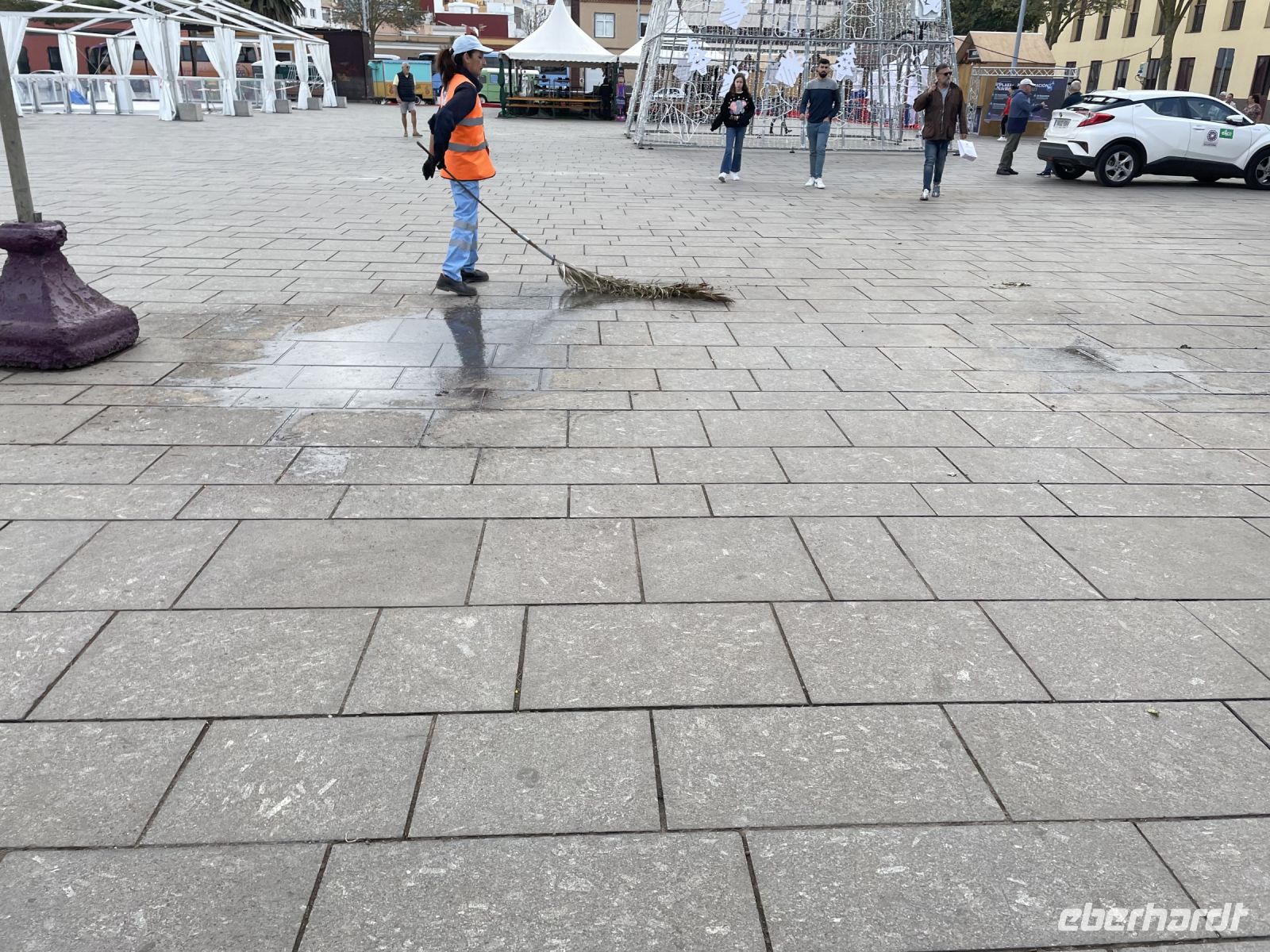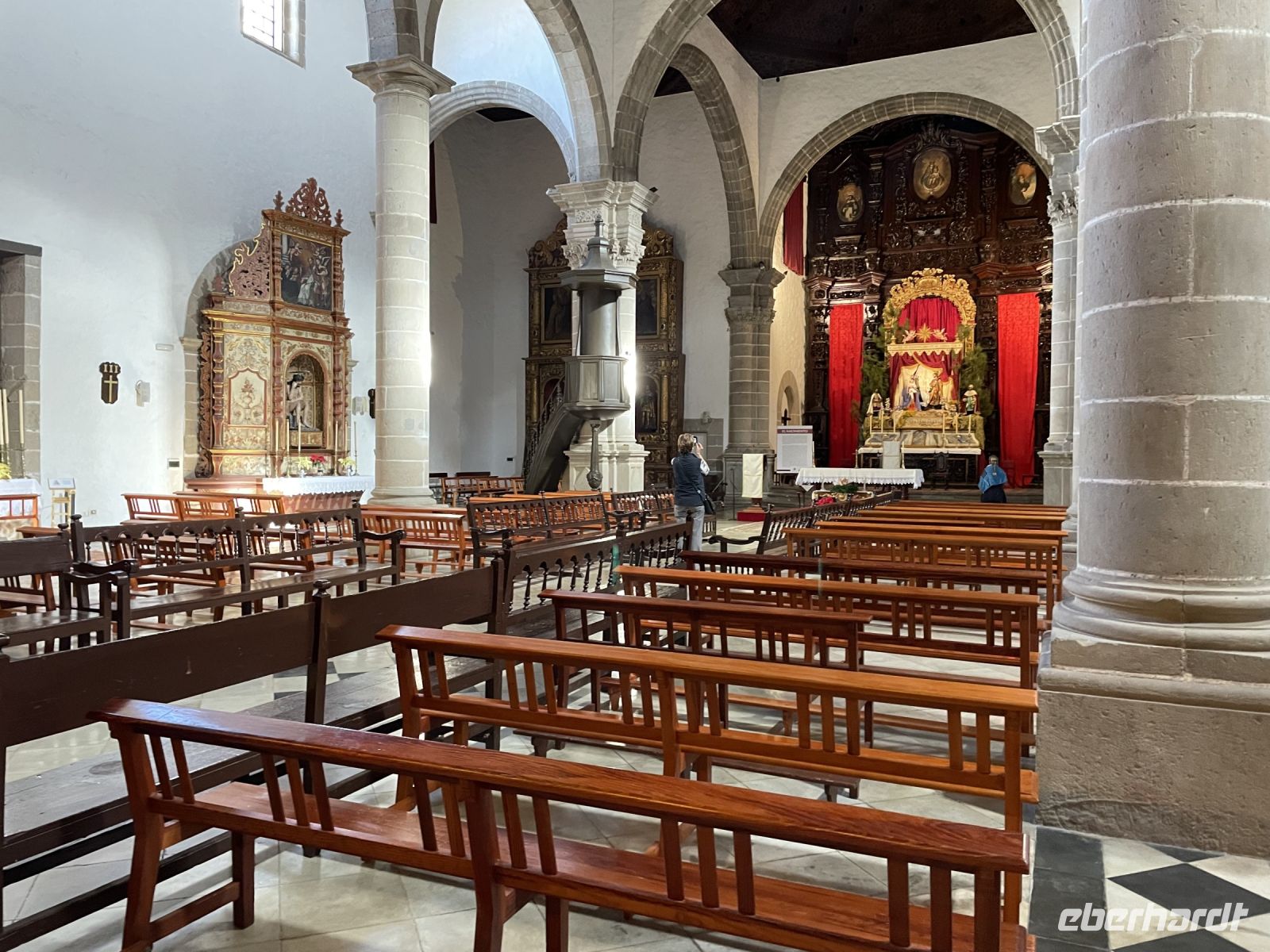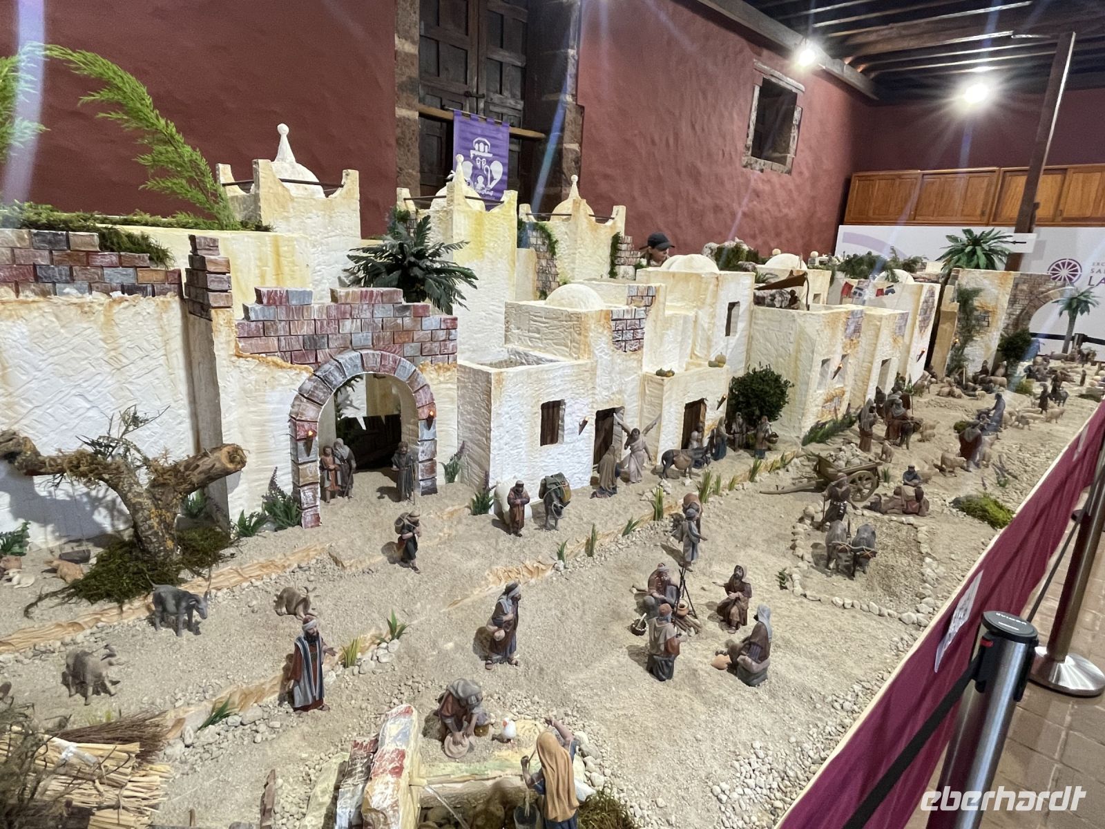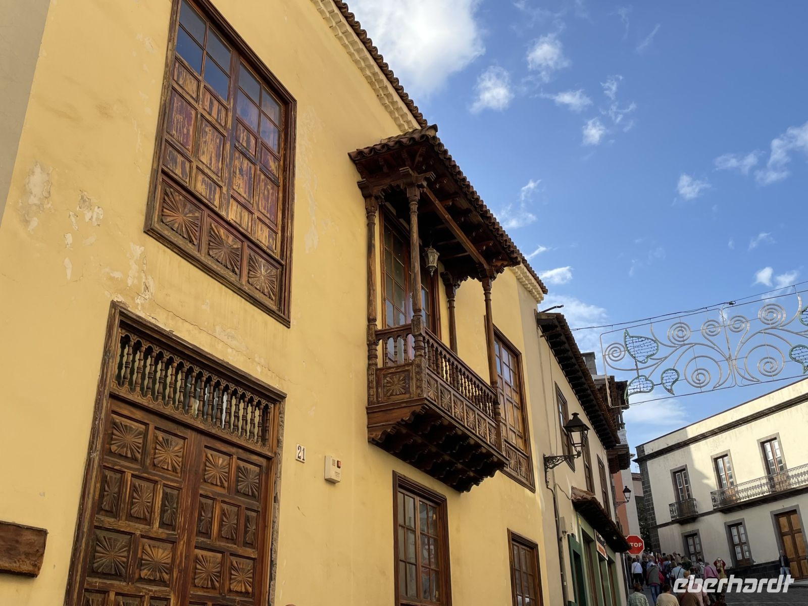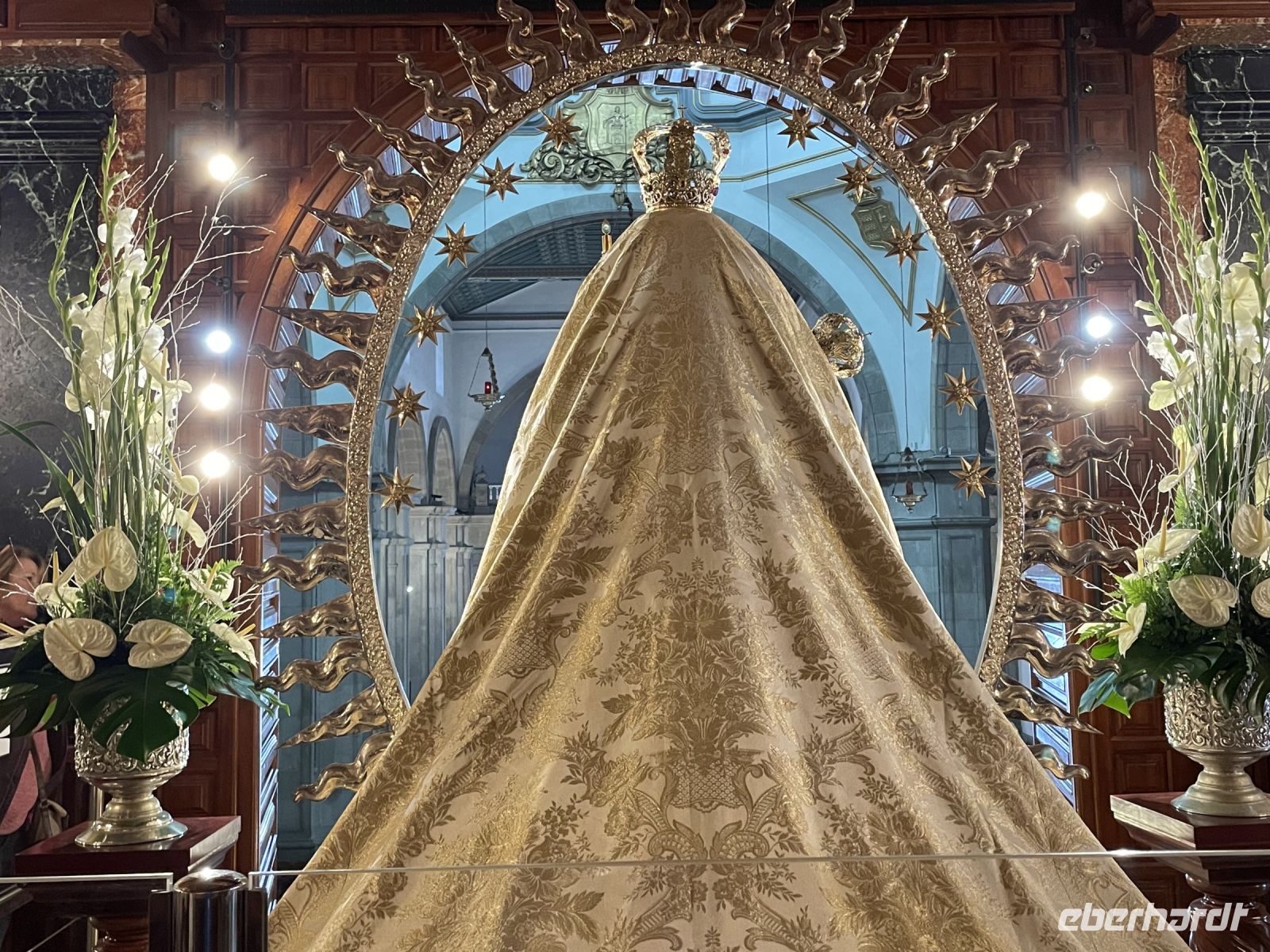 Es ist nur ein Katzensprung und schon sind wir in La Orotava. Wir spazieren durch den Ort bis zum Rathausplatz. An einem Tag pro Jahr wird hier ein gigantisches Sandgemälde errichtet, heute ist der Platz mit den traditionellen Krippen geschmückt. Eine schöner als die Andere! Weiter geht es zum Haus der Balkone. Besonders eindrucksvoll ist der typisch kanarische Innenhof mit seiner langen Balkonreihe. Im Inneren des Gebäudes sehen wir das historische Wohnzimmer und eine Stickerei. Vorbei an den Victoria-Gärten führt uns Louisa zur Kirche und dem ehemaligen Kloster von San Agustin. Auch hier finden wir wieder verschiedene Kirchen-Statuen. Louisa berichtet, jede Statue hat ihre eigenen christlichen Anhänger und einmal pro Jahr gibt es eine besondere Prozession, bei der die Statuen manchmal sogar durch die Stadt getragen werden. Die Statuen sind vom Ruß der Kerzen teilweise schon stark eingefärbt. Um sie zu renovieren wurden Experten aus Belgien eingeflogen, denn auf den Kanaren hat man Angst, die Statuen nicht zurück zu bekommen, wenn man sie aufs Festland schickt. Danach gehts wieder zum Kleinbus und wir fahren weit, weit bergauf. Während in La Orotava die Sonne scheint, bilden die Wolken einen Schleier über dem Teide, der uns die Sicht versperrt. Ein Imbiss in Portillo Alto, der letzten Ortschaft vor dem Gipfel, den sich die Nationalparkverwaltung gern aneignen würde, stärkt uns für den Nachmittag. Leider verkehrt die Seilbahn heute nicht - bei den dicken Wolken hätte sich eine Auffahrt ohnehin nicht gelohnt. Dafür fahren wir zum Finger Gottes. Auch dieser liegt in den Wolken, zeigt sich aber hin und wieder. Es ist kalt und regnerisch - daher gibts im Bus für alle einen Bananenlikör von der Insel - und schon wurde es wieder wärmer. Im Nationalparkzentrum erfahren wir bei einem kurzen Film mehr über den höchsten Berg Spaniens, dessen Flora und Fauna. Dann geht es wieder ins Tal, noch einen Halt an der "Felsenblume" eingelegt, dann sind wir schon wieder in Puerto de la Cruz und müssen uns von Louisa verabschieden, eine tolle Reiseleiterin der man gern zuhört.