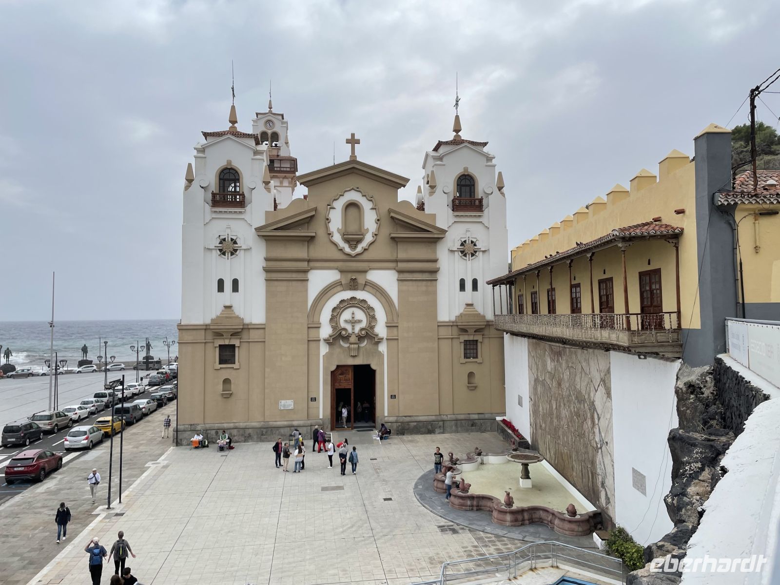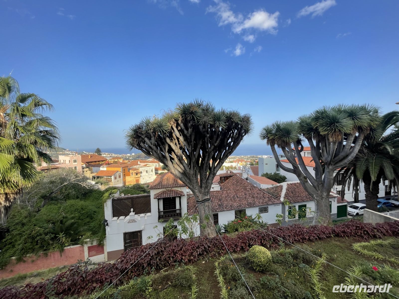 Nach einem ausgiebigen Frühstück treffen wir auf Louisa, unsere örtliche Reiseleiterin, die uns an den kommenden vier Tagen begleitet und ihre Wahlheimat näherbringt. Nach einer kurzen Vorstellung und einer kleinen Rundfahrt durch unseren Urlaubsort fahren wir in den Nord-Osten nach Candelaria. Ein kurzer Rundgang durch den Ort führt uns zur Basilika von Candelaria. Die Inselbewohner sind überwiegend sehr christlich und kommen hier her, um für frisch verheiratete Paare, neugeborene Kinder oder sogar das neue Auto den Segen zu erbitten. Im Innenraum finden wir Kapellen, Wandmalereien und natürlich die Jungfrau von Candelaria. Es bleibt noch etwas Freizeit um vor den peitschenden Wellen die frische Seeluft zu schnuppern oder durch den Ort zu schlendern. Der nächste Stopp ist in El Medano, das "Suferparadies" von Teneriffa. Kitesurfer mit ihren bunten Lenkdrachen prägen hier das Küstenbild. Erstaunlich dass bei diesem Gewusel alle Wassersportler den Überblick behalten. In Los Abrigos legen wir unsere Mittagspause ein. Das kleine Fischerdorf bietet eine Vielzahl an Fischrestaurants und wir können uns für den Nachmittag stärken. Bei der Abfahrt ein kleiner Schreckmoment - die pneumatische Luftfederung des Fahrersitzes ist kaputt. Statt dem Rauschen des Ozeans hören wir ein lautes Zischen im Bus. Ganz schnell ist Hilfe vor Ort und die Fahrt geht weiter. Vorbei an Playa de las Americas, einem Ort, nur für den Touristen gebaut, geht es durch den kurvigen Westen zum Mirador de Garachico. Wir blicken auf den kleinen Ort und den dahinterliegenden Atlantik und trinken einen "Café Alleman". Wer hier einen Kaffee bestellt, der erhält nämlich einen Espresso, erklärt uns Louisa. Danach gehts zum letzten Highlight des heutigen Tages, dem Örtchen Icod de los Vinos mit dem "Drago Milenario". Er soll über 1.000 Jahre alt sein und ist der bekannteste Drachenbaum der Kanaren. Um ihn zu schützen, wurde Ende der Neunziger Jahre die Straße verlegt ein kleiner Park gebaut, durch den wir schlendern. Louisa zeigt uns auch eine Wurzel, die von den Guanchen, den Ureinwohnern der Insel, konsumiert wurde und auch heute noch auf den Märkten verkauft wird. Sie soll jedoch nach Erde schmecken, daher halten wir uns zurück. Am Abend gehts zurück ins Hotel und wir stärken uns am Buffet.