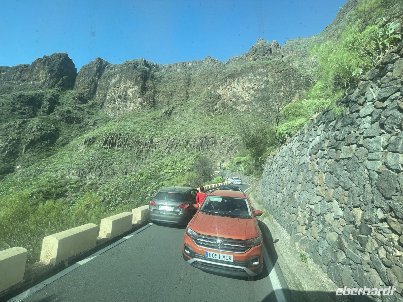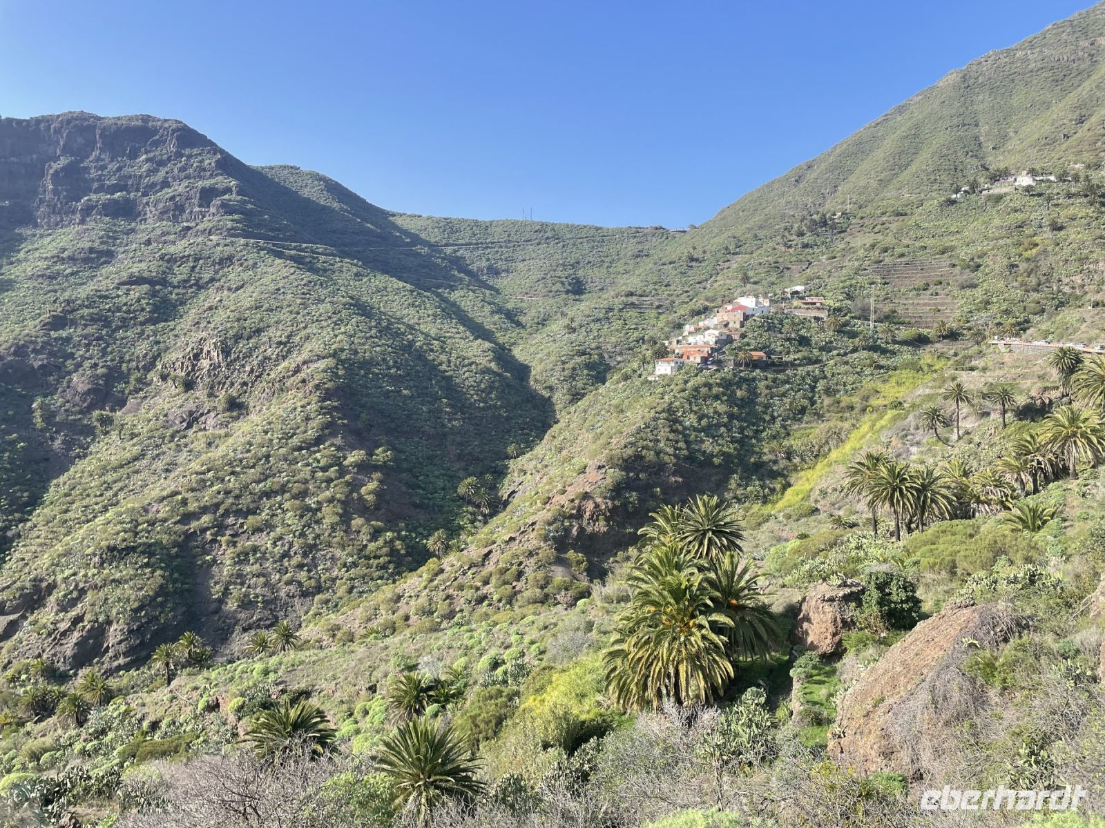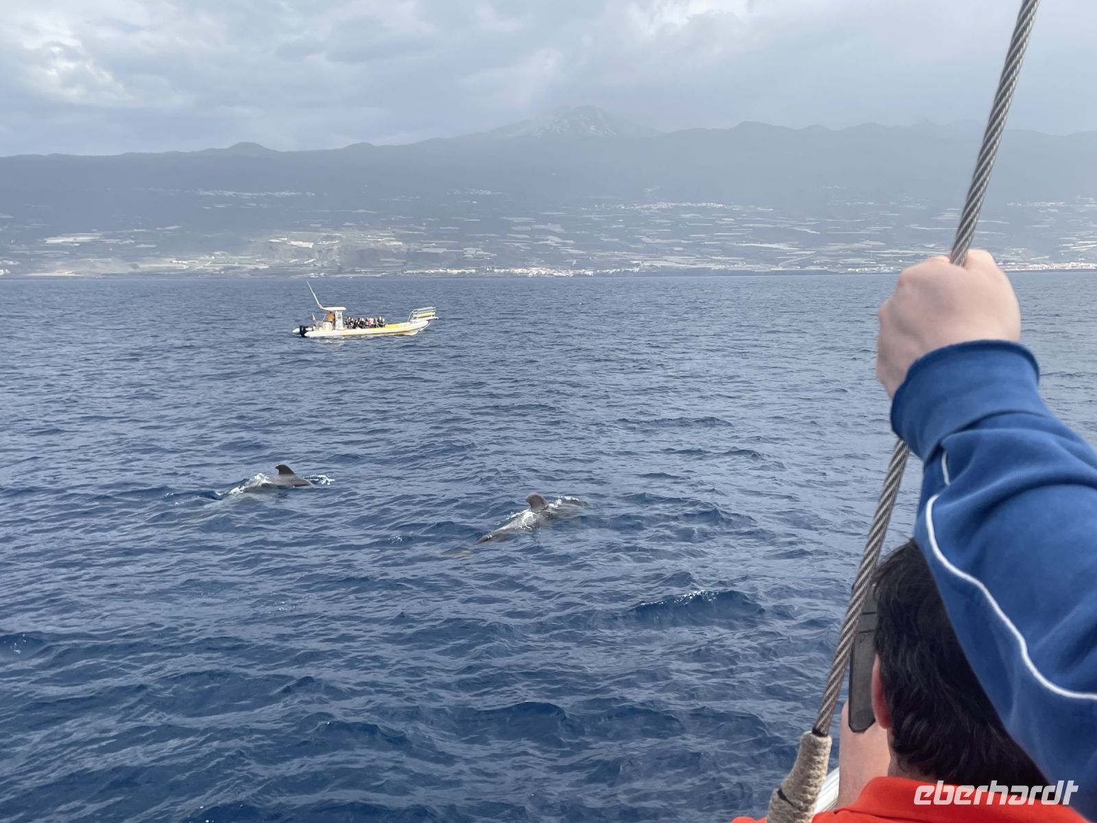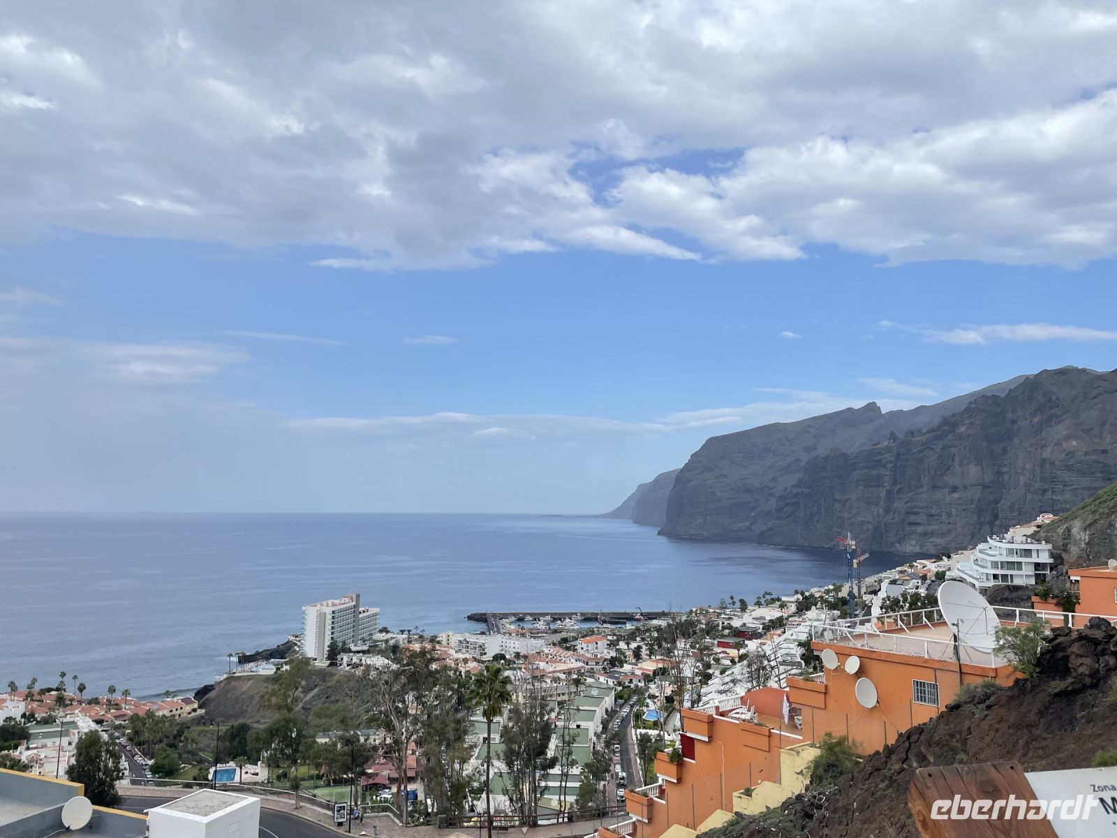 Die heutige Fahrt führte erneut durchs Gebirge und wir erreichen den Mirador Archipenque. Vor uns fallen die über 100 Meter hohen Steilküsten von Los Gigantes ins Meer, ein toller Ausblick. Dann gehts schon an Deck der "Flipper Uno" und wir erleben eines der Highlights dieser Reise. An Bord halten wir zunächst Ausschau nach Walen und Delfinen, jeder schaut gespannt in Richtung Backbord oder Steuerbord. Nach einer halben Stunde der erste Aufschrei, Delfine! Kurz darauf sind die charmanten Meeressäuger von allen Seiten des Schiffes aus nächster Nähe zu beobachten. Die Sonne kommt raus und wir schippern wieder in Richtung Küste, ein paar Wale kreuzen unseren Weg. Die Crew serviert Paella, dazu ein Bier, Wein oder Softgetränk. In einer Bucht vor den Klippen von Los Gigantes legen wir eine Badepause ein. Wieder an Land wird es noch kurvenreicher als am Vormittag. Spätestens ab Santiago del Teide wird die Strecke sehr anspruchsvoll. Unser Bus muss in den Kurven mehrmals ansetzen, Mietwagenfahrer stoßen an die Grenzen ihrer Fahrkünste. Nach einer guten Stunde erreichen wir Masca, das "versteckte Dorf". Louisa erzählt uns, dass das Dorf bis in die 80er-Jahre nur über Esel erreichbar war. Ebenfalls beginnen die Wanderungen durch die Masca-Schlucht in diesem Dorf, welche man heute allerdings anmelden muss. Das Dörfchen selbst ist mein persönlicher Höhepunkt der Reise. Malerische Häuschen liegen eingebettet in eine faszinierende Schluchtenlandschaft, ein traumhafter Anblick, der die Strapazen der kurvigen und abenteuerlichen Anfahrt belohnt. Zum Abschluss des Tages besuchen wir Garachico. Im 16. und 17. Jahrhundert war Garachico der wichtigste Hafen der Insel, was man auch an der Hafenfestung Castillo de San Miguel sehen kann. Louisa zeigt uns die Stadt und wir sehen das dritte von drei Nonnenklostern auf der Insel. Direkt gegenüber befand sich früher das Fußballstadion. Wegen dem starken Wellengang wurde es mehrmals zerstört und in einen Parkplatz umgewandelt. Louisa scherzt, die Nonnen sind darüber traurig, denn sie haben den Männern sicherlich gern beim Sport zugeschaut. Die Sonne geht schon langsam über dem Meer unter und wir machen uns auf den Rückweg nach Puerto de la Cruz.