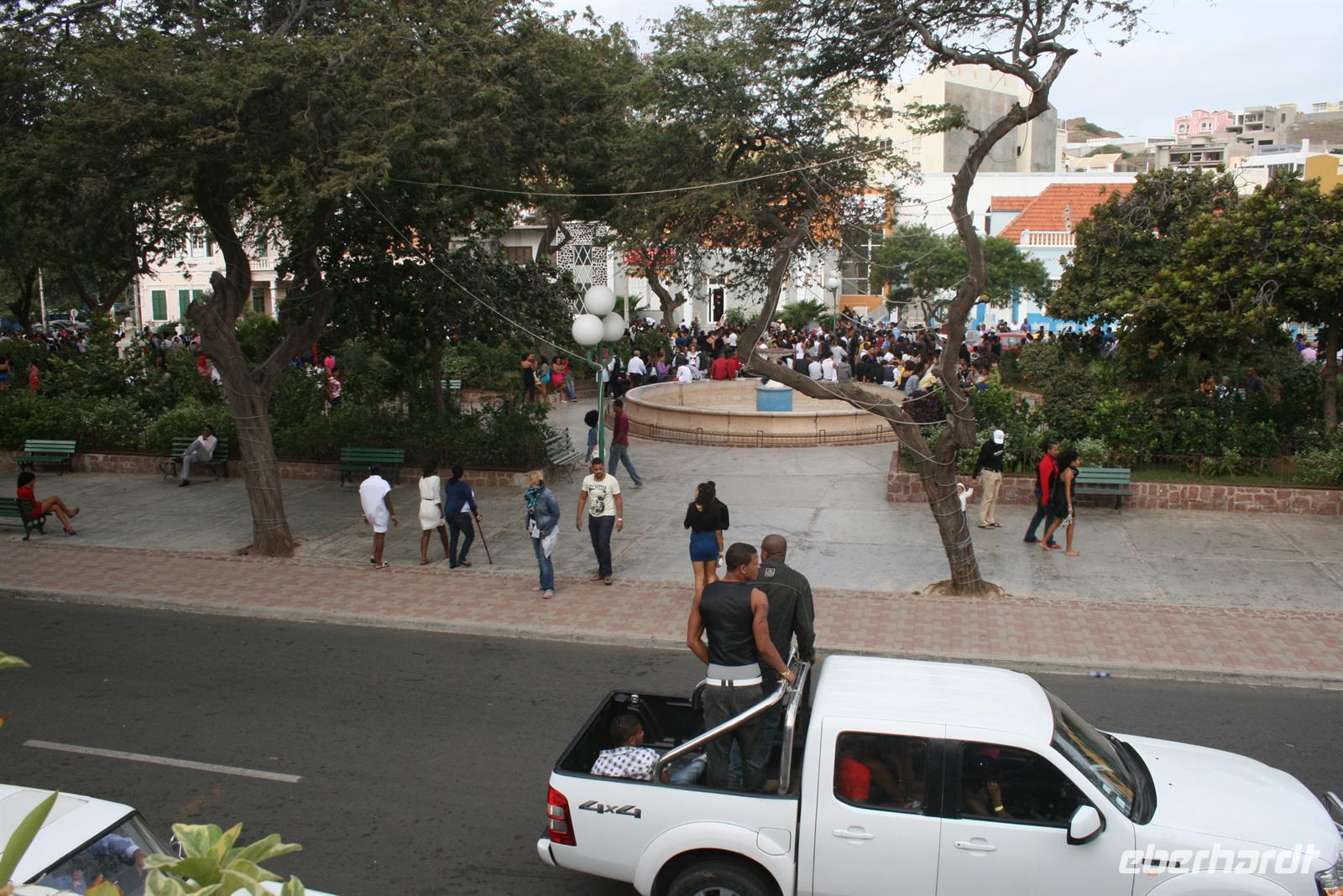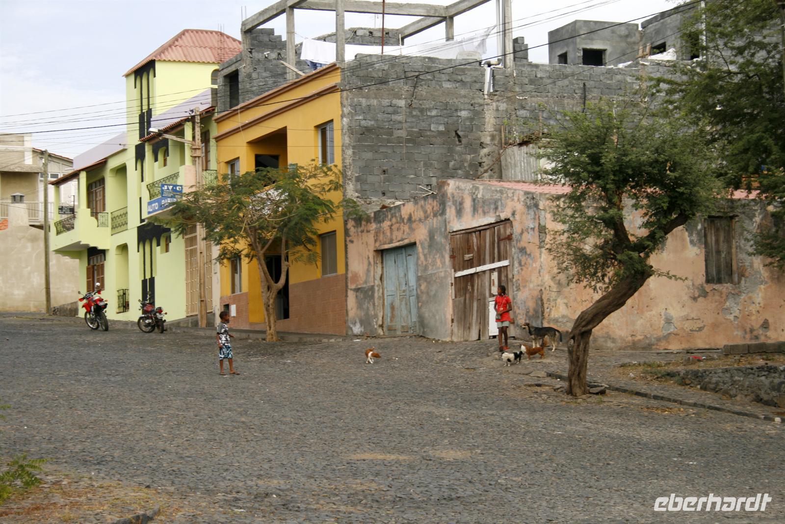 Nachdem wir unsere Zimmerbezogen und uns kurz frisch gemacht haben, starten wir mit Annica zu einem Stadtrundgang durch Sao Filipe. Wir bummeln die kleinen Pflasterstraßen entlang (festes Schuhwerk ist empfehlenswert) vorbei an den wichtigsten Plätzen des Ortes, der Markthalle, dem Kleidermarkt, dem Rathaus und der katholischen Kirche. Einige Häuser sind im Kolonialstil erhalten und renoviert. Überall gibt es Straßenhändler und spielende Kinder. Es herrscht geschäftiges Leben in der kleinen Stadt. Die Kirche ist außerhalb der Gottesdienste geschlossen, aber wir haben am Abend Gelegenheit, eine Christmette zu besuchen.