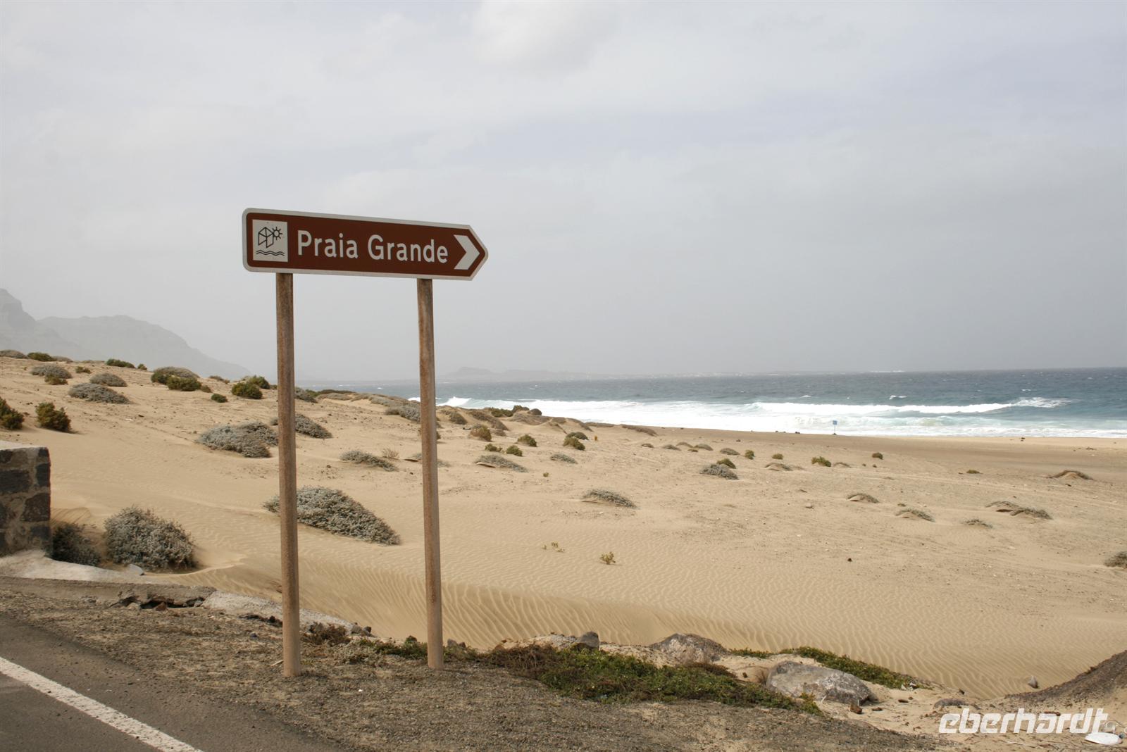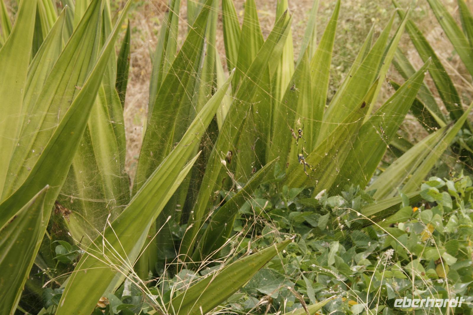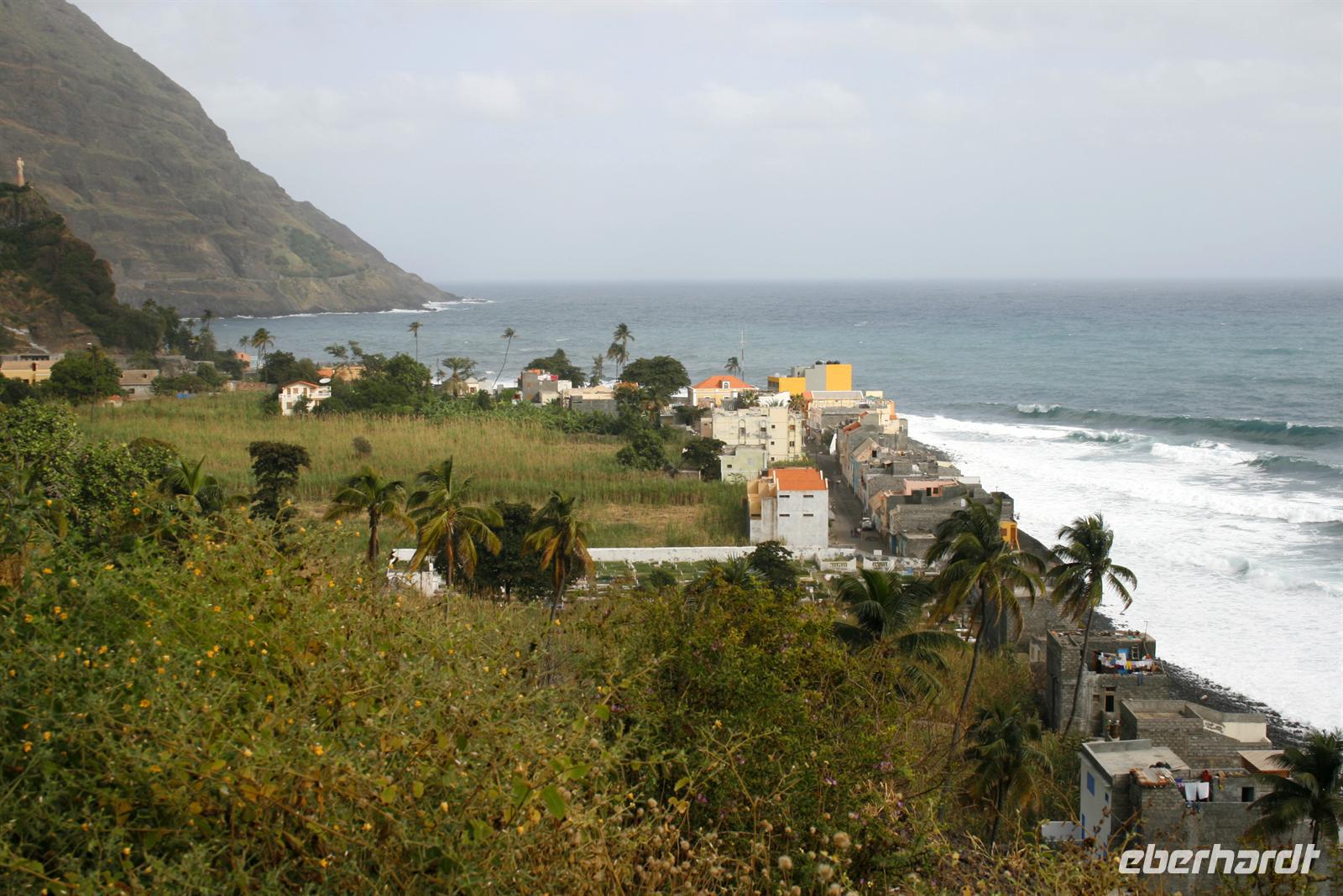 Wir fahren durch Cova Figueira (übersetzt Feigen-Krater), welches der Verwaltungssitz einer der drei Regierungsbezirke oder Gemeinden der Insel ist, neben Sao Filipe und Mosteiros. Entlang der Ringstraße oberhalb der Küste geht es weiter nach Mosteiros. Entlang der Straße und über die Straße gespannt sind hier viele Spinnweben. Die Gegend wird daher auch Spider Village genannt. Überall sieht man die etwa 8cm großen Spinnen hängen. Sie sind aber nicht gefährlich.