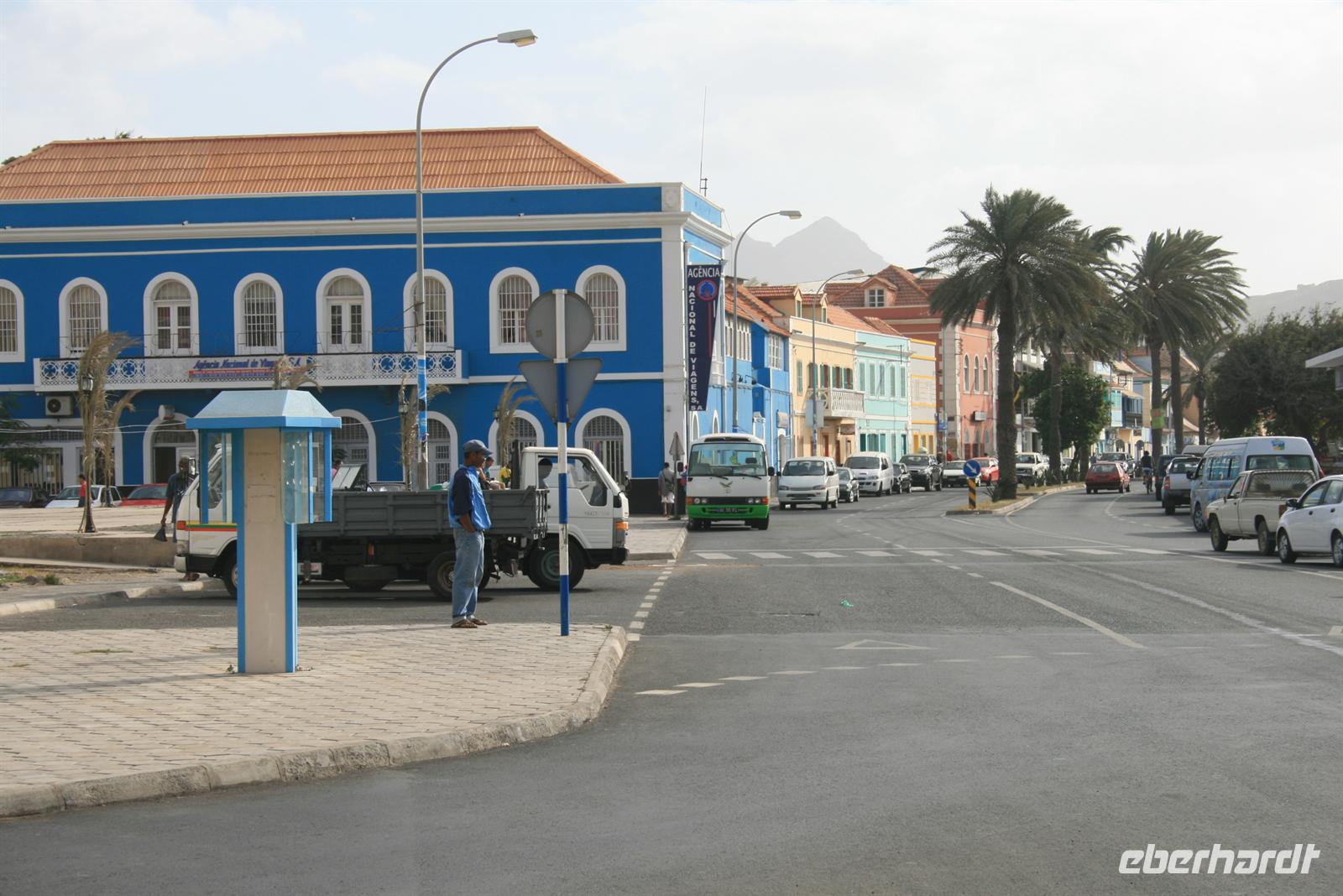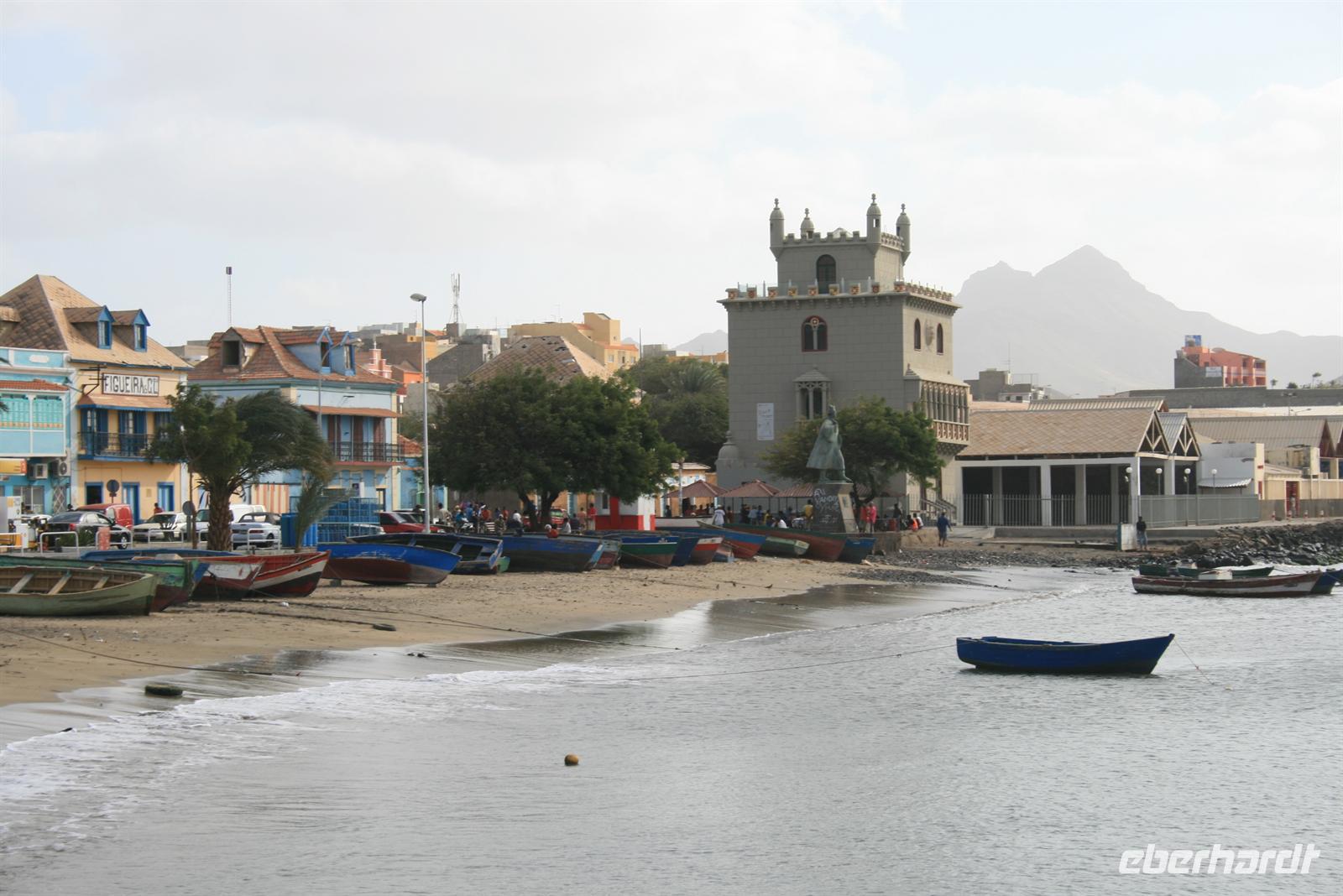 Nach etwa einer Stunde erreichen wir den ruhigeren Hafen Porto Grande in Mindelo. Hier wartet unser Tranferfahrer auf uns und bringt uns zum schon bekannten Hotel "Porto Grande" an der Praca Nova. Wir beziehen unsere Zimmer und treffen uns danach um 12.00 Uhr in der Lobby zu unserem Stadtrundgang durch Mindelo. Nun lernen wir die Sehenswürdigkeiten der Stadt näher kennen. Wir besichtigen ein kleines Kunsthandwerksmuseum an der Praca Nova und spazieren an der Hafenpromenade entlang zum alten Zollhaus, in dem heute ein Kulturzentrum untergebracht ist. Hier gibt es Ausstellungen einheimischer Künstler und einen hübschen Souvenirladen.