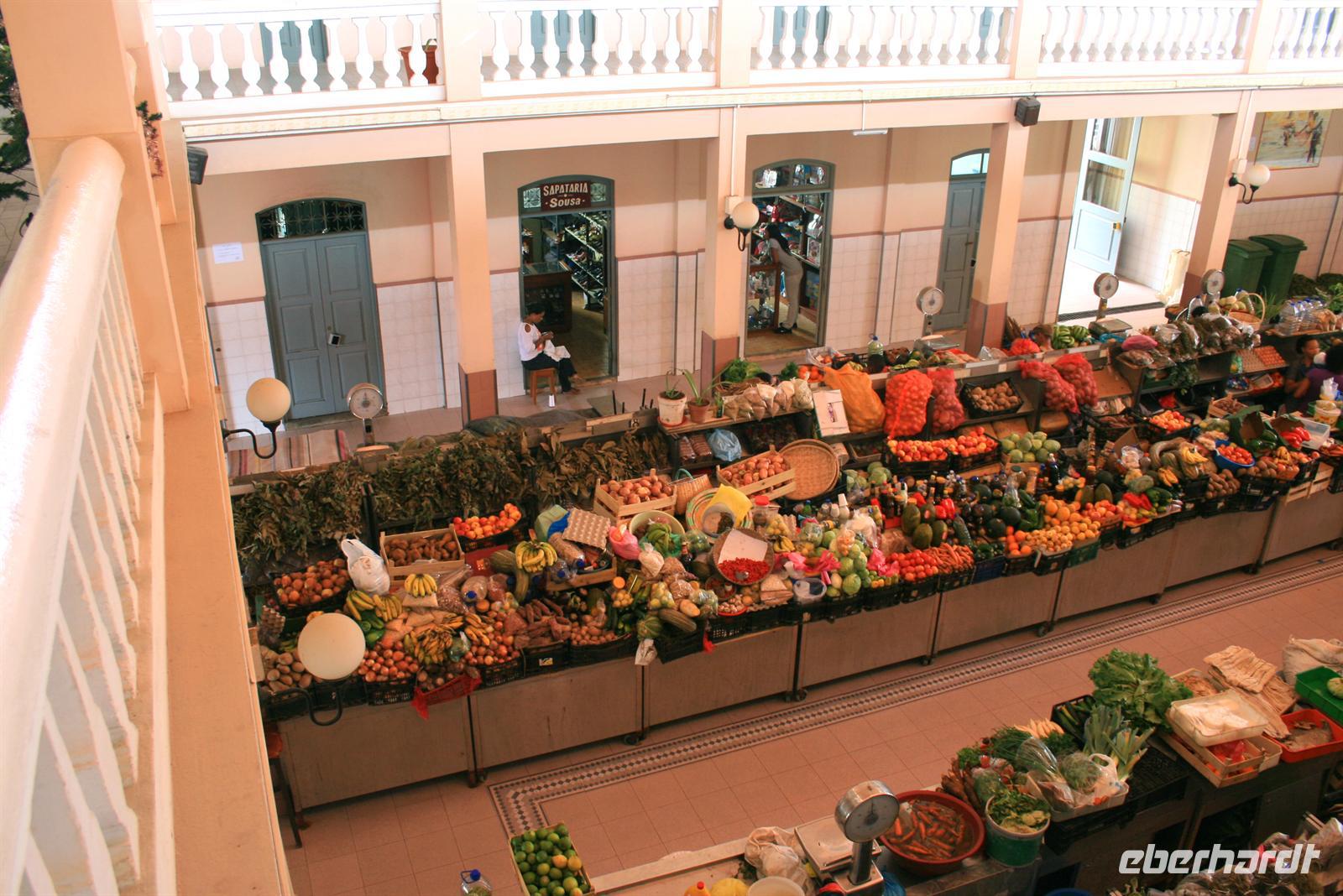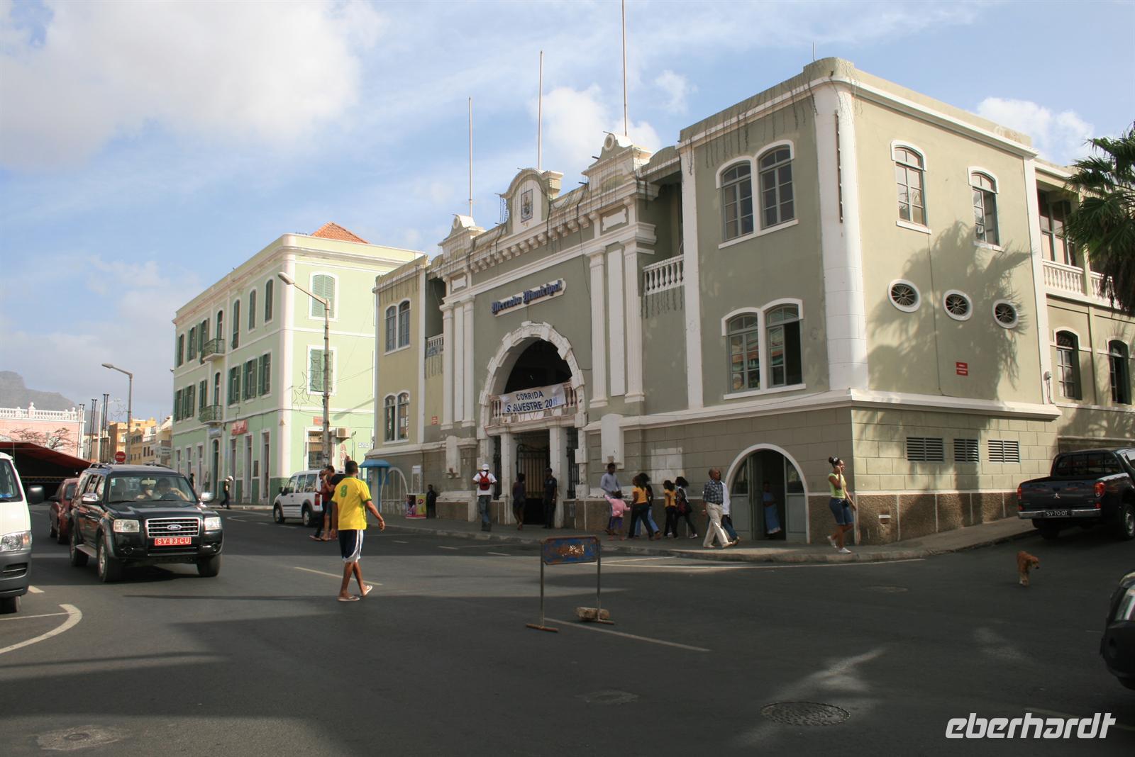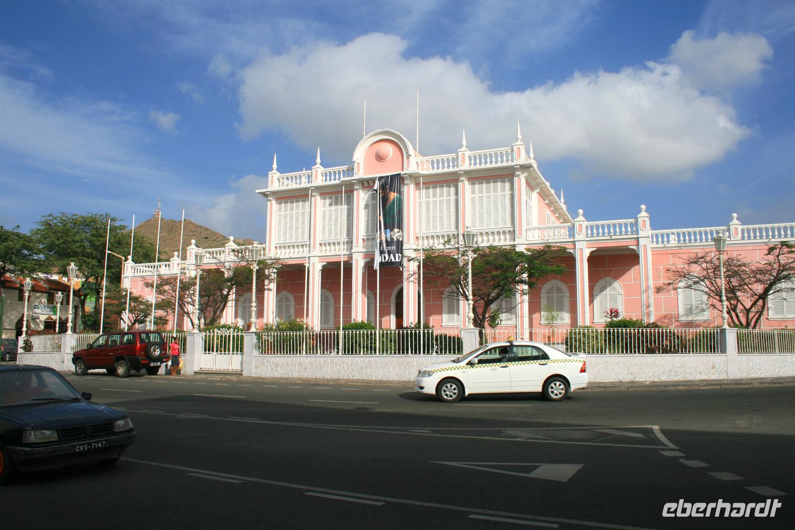 An den historischen Handelshäusern im viktorianischen Stil und dem Torre de Belem vorbei geht es weiter zum Fischmarkt von Mindelo. Hier sehen wir die großen Thunfische, Makrelen und Meeresfrüchte, die zum Verkauf vorbereitet werden. Über den afrikanischen Markt im Süden des Stadtzentrums gehen wir an der kleinen Kirche vorbei zur großen Markthalle der Stadt. Hier werden Obst und Gemüse verkauft, die hauptsächlich von anderen Inseln der Kapverden importiert werden. Von grünen Kochbananen über Süßkartoffeln und Maniok bis hin zu Feigen und getrocknetem Obst gibt es hier alles zu verhandelbaren Preisen. Die Markthalle ist auch architektonisch sehr schön. Unweit der Marthalle sehen wir auch den Präsidentenpalast, in dem der Präsident der Kapverden residiert, wenn er Sao Vicente besucht.