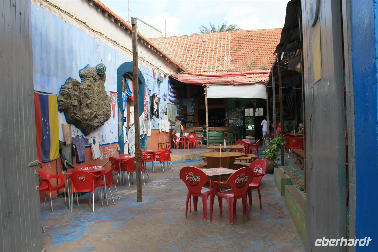 Um 17.30 Uhr sind wir zurück im Hotel Xaguate. Einige nutzen die Zeit bis zum Abendessen zur Entspannung am Hotelpool. Um 19.00 Uhr treffen wir uns wieder in der Lobby, um in die Stadt Sao Filipe zum Abendessen zu gehen. Heute besuchen wir ein anderes Restaurant, was auch in allen Reiseführern zu Sao Filipe ausgeschrieben ist, den Tropical Club (Bar und Restaurant). Wir haben wieder Taschenlampen dabei, um den Weg zu beleuchten. Im Innenhof des Restaurant sitzen wir unter einer riesigen Palme, die mit Lichterketten beleuchtet ist. Wir bestellen die Getränke (Bier/Cola 150 CVE, Tee 100 CVE, eine Flasche Fogo-Wein 1200 CVE). Heute probieren einige das Kapverden-Bier Strela. Es kommt ganz gut an. Zum Hauptgang gibt es wieder Hühnchen und zwei Sorten Fisch, dazu Reis und Pommes, Gemüse und Kartoffeln. Alles schmeckt sehr gut. Zum Dessert dürfen wir aus der Karte wählen (die Speisekarte ist in Portugiesisch, Spanisch, Englisch und Deutsch). Es gibt beispielsweise Mango oder Erdbeereis, Papaya, Milchpudding oder gebratene Banane. Gegen 21.45 Uhr laufen wir zurück zum Hotel. Das war wieder ein schöner Tag und ein gemütlicher Abend!