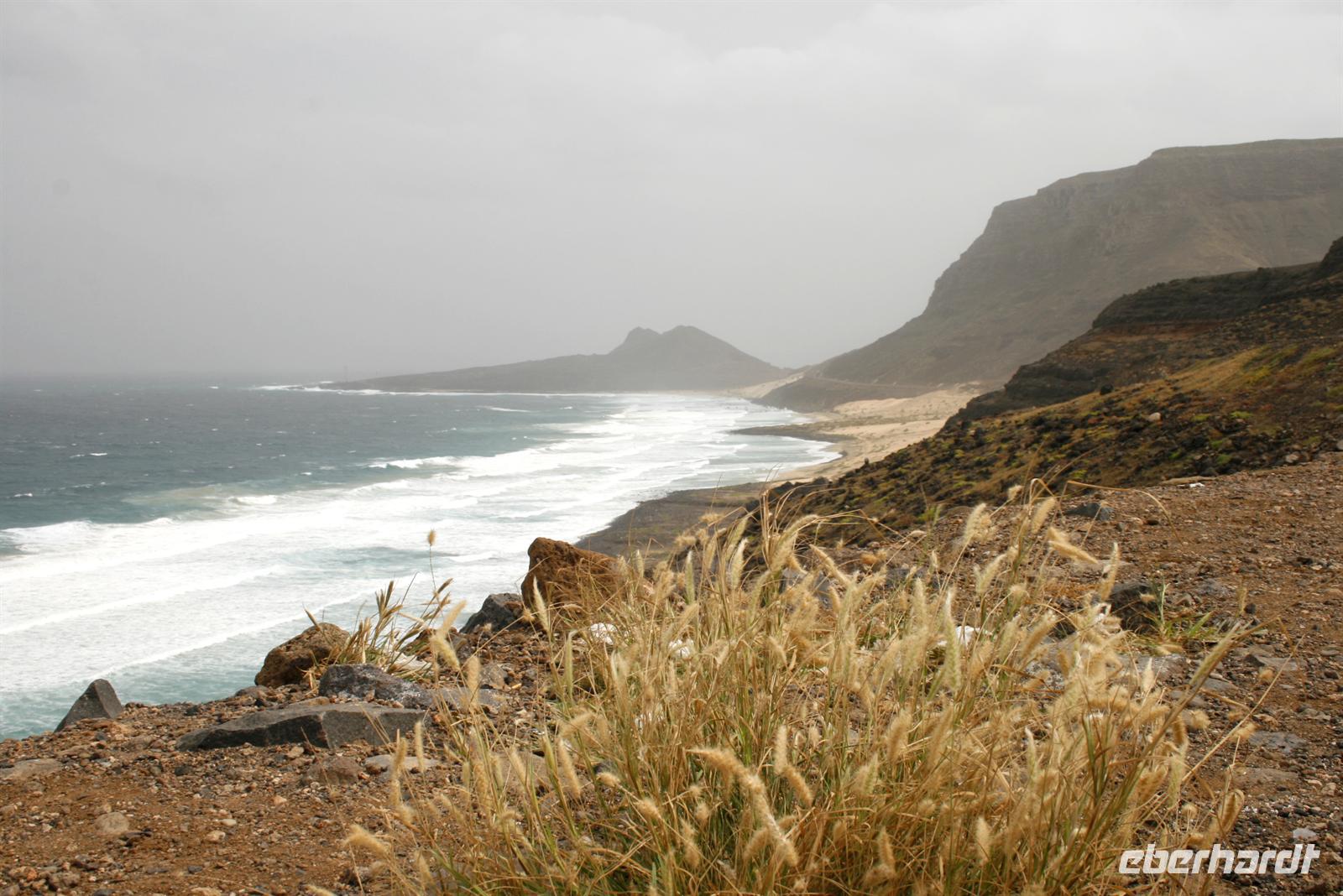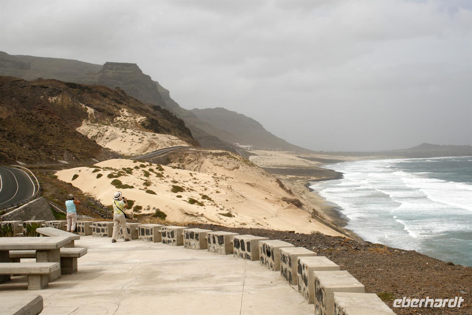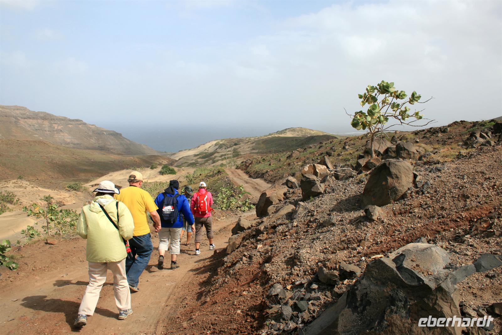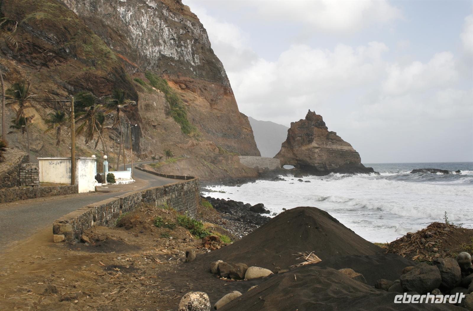 Heute steht ein aktiver Tag in der Natur Santo Antaos auf dem Programm. Nach dem Frühstück im Hotel holen uns Reiseleiter Max und unser Fahrer ab und wir fahren im Kleinbus erneut auf die Ringstraße, die uns an die Ostküste Santo Antaos führt. An der Küste entlang durchqueren wir einige Tunnel, die mit Hilfe der EU hier vor einigen Jahren gebaut wurden.