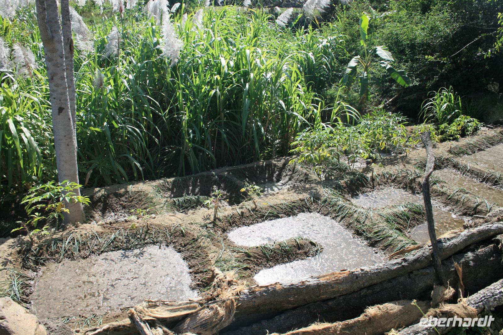 Unterwegs halten wir an einigen kleinen Obstplantagen und Gemüsefeldern, die bewässert werden mit Schläuchen und Tropfenbewässerung.
