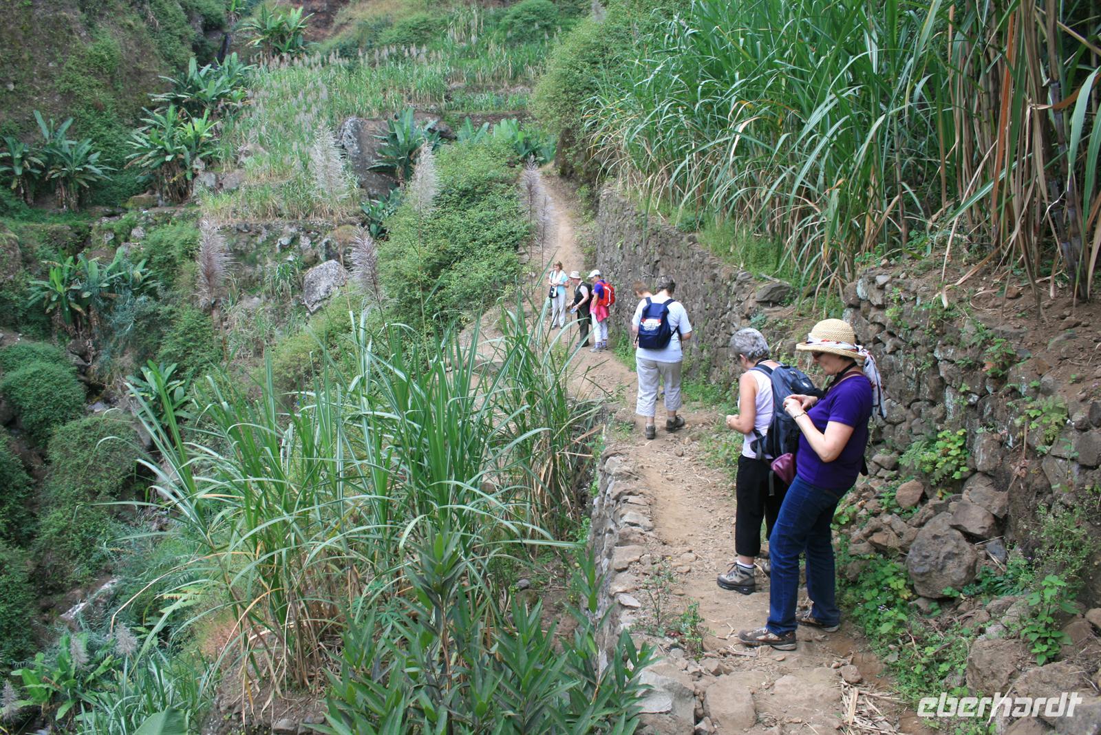 Donnerstag, 29.12.2011 Besuch beim Zuckerrohr–Bauer mit Grogue–Probe – Wanderung im Paul–Tal – Panorama–Fahrt durch das Bergland und Cova–Krater