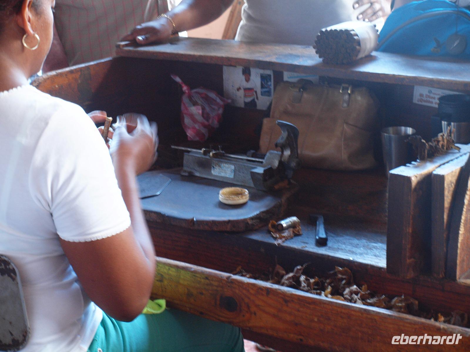 Zurück an der Oberfläche führt uns der Weg noch an den Leguanen vorbei und dann geht die Reise auch schon weiter nach San Pedro. Wir besichtigen eine Zigarrenfabrik und können den Angestellten bei ihrer Arbeit über die Schulter schauen. Für Zigarrenliebhaber bot sich hier die Gelegenheit die im Moment weltbesten Zigarren direkt zu kaufen. Ein paar Meter neben der Fabrik steht die erste aus Beton gegossene Kirche der Karibik. Auf dem Rückweg halten wir an einem Souvenirladen, denn hier kann man neben anderem Krimskrams auch die berühmten Larimar Steine kaufen. Gegen 14:00 Uhr verlassen wir die Dominikanische Republik wieder und fahren zurück zu den Kleinen Antillen.