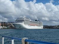 Zurück an Bord der MSC gehen wir etwas Essen und treffen uns etwas später am Pier wieder. Ein kleiner Spaziergang entlang des blauen Pfades bringt uns in die Stadt, zumindest in einen Teil der Stadt. Die Geschäfte sind bereits geschlossen und wir schlendern nur etwas durch die Gegend...
