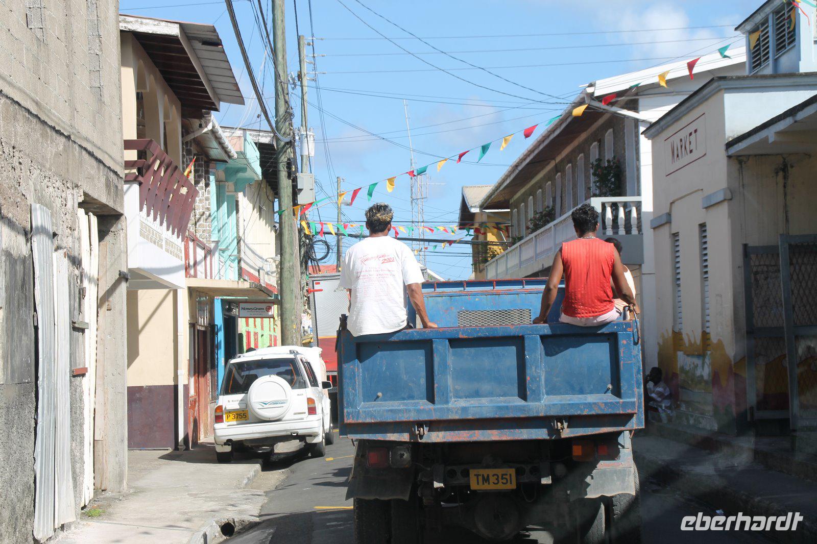 Die Insel Dominica gilt als eine der naturbelassensten Inseln der Karibik. Viel Dschungel und wenig Bebauung. In der Hauptstadt Roseau angekommen gehen wir von Bord für einen kurzen Eberhardt-Inklusivausflug zu den Emerald Pools. Unsere Reisegruppe macht sich gemeinsam mit dem örtlichen Reiseleiter Devis und Fahrer Michael auf den Weg einen kleinen Teil der immergrünen Insel zu erkunden. Beide sprechen nur Englisch, weshalb ich während der gesamten Fahrt übersetze. Zunächst fahren wir aus der Stadt Roseau heraus und bekommen einen kleinen Eindruck von den Schäden des letzten Hurricans, da diese relativ arme Insel nicht die finanziellen Möglichkeiten besitzt diese Schäden sofort zu beheben. Wir stoppen an einem Aussichtspunkt mit Blick auf das karibische Meer und die Hauptstadt. Weiter geht es entlang der Westküste ins Inselinnere, um in das Herz der Insel, den Regenwald, einzutauchen. Über Serpentinenstraßen fahren wir bergauf durch typische kleine Inseldörfer und vorbei an zahllosen Plantagen mit unzähligen Karibikfrüchten. Bei der Fahrt durch das endlose Grün der Insel können wir auch den ein oder anderen Blick auf die beiden höchsten Berge die majestätisch über der Insel thronen werfen. Als wir am Eingang des bekannten Emerald Pools ankommen, versorgt uns Davis mit den Eintrittstickets und wir machen uns gemeinsam auf den 15-minütigen Fußmarsch auf. Wir spazieren über gut ausgebaute Wege durch den Regenwald in Richtung Wasserfall. Wir sind natürlich nicht die einzigen Gäste, aber nichts desto trotz nutzen einige unserer Reisegäste die Gelegenheit für ein Bad im kühlen Nass. Am Busparkplatz wieder angekommen braut sich ein tropischer Regenschauer über uns zusammen. Schnell rennen wir mit unseren Handtüchern über dem Kopf zum Bus und versuchen so wenig wie möglich nass zu werden. Nach etwa 10min. ist das Spektakel auch schon wieder vorbei. Auf der Rückfahrt nach Rosseau stoppen wir unterwegs noch an einer Grundschule. Reiseleiter Davis fragt, ob wir kurz hinein schauen dürfen und siehe da - die Schulleiterin erlaubt uns einen kurzen Besuch. Die Schüler sind ebenso überrascht wie wir. Wir erfahren einige interessante Fakten über den Schulalltag und das Schulsystem. Zum Schluss lasse ich noch ein paar Süßigkeiten da als Dankeschön. Die Kinde haben sich sehr gefreut. Nach diesem eher spontanen Erlebnis geht es zurück in die Hauptstadt, wo jeder von uns noch die Möglichkeit für einen Stadtbummel zum Fisch- und Gemüsemarkt mit mir hat. Am später Nachmittag verlassen wir wieder die Insel und freuen uns auf die zweite Reisewoche. Denn heute ist Bergfest und wir fahren nun in Richtung der nördlichen - kleinen Antillen.