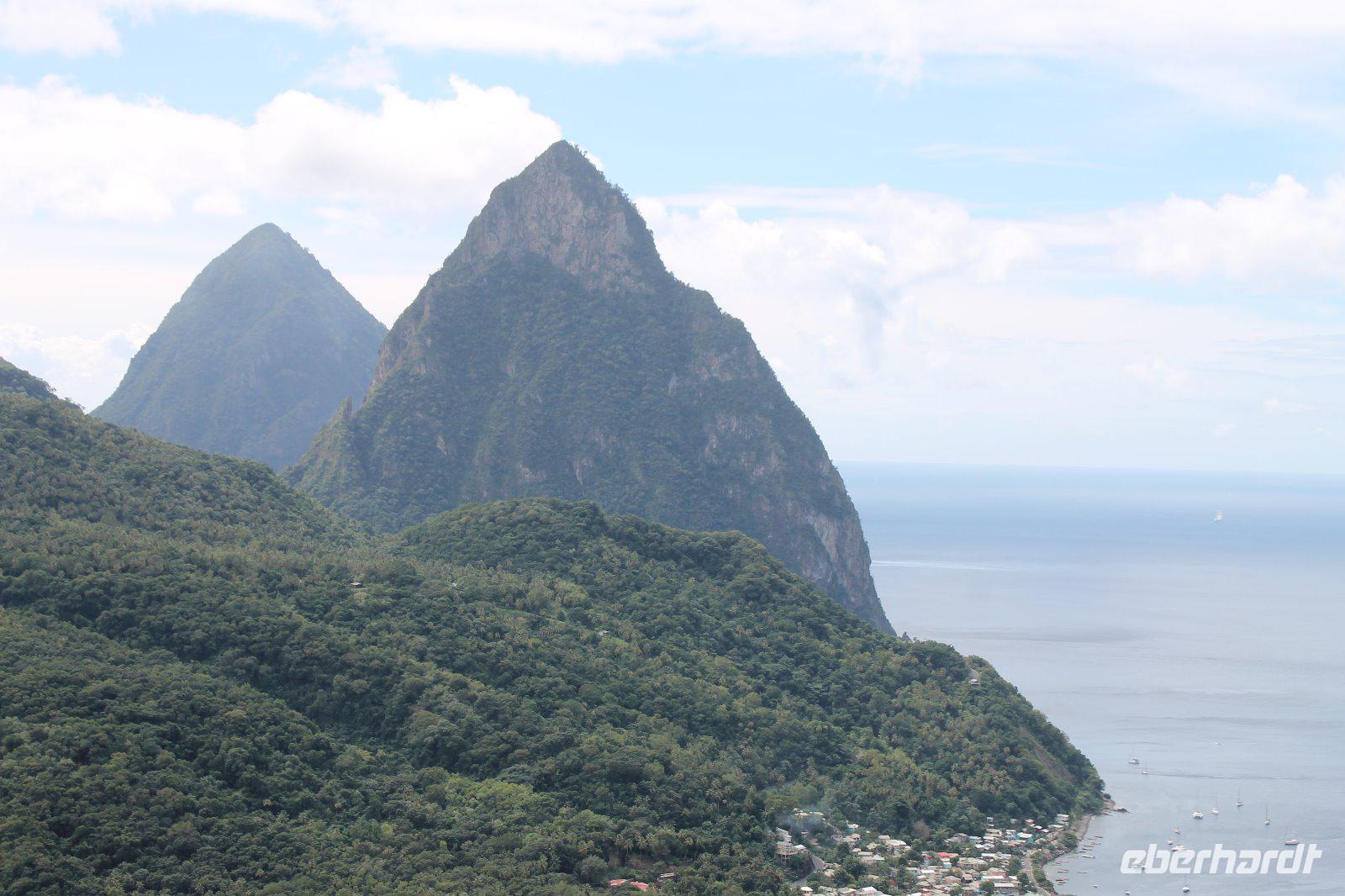 Heute erreichen wir am frühen Morgen die Insel St.Lucia. Der Vulkan La Soufière steht bei unserer halbtägigen Tour auf dem Programm. So bekommen wir bei einer kleinen Stadtrundfahrt durch Castries einen ersten Eindruck der quirligen Stadt mit 60.000 Einwohnern und sehen das Rathaus, das Parlament und die Kathedrale. Unseren ersten Stopp legen wir an einem Aussichtspunkt oberhalb der Stadt ein, um unser MSC-Schiff im Hafen zu fotografieren. Weiter geht es vorbei am Gouverneurhaus, der Hochschule und schließlich ins Tal der Bananen mit seinen gefühlt endlosen Bananenstaudenplantagen und einer Anbaufläche von 1700 Hektar, von denen heutzutage rund 80% nach England exportiert werden. Da sich in der Nähe auch die berühmte Marigot-Bay befindet, ist es Pflicht dort einen kurzen Stopp einzulegen um die malerische Bucht mit seinen Segelbooten zwischen den grünen Hügeln zu fotografieren. Weiter geht es über kurvige Küstenstraßen bergauf und bergab vorbei an Fischerdörfern in Richtung unserem Hauptziel dem Vulkan. Auf dem Weg lässt es sich unser Guide nicht nehmen einen kurzen Stopp an einem der Straßenstände einzulegen und uns eine Kostprobe der heimischen Bananen anzubieten. Dieser kleine Snack zwischendurch kam uns sehr gelegen. Weiter geht es durch den Regenwald und endlich bekommen wir den ersten Blick auf das wohl berühmteste Fotomotiv und Wahrzeichen dieser Insel, die Deux Pitons erheben sich hinter dem Ort Soufrière majestätisch aus dem Meer, ein überwältigender Anblick! Doch davon später mehr, zunächst geht es in das Gebiet der Schwefelquellen in der Nähe des Vulkans. Dort besuchten wir das Informationszentrum mit seiner kleinen Ausstellung und erfahren mehr über das Vulkangebiet bei einem kleinen Informationsvideo mit deutschen Untertiteln. Anschließend bekommen wir bei einer kurzen Führung durch den 12 km großen Krater, weitere Erklärungen und können uns von der Kraft dieses Vulkans selbst überzeugen. Wir sehen die blubbernden Löcher mit 160 Grad heißem Schlamm und riechen den unangenehmen Schwefelgeruch, der bestimmt jedem aus dem Chemieunterricht bekannt ist. Nach der kargen Kraterlandschaft hält unser Guide ein Kontrastprogramm für uns bereit, denn wir besuchen einen kleinen tropischen Garten. Hier bestaunen wir die Üppigkeit, die die Natur für uns bereit hält und beobachteten Kolibris die im endlosen Grün von Blüte zur Blüte fliegen, um Nektar aufzunehmen. Neben Orchideen gibt es auch eine Menge an Früchten zu sehen, die wir bei uns leider nur im Supermarkt und nicht an den Bäumen finden können. Ein paar Meter weiter halten wir dann noch für einen kurzen Stopp in einem kleinen Restaurant mit Rumpunschverkostung und Ausblick auf die Deux Pitons und die Stadt Sofrière. Auf derselben Strecke geht es zurück in die Stadt Castries und zum Schiff. Am frühen Abend noch vor dem Abendessen, läuft unser Schiff wieder aus und wir freuen uns schon auf die nächste Insel. Bei einem Absacker-Drink auf dem Pooldeck, lassen wir den Tag Revue passieren.