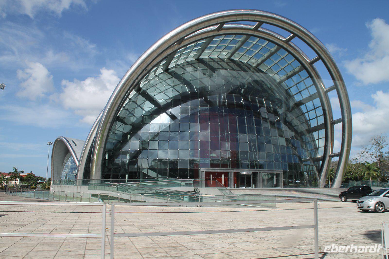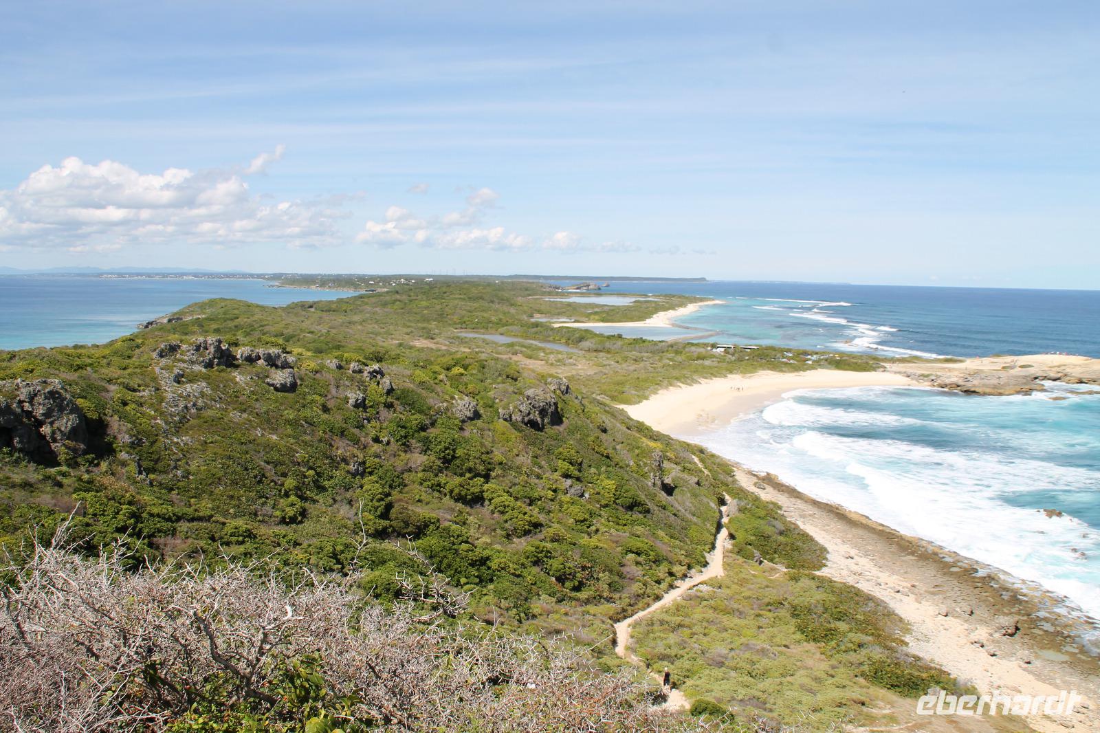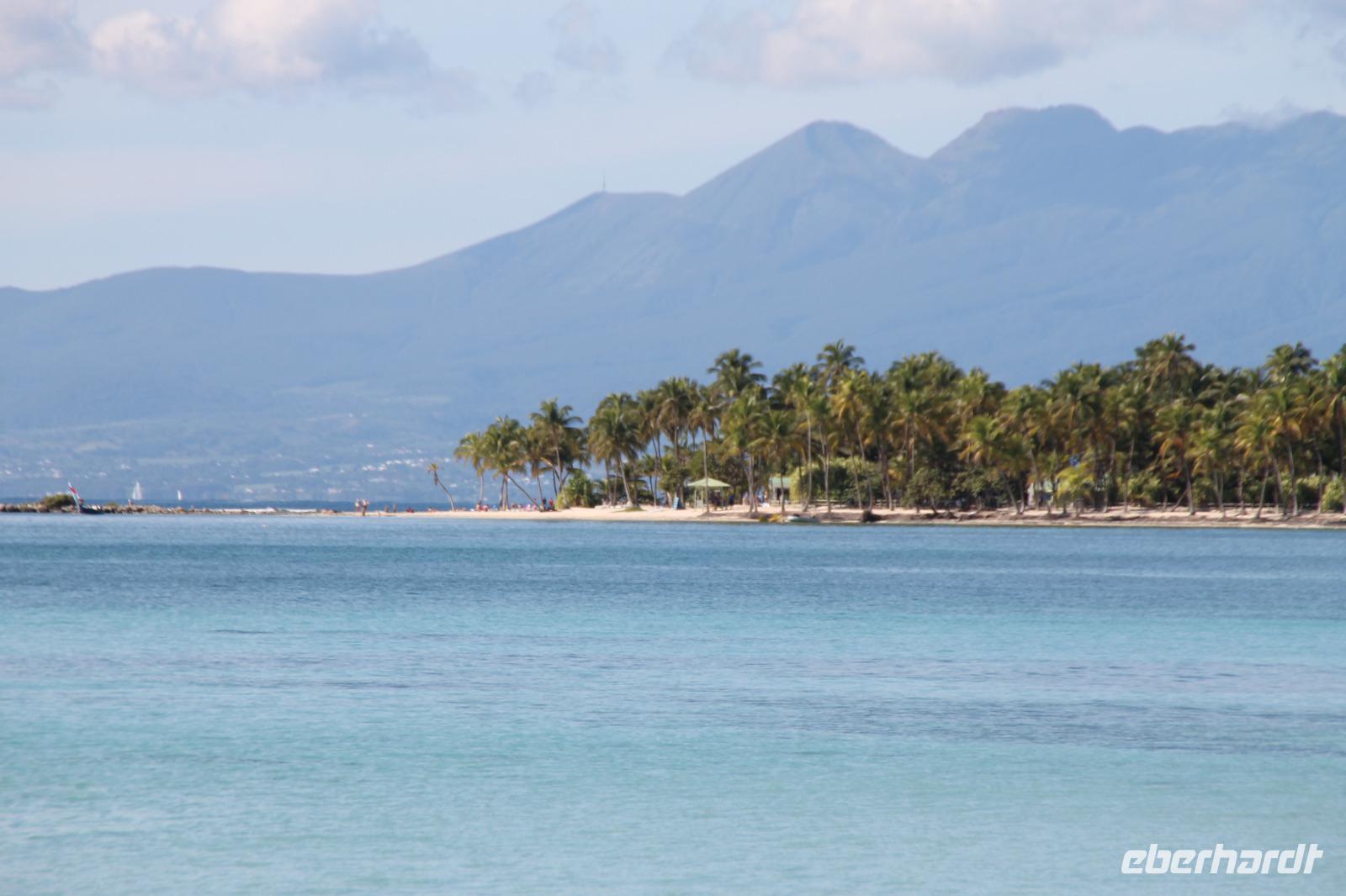 Nach einer erholsamen Nacht erreichen wir die zweite französische Karibikinsel - Guadeloupe. Nach dem individuellen Frühstück trifft sich der Großteil unserer Eberhardt-Reisegruppe zum Ausflug „Panoramatour zur Halbinsel Pointe des Chateaux", um 8:45Uhr in der Bar De Poeti. Nachdem wir alle komplett sind, geht es mit unserer deutschsprachigen Reiseleiterin Ingrid in Richtung Grande-Terre, dem „rechten Schmetterlingsarm" der zweigeteilten Hauptinsel. Zuerst fahren wir mit dem Bus aus der Stadt heraus in Richtung Osten. Entlang der herrlichen Südküste fahren wir über die 1493 von Kolumbus wiederentdeckte Insel in Richtung dem kleinen Fischerdorf Sainte-Anne, das sich mittlerweile zu einem der schönsten Badeorte dieser Gegend gewandelt hat, um unseren ersten Stopp einzulegen. Hier haben wir die Möglichkeit die hübsche Strandpromenade mit seinem kleinen Markt für Kunsthandwerk mit Obstständen zu entdecken oder die Freizeit zur Alleinerkundung zu nutzen. Dieser Stopp hat sich bereits gelohnt! Doch es geht weiter zum östlichsten Zipfel der Insel, dem Pointe des Chateaux, der sogenannten Schlossspitze. Hier können wir eine kleinen Spaziergang zum Gipfelkreuz der Landzunge unternehmen. Am Gipfelkreuz angekommen können wir einen schönen Blick zur benachbarten Insel La Désirade und über die Landzunge mit seinen vom türkisblauen Wasser umrahmten Stränden erlangen, ein tolles Fotomotiv! Wieder unten angekommen laufen wir barfuß am Strand zurück zum Bus, um zu unserer nächsten Station zu fahren und einen erfrischenden Drink auf einer ehemaligen Zuckerrohrplantage, die heute als Hotel genutzt wird, zu genießen. Vorbei an einem „Spuckhaus" geht es durch die Küstenstadt Moule und zum für seinen kunstvoll gestalteten Friedhof - Mourne-À-l'Eau. Hier stoppen wir für einen kurzen Fotostopp, um die außergewöhnliche schwarzweiße Architektur der Familienkruften im Schachbrettmuster festzuhalten. Danach geht es zurück zum Hafen und wer möchte, kann mit mir noch einen kleinen Stadtrundgang unternehmen. Viel ist nicht zu sehen, aber wir können uns einen kleinen Eindruck von Pointe-á-Pitre verschaffen. Gegen 18:30 treffen wir uns alle beim gemeinsamen Abendessen wieder und lassen den ersten Ausflugs Tag ausklingen.
